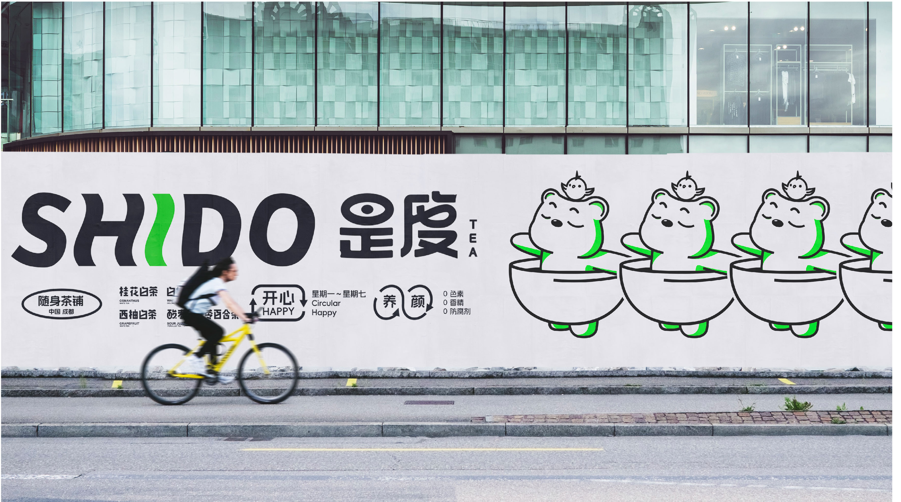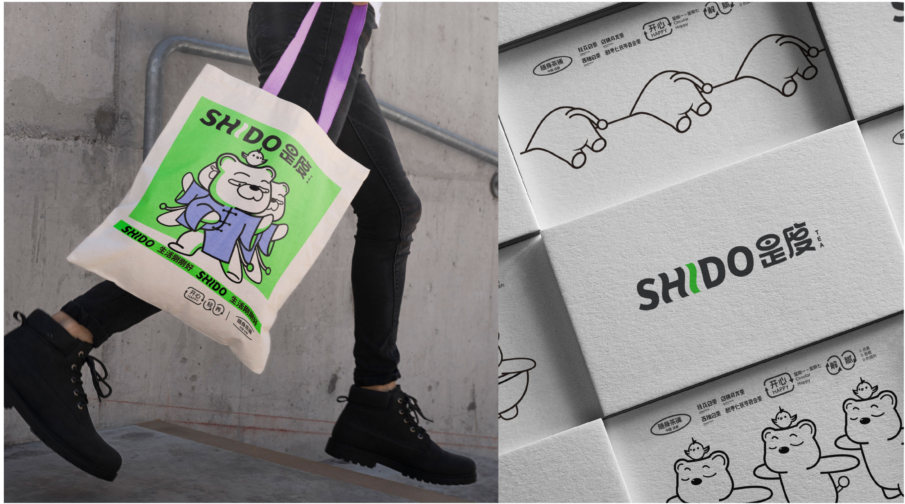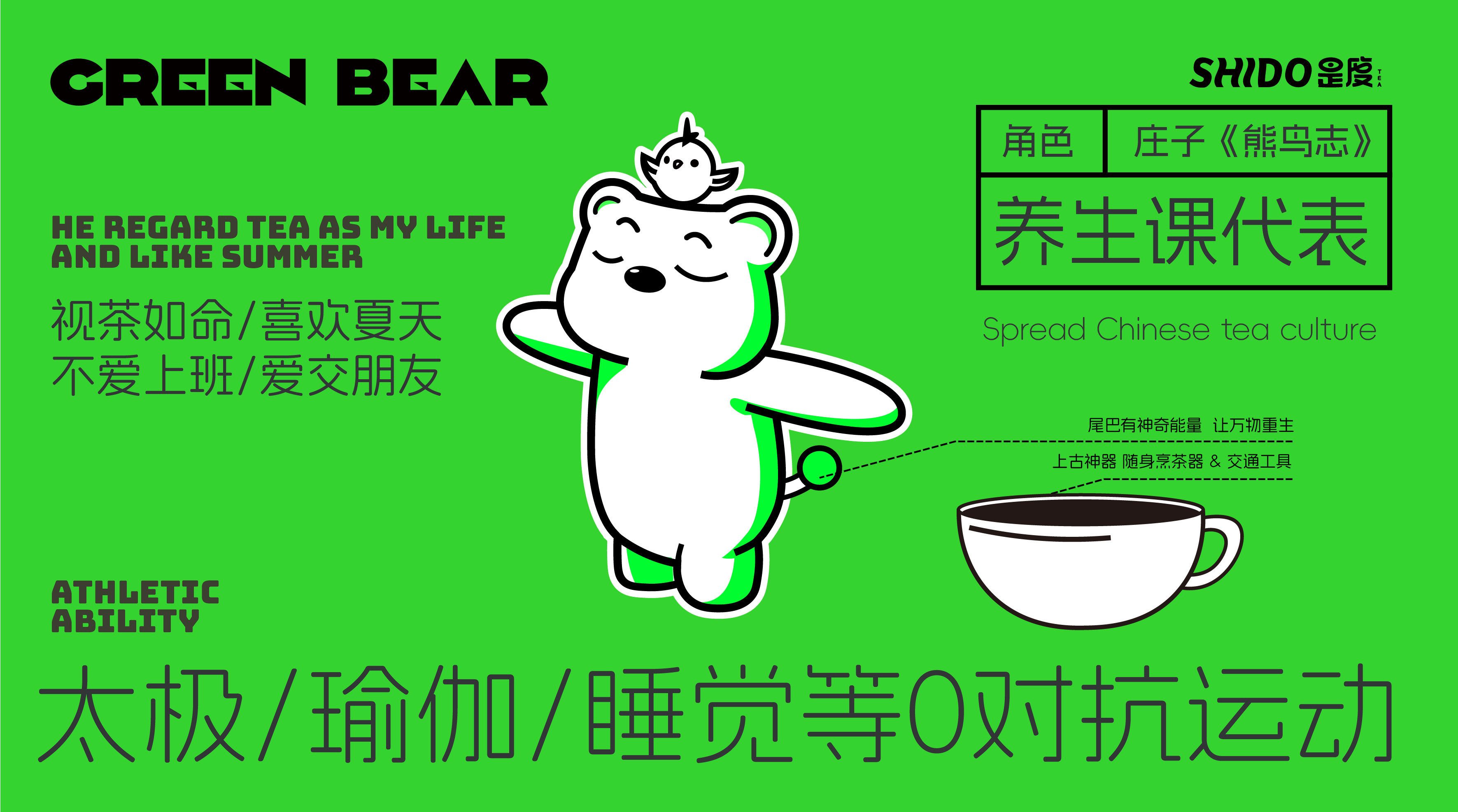 The concept of health and fitness is abstract. To make the brand image empathize with consumers, we need to accurately express it visually in the design. Among the Chinese health-preserving methods, there is the "Bear Sutra", a fitness method that incorporates the old and new and guides breathing. Just like drinking tea every day. It coincides with the pursuit of health and fitness, and the IP bear has become one of the important elements in this visual design.