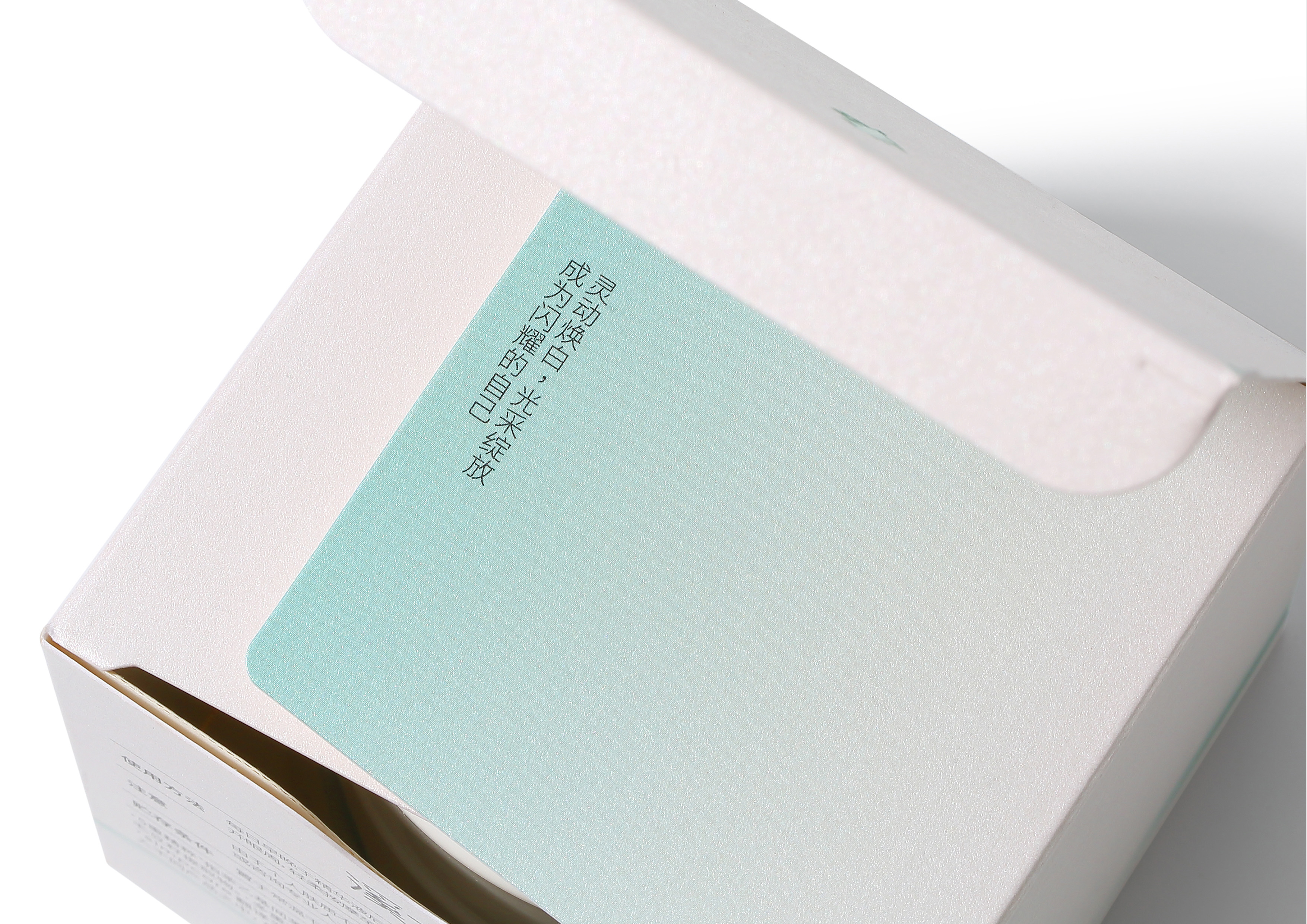 Functionally, the outer box with a top curved design makes it easy for users to open while echoing the green curves on the packaging; the dust flap is printed with supportive words to further optimize the user experience.
