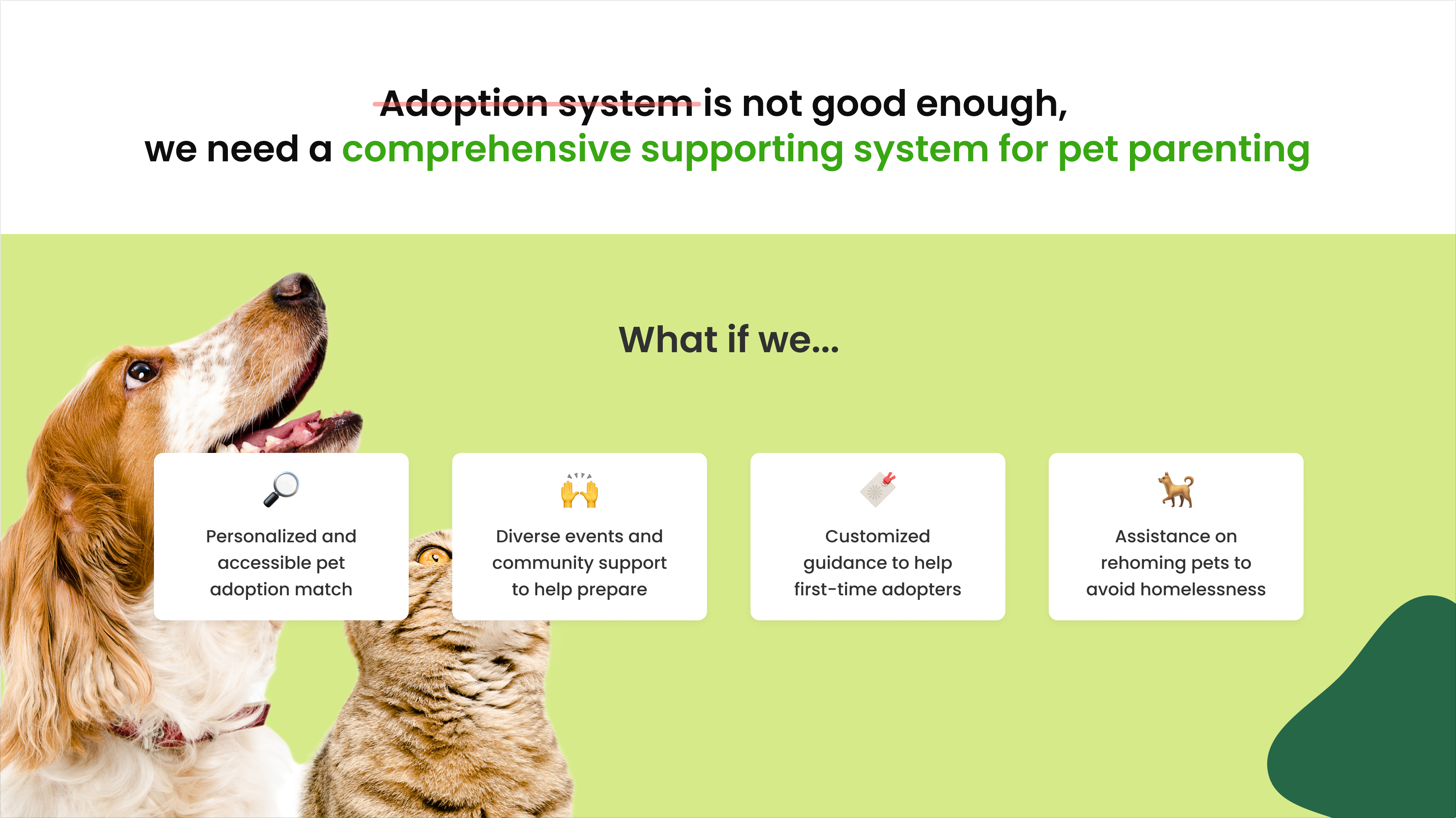 Furco tackles these issues by providing personalized adoption matches that enhance compatibility between pets and their new owners. It also offers a variety of events and community support to help new pet owners navigate the responsibilities of pet care. For those adopting for the first time, Furco delivers customized guidance, making the experience smoother and more informed. Additionally, Furco offers resources for rehoming pets when needed, helping to prevent homelessness and prevent unnecessary euthanasia.