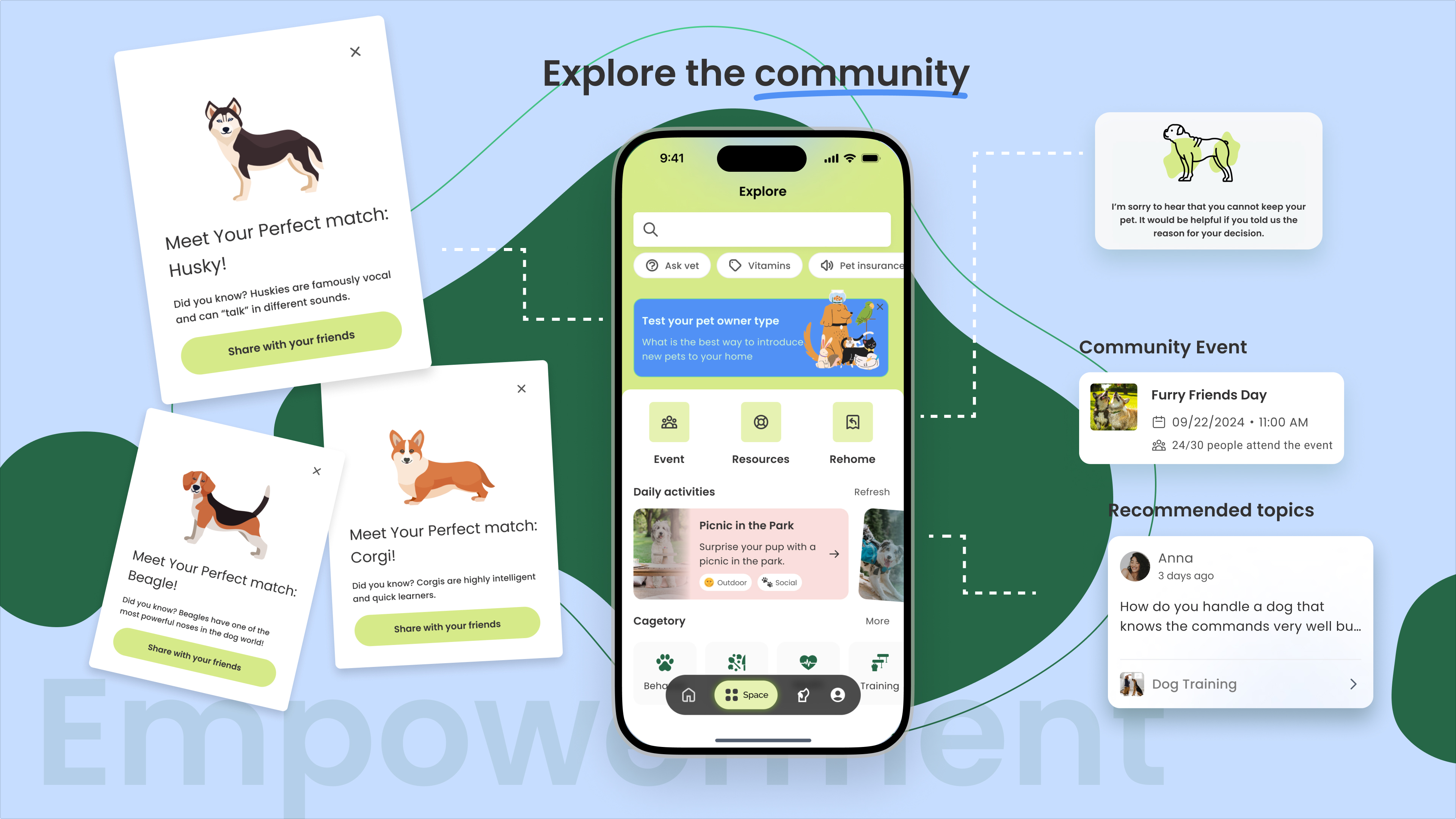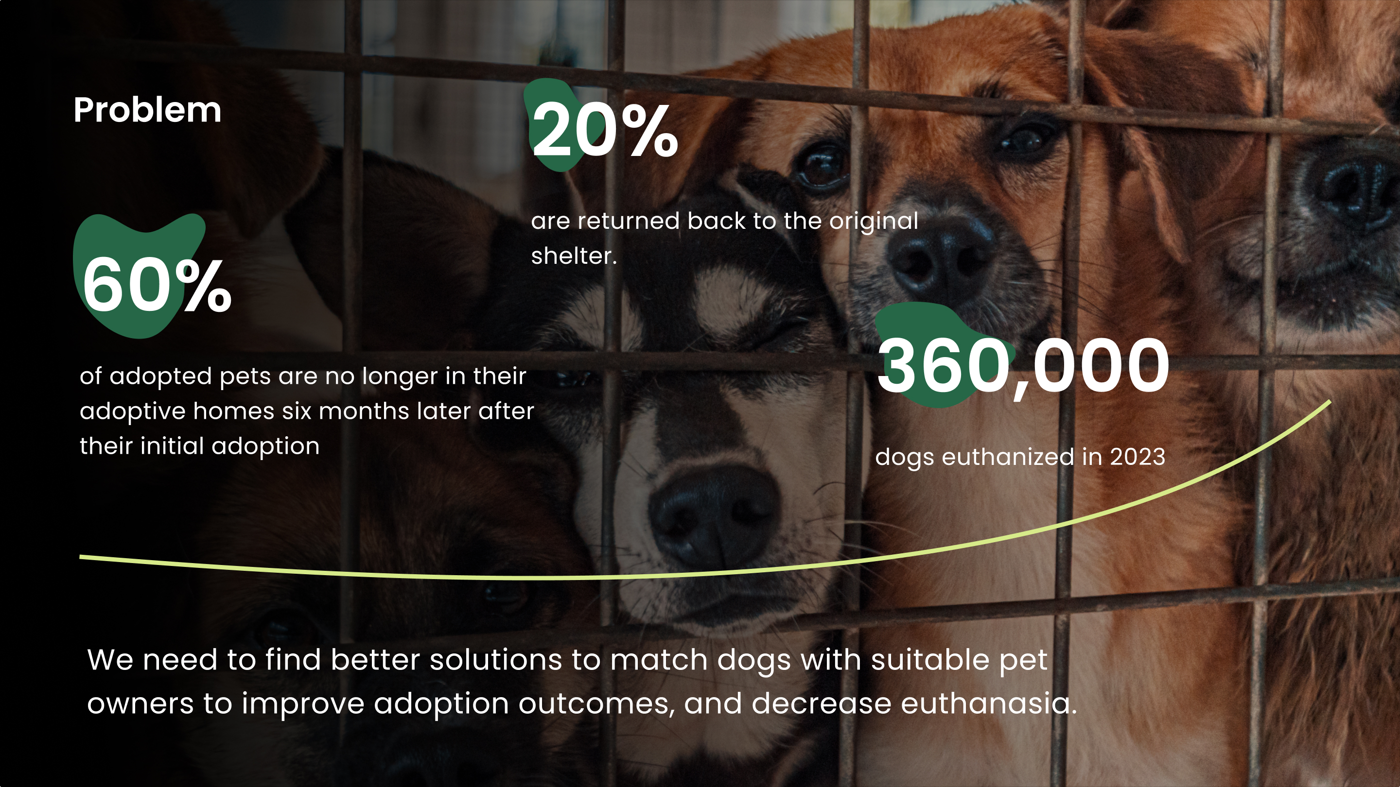 Every year, millions of dogs are surrendered to shelters for various reasons, including unexpected life events and financial restraints. In the United States alone, over 6.3 million companion animals enter animal shelters each year, with a considerable percentage requiring rehoming. The emotional toll on both the pet and the owner is significant, emphasizing the need for a compassionate rehoming solution. Modern pet care, on the other hand, has grown in complexity, with owners looking for more individualized and specialized care options. According to a 2022 survey, 65% of pet owners want more individualized guidance and services based on their pet's breed, age, and health status.