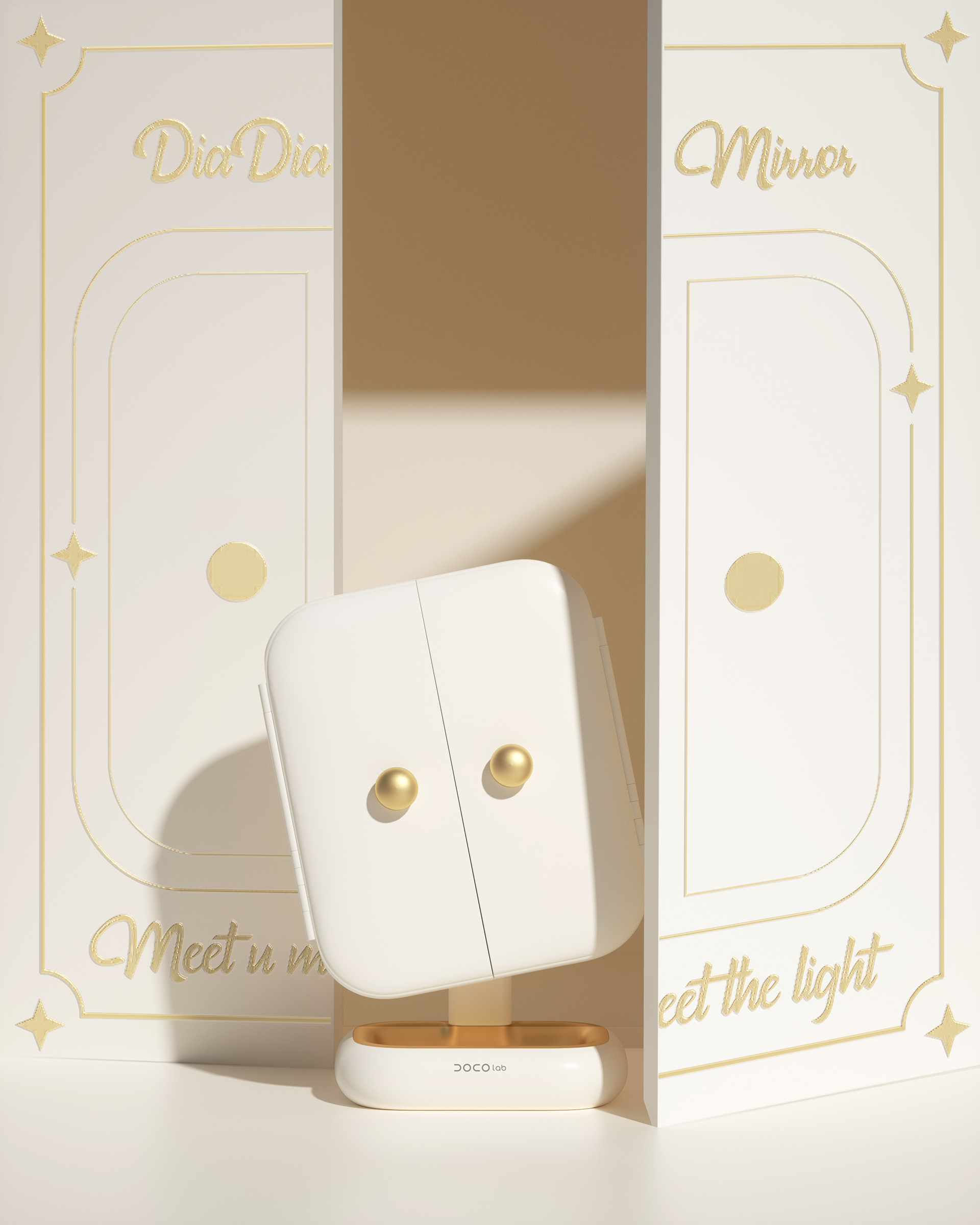 In appearance design, this mirror features a closet-style appearance and allows opening and closing, adding a sense of ritual to daily makeup and skincare. Once closed, this anthropomorphic mirror is like a compact artwork, making it an attractive and engaging home ornament when not in use.