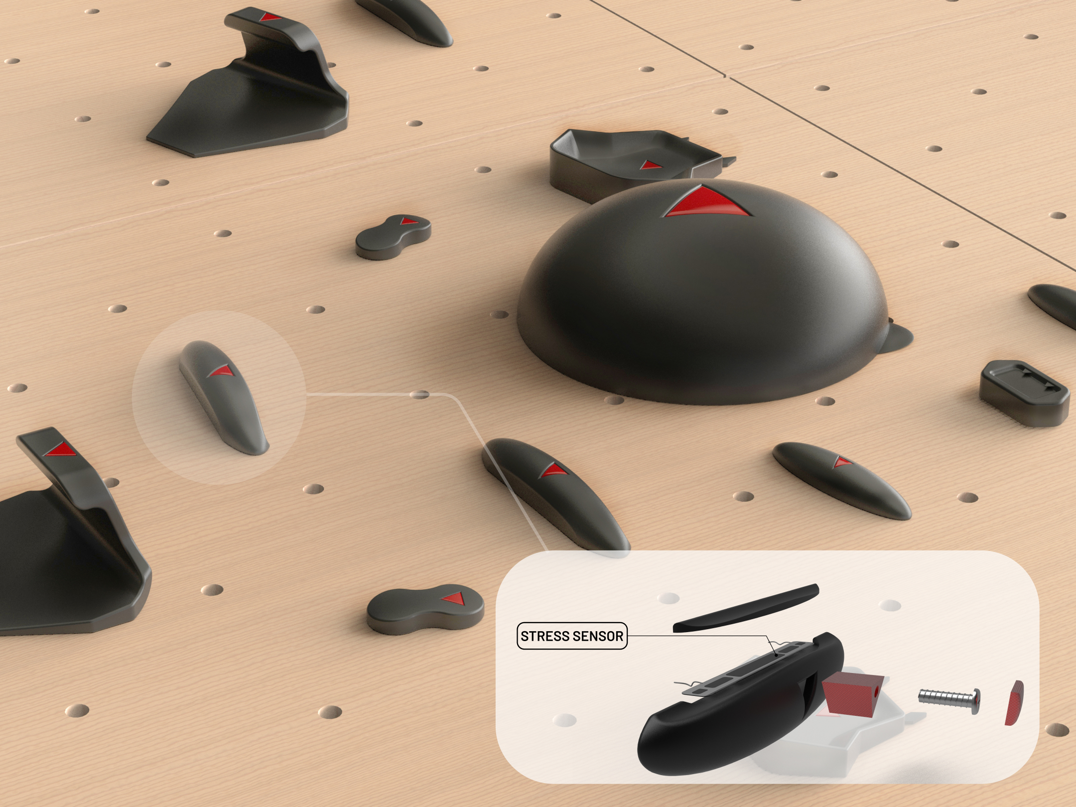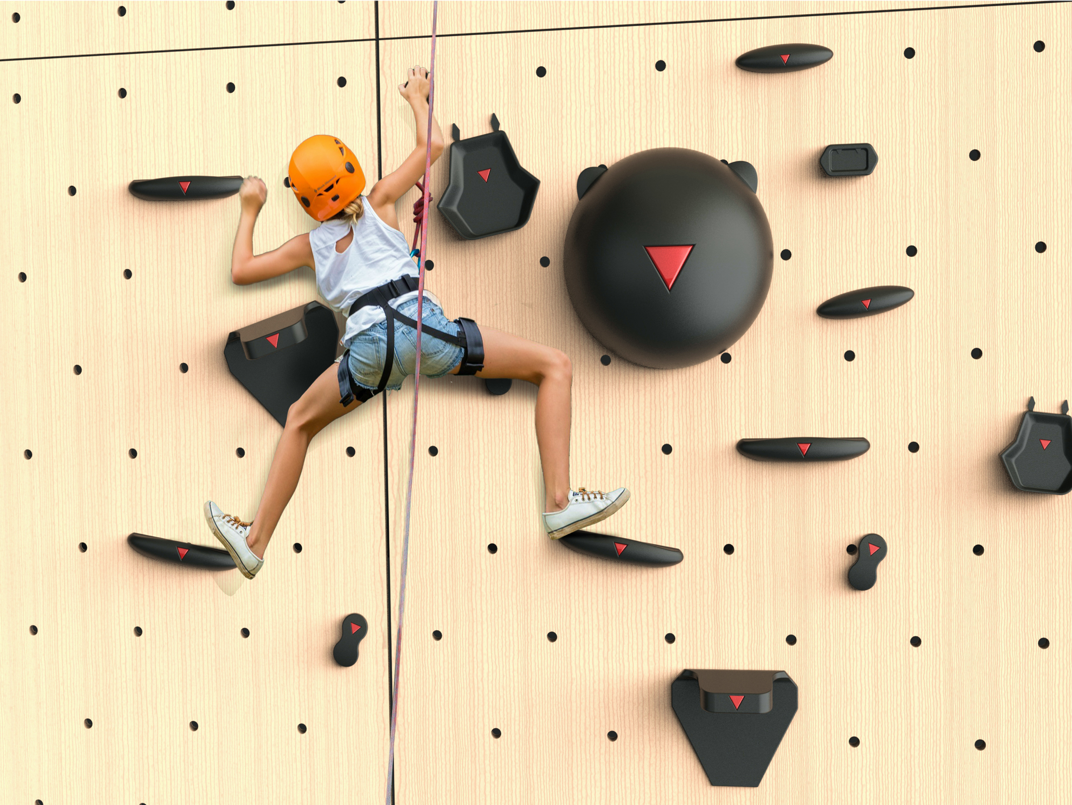 "MONSTER" consists of multiple rock points (components), the largest circular rock point- SLOPER is 22cm long, wide and 13cm thick, while the smallest rock point-PINCH is only 3cm wide, 6cm long and 3cm thick, including all the existing rock point forms on the market, so as to achieve its training purpose.