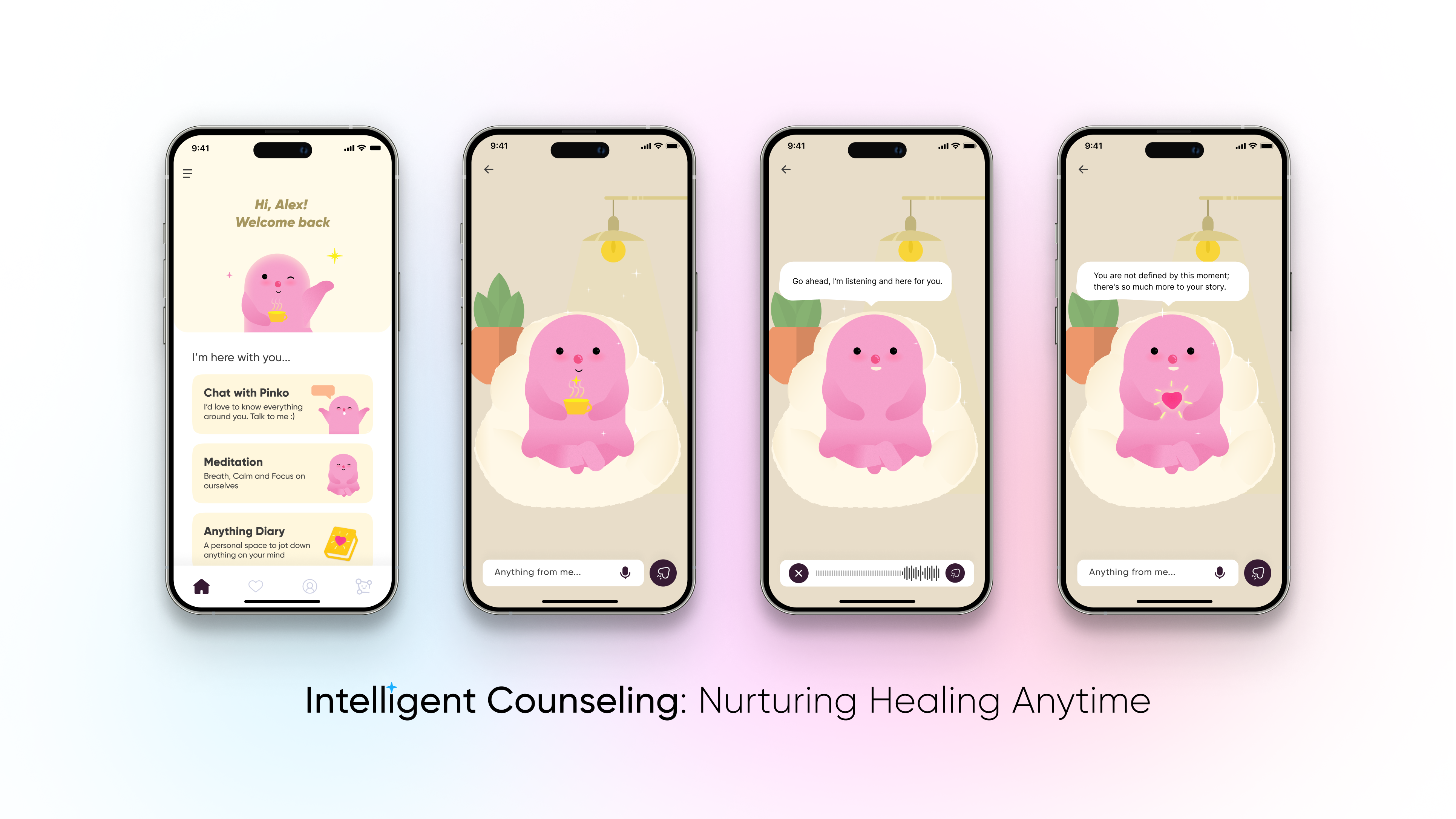 Mindmender offers round-the-clock AI counseling, mood logging, guided meditation, and crisis intervention, ensuring that users receive timely support whenever needed. Utilizing state-of-the-art AI technology, the platform dynamically adapts to real-time user feedback to optimize personalized mental health interventions. Mindmender employs emotionally intelligent design languages and advanced algorithms (“psychological models” and “feedback models”) to anticipate and adapt to user needs, significantly improving healing outcomes and user satisfaction.