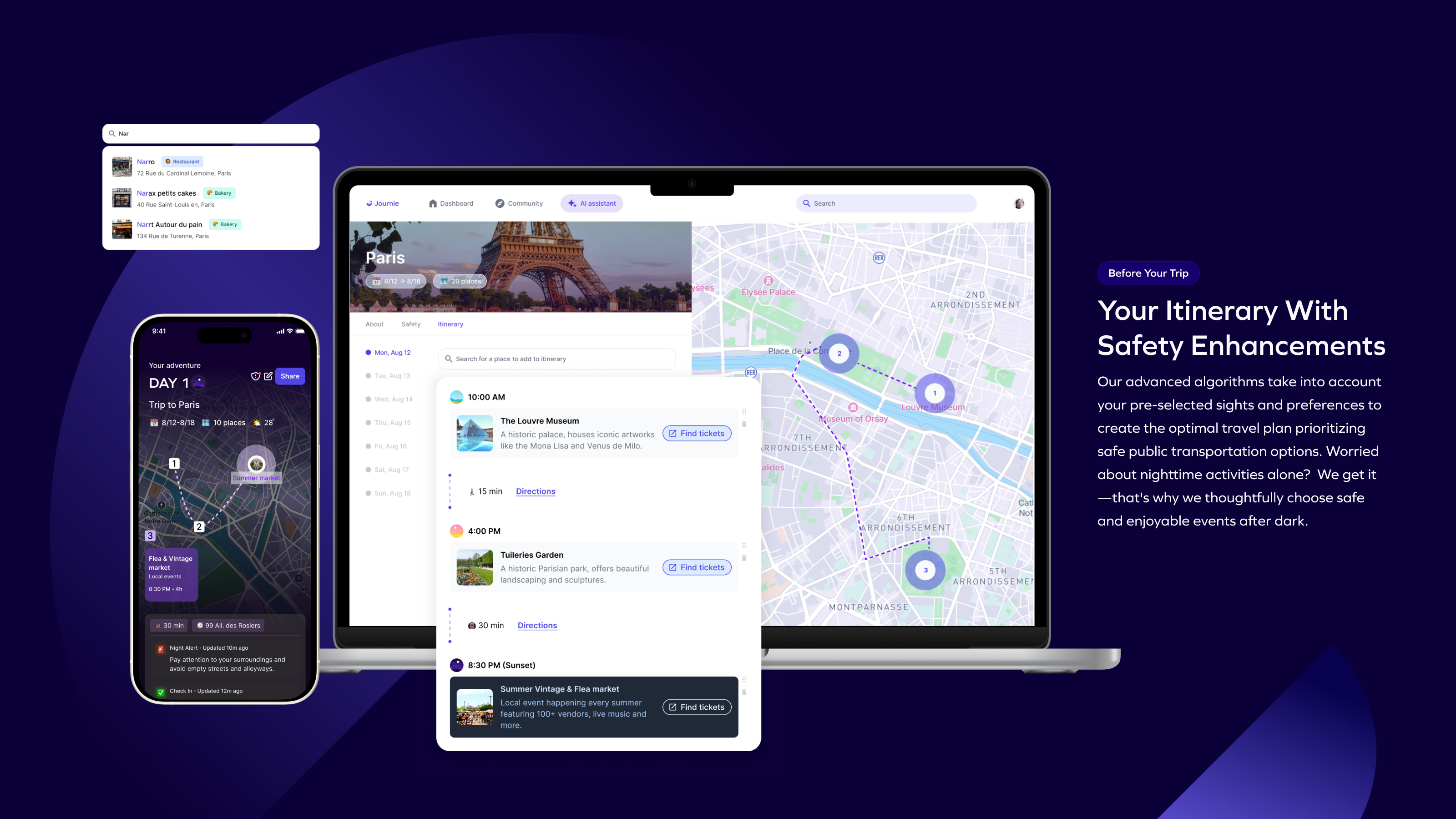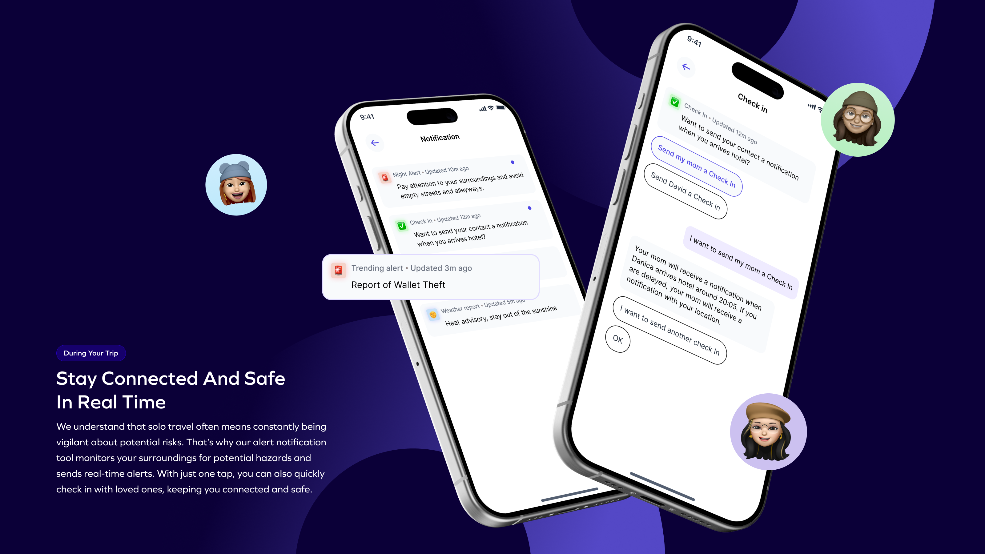 Safety is at the core of Journie's mission. The platform continuously monitors users' surroundings, providing real-time safety alerts and offering the ability to check in with trusted contacts with a single tap. This proactive approach ensures that users can focus on enjoying their journey without worrying about unforeseen risks. Journie's notification widgets also provide contextual recommendations and advice, ensuring you're always informed and prepared.