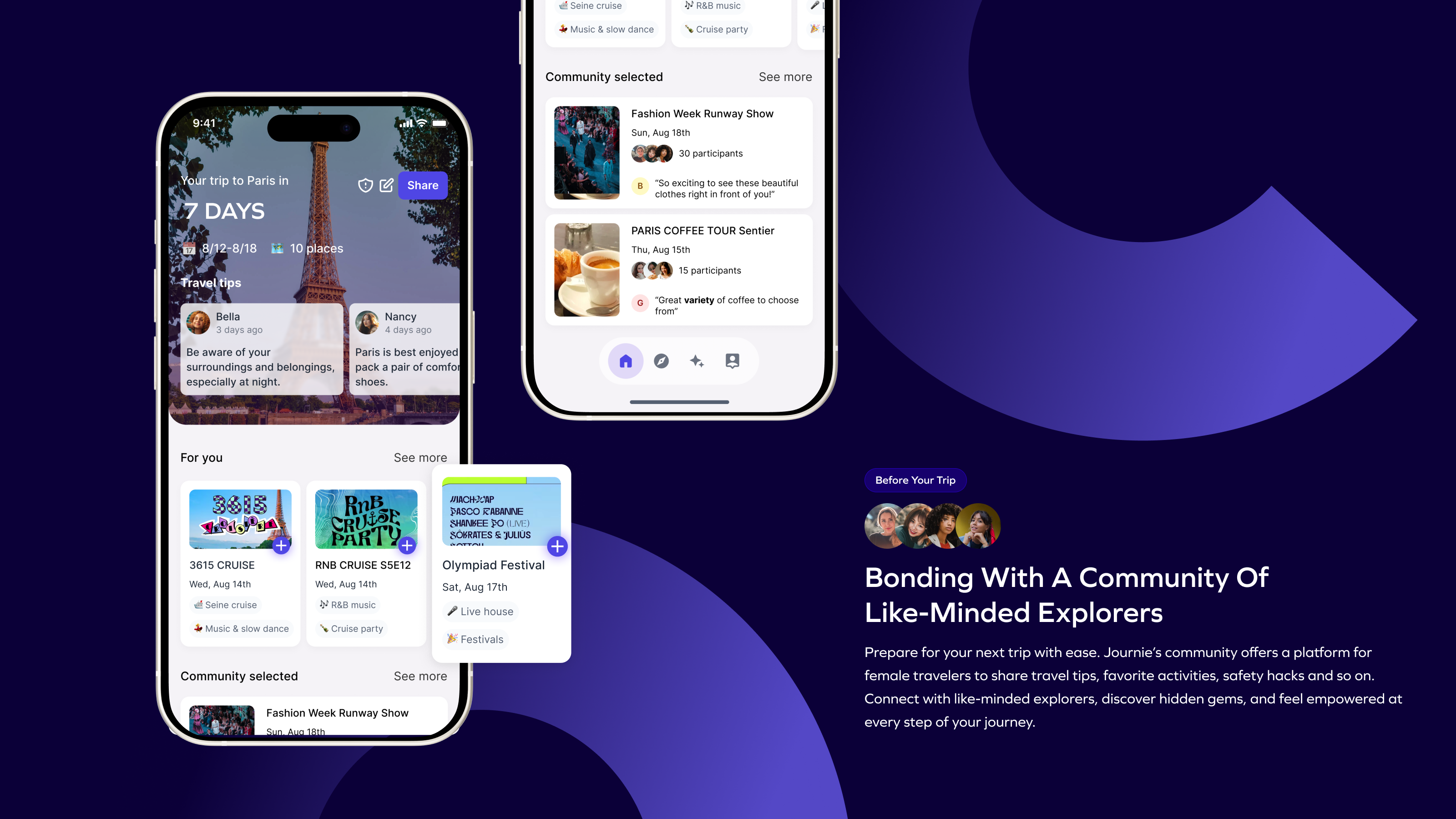 Journie is not just a travel app; it's a movement that champions female independence and the freedom to explore the world on your terms. Whether seeking adventure, cultural immersion, or a peaceful retreat, Journie is your trusted companion, ensuring every trip is as safe, enriching, and memorable as possible.