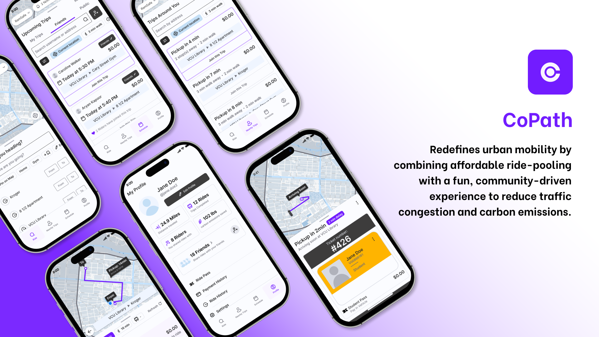 CoPath introduces an innovative solution to alleviate traffic congestion and reduce carbon emissions in densely populated urban areas through social ride-pooling. As a pioneering ride-hailing app, CoPath aims to revolutionize Demand-Responsive Transport (DRT), a transit concept characterized by ride-pooled buses operating similarly to taxis but with fares comparable to typical public transit.