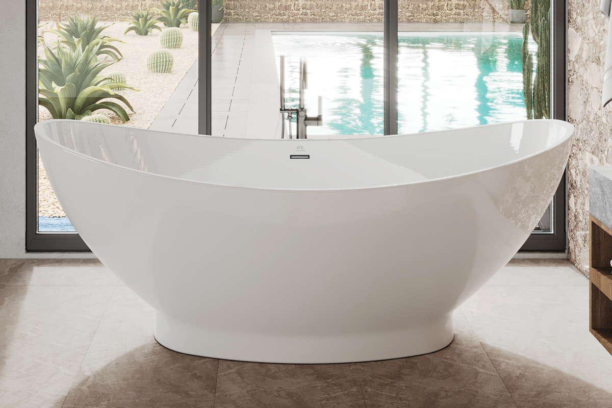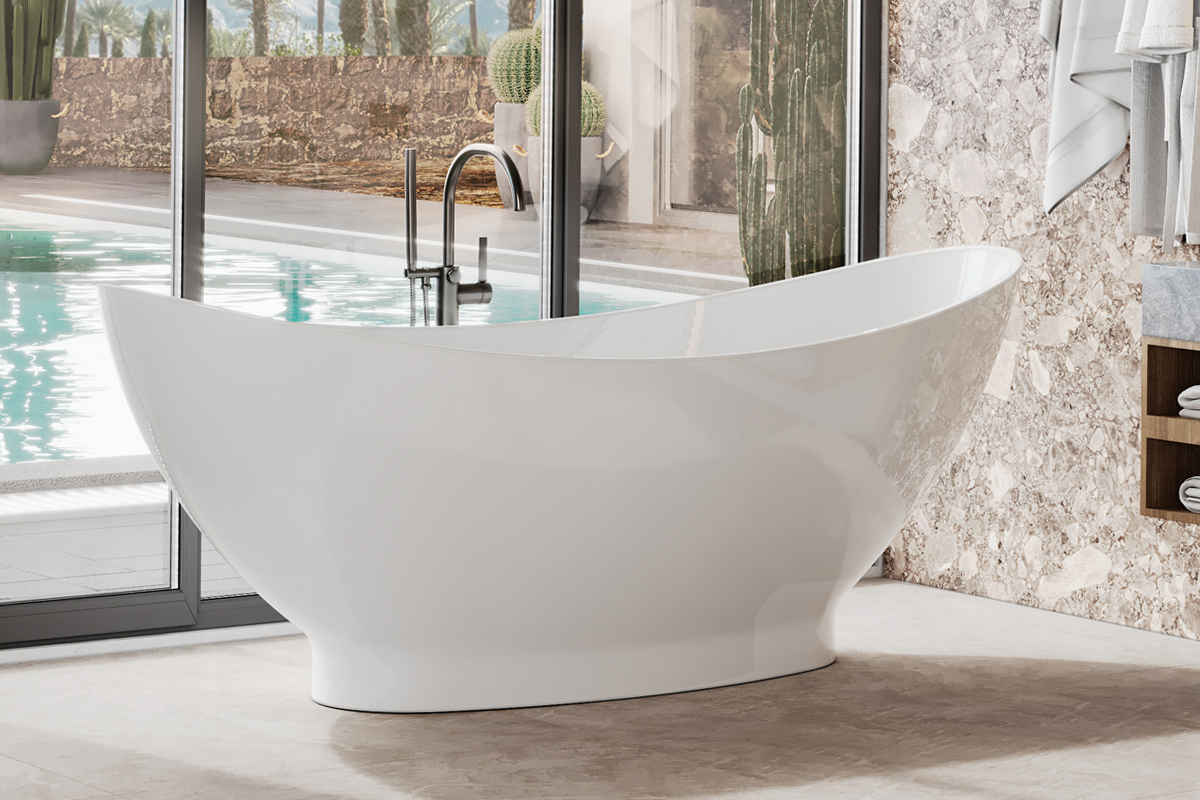 The new, freestanding Coachella tub from U.S. luxury bath manufacturer Hydro Systems redefines bathing as an ethereal experience. Inspired by California’s prolific mid-century modern design and taking cues from the residential rooflines by renowned architects that defined Palm Springs and Coachella Valley, the tub’s fluid form unfolds like butterfly wings on both sides and is characterized by its v-shaped silhouette. Measuring 68” in length, Coachella is outfitted with a 26-degree back slope and an integrated lumbar support that contour the body for optimal comfort. An integral pedestal provides support, all while allowing for seamless installation and minimalist appearance. Paying homage to the creativity reflected in the modernist ethos of the 1950s and 60s, Coachella is made from Hydro Luxe SS™, a premium solid surface material and is fully customizable in color and finish.