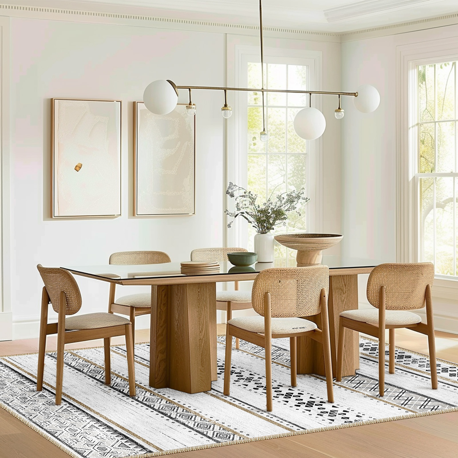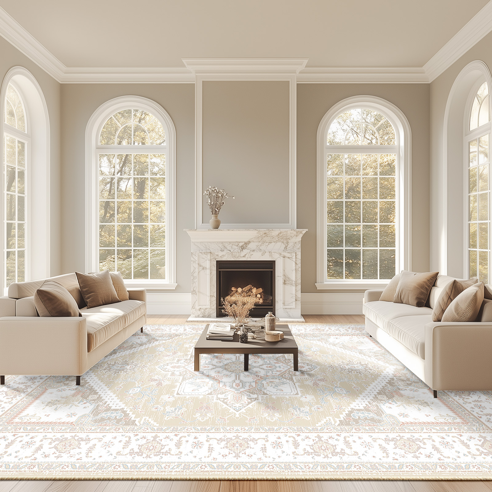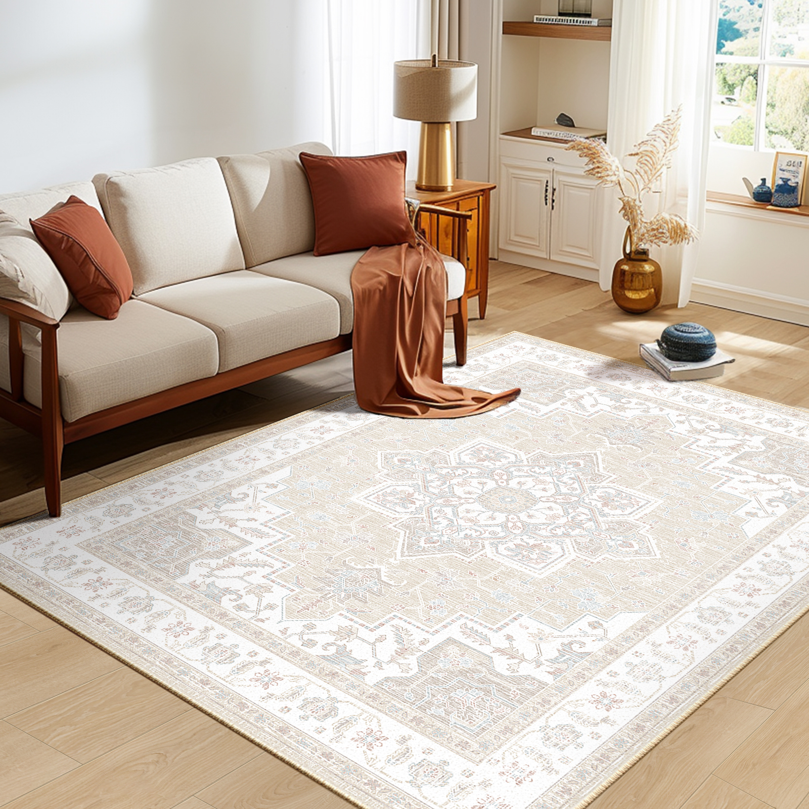 BESTSWEETIE encompasses four styles of carpets: the Cascading Flower Window Carpet, the Moroccan Geometric Pattern Carpet, the Cream Vintage-Style Carpet, and the "Diamond Tribe" Short-Pile Carpet. Each of these carpets, with their unique design concepts and high-quality craftsmanship, shines as a highlight in modern home décor. The Cascading Flower Window Carpet, featuring a vintage style and a cream-colored palette, cleverly blends the layered beauty of classical window grilles with modern aesthetics, showcasing the tranquility of time and the quality of life. The Moroccan Geometric Pattern Carpet, incorporating the rich culture and traditional handicrafts of Morocco, effectively addresses the cleaning and wear resistance issues of traditional carpets through its anti-slip, waterproof, and low-pile design, providing users with a safe and convenient usage experience. The Cream Vintage-Style Carpet skillfully integrates traditional elements with unique native plant patterns, exhibiting the harmony between elegance and nature, while also being easy to clean and maintain. Inspired by the rich culture and natural landscapes of the southwestern region, the "Diamond Tribe" Short-Pile Carpet brings a unique charm into daily life, allowing people to feel the allure of regional customs even in their homes. These carpets not only enhance the comfort and aesthetics of the living environment but also, through their unique design styles, become indispensable works of art in the home setting.