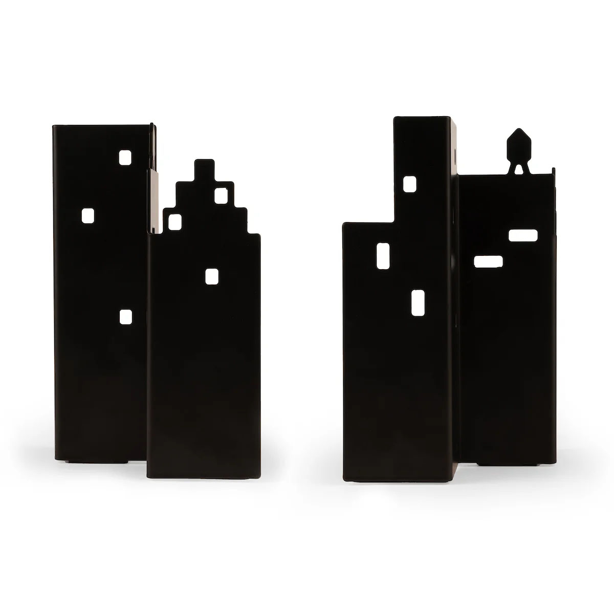 Creating a decorative set of bookends, we sought to capitalize on the rebounding market of book ownership to showcase and display books in the home or office. Utilizing the spines of the books themselves and their various sizes and shapes, we leveraged the abstract representation of buildings to invoke a dynamic cityscape on a bookshelf. When turned either direction the bookends themselves define a multiplanar visualization of a typical New York block.
