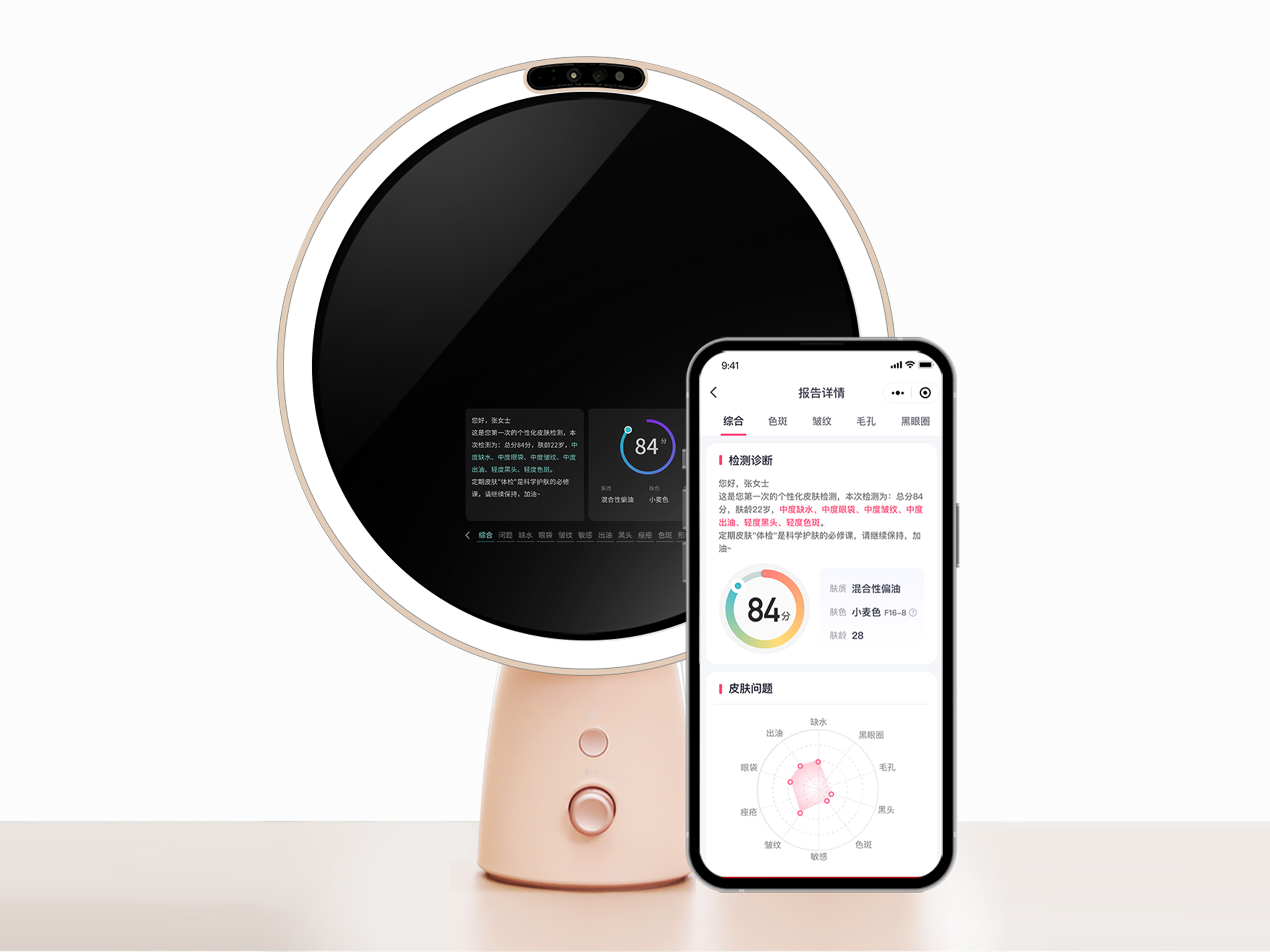 Another major feature is the intelligent analysis function. It can record daily facial images, generate detailed skin condition reports with specially developed skin measurement algorithms, and allow users to view them through a mobile app at any time. In addition, the system also offers targeted skincare solutions based on the information provided in the reports to help users improve their skin condition.