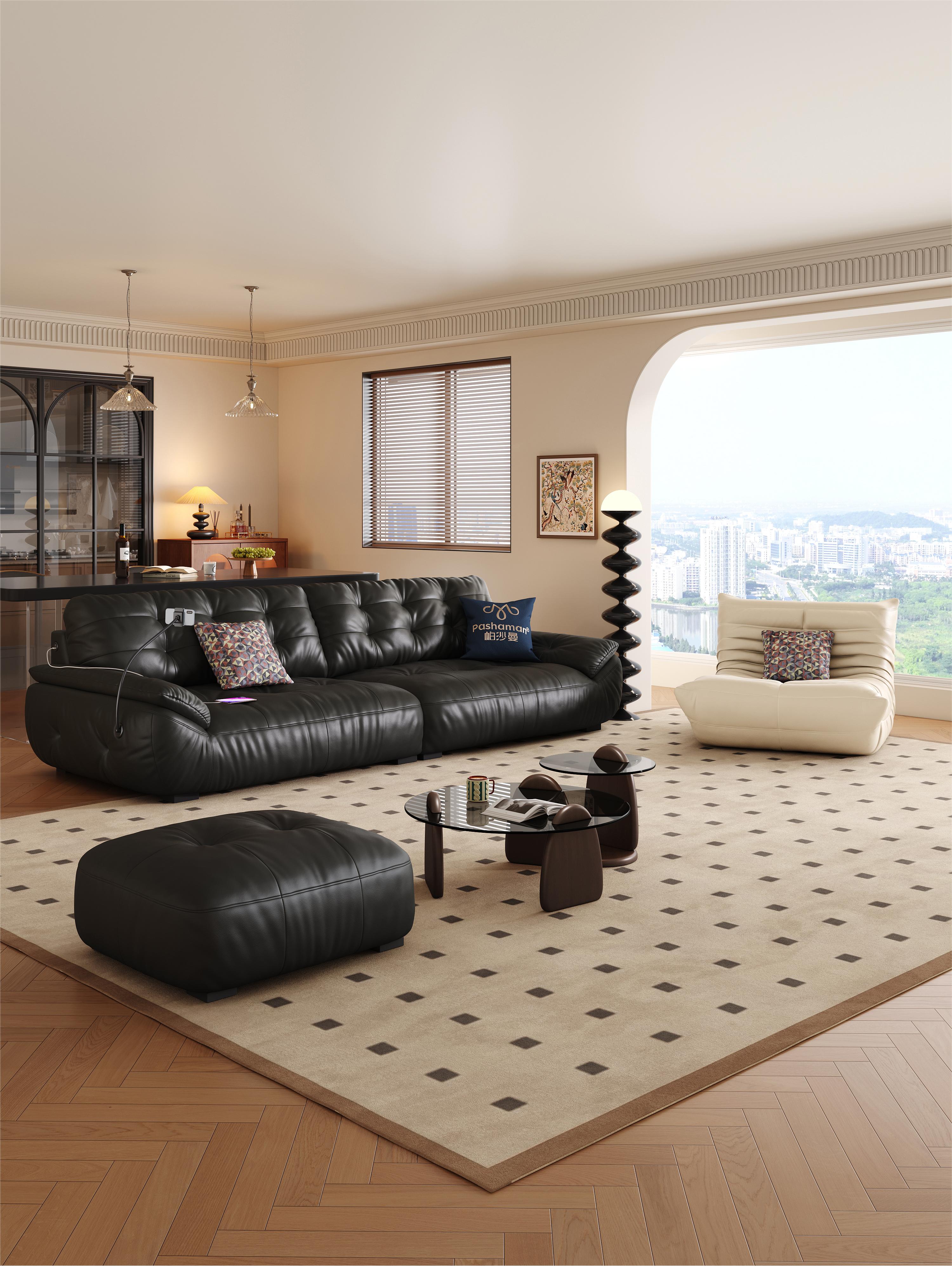 The back cushion is filled with hexagonal memory foam particles and velvet cotton, which not only provides a soft wrapping feeling, but also gives good support to the neck and back. The sofa has a large sitting depth of 62 cm and armrests of 35 cm wide for users to stretch out and relax, enjoying a leisurely time.