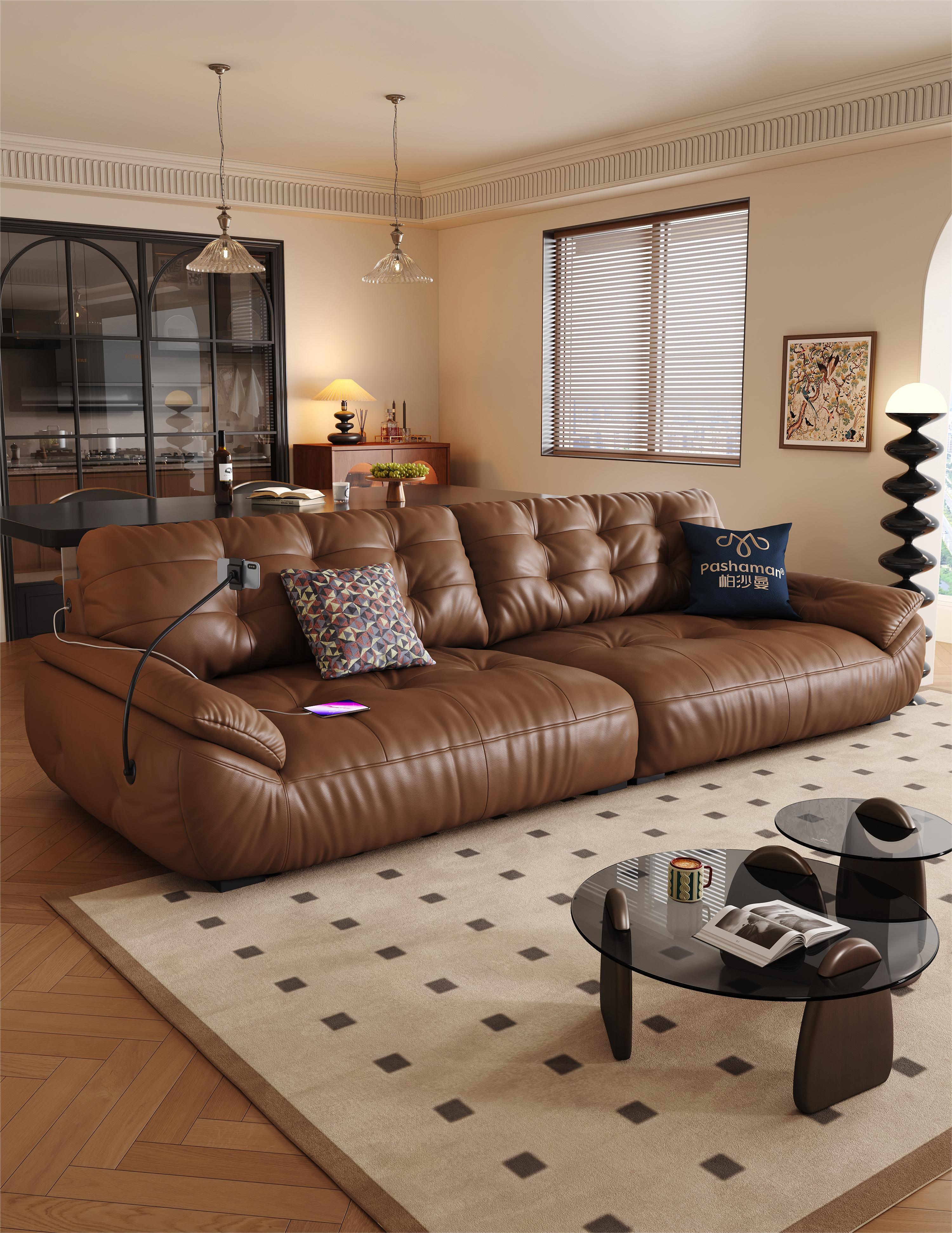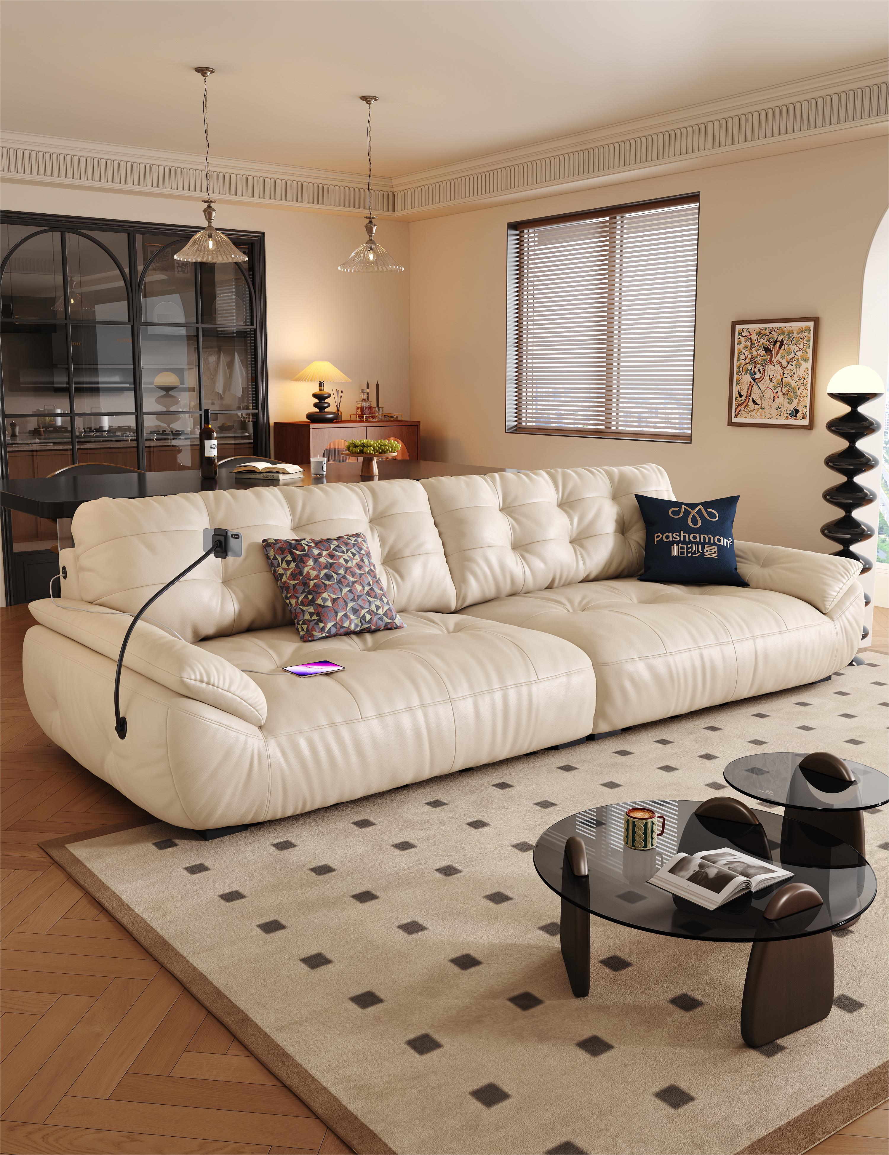 This sofa adopts a four-layer pressure distribution support system, combined with functions such as mobile phone holder and USB charging, bringing users a comfortable and convenient rest experience.