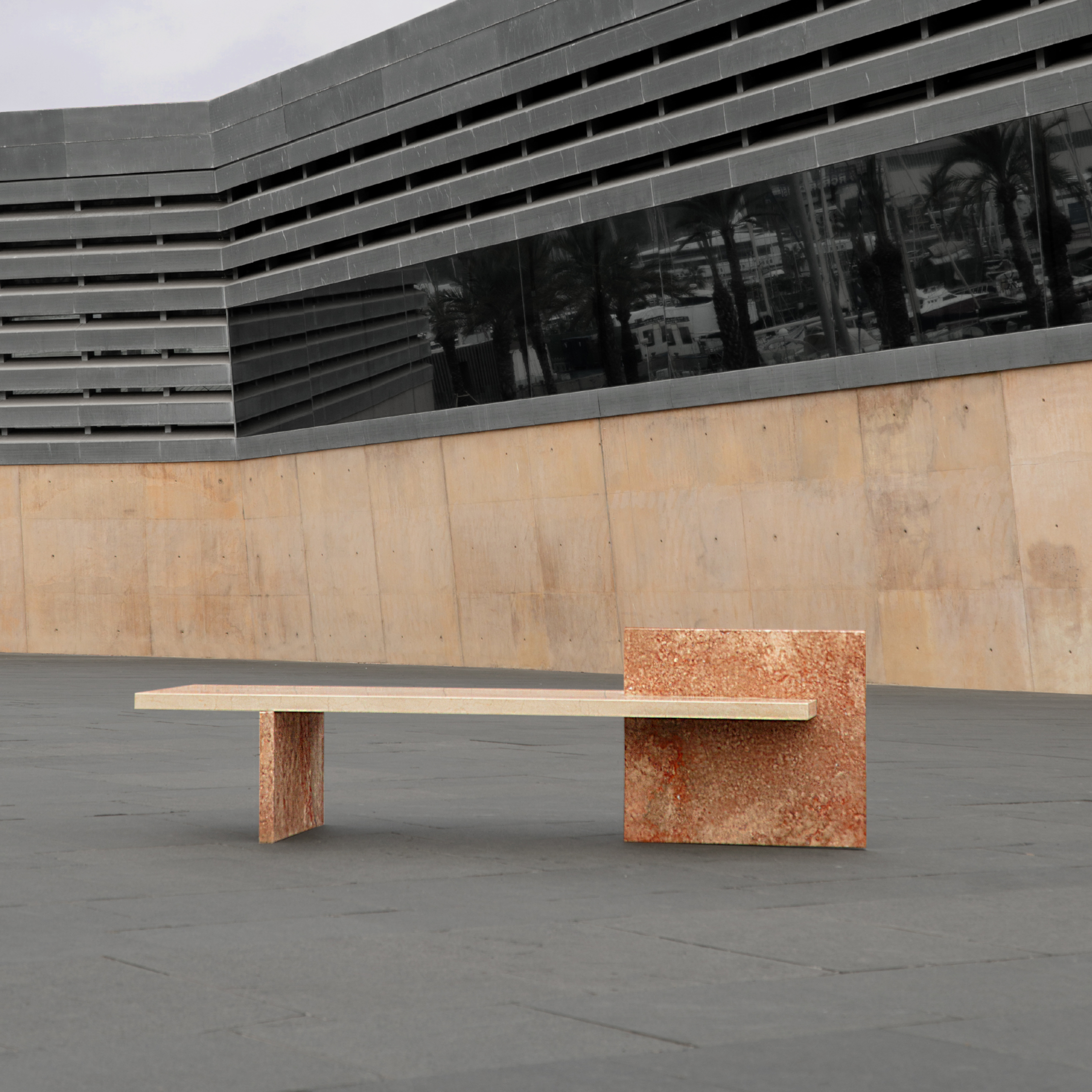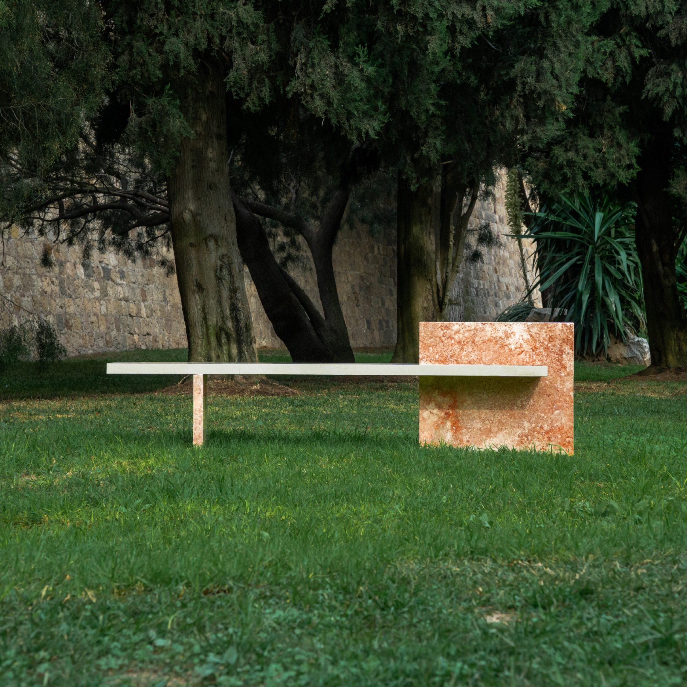 The compositional flexibility of the MYWAY Bench makes it possible to create multiple compositions depending on the materials used: natural stone or CO2-absorbing recycled concrete.