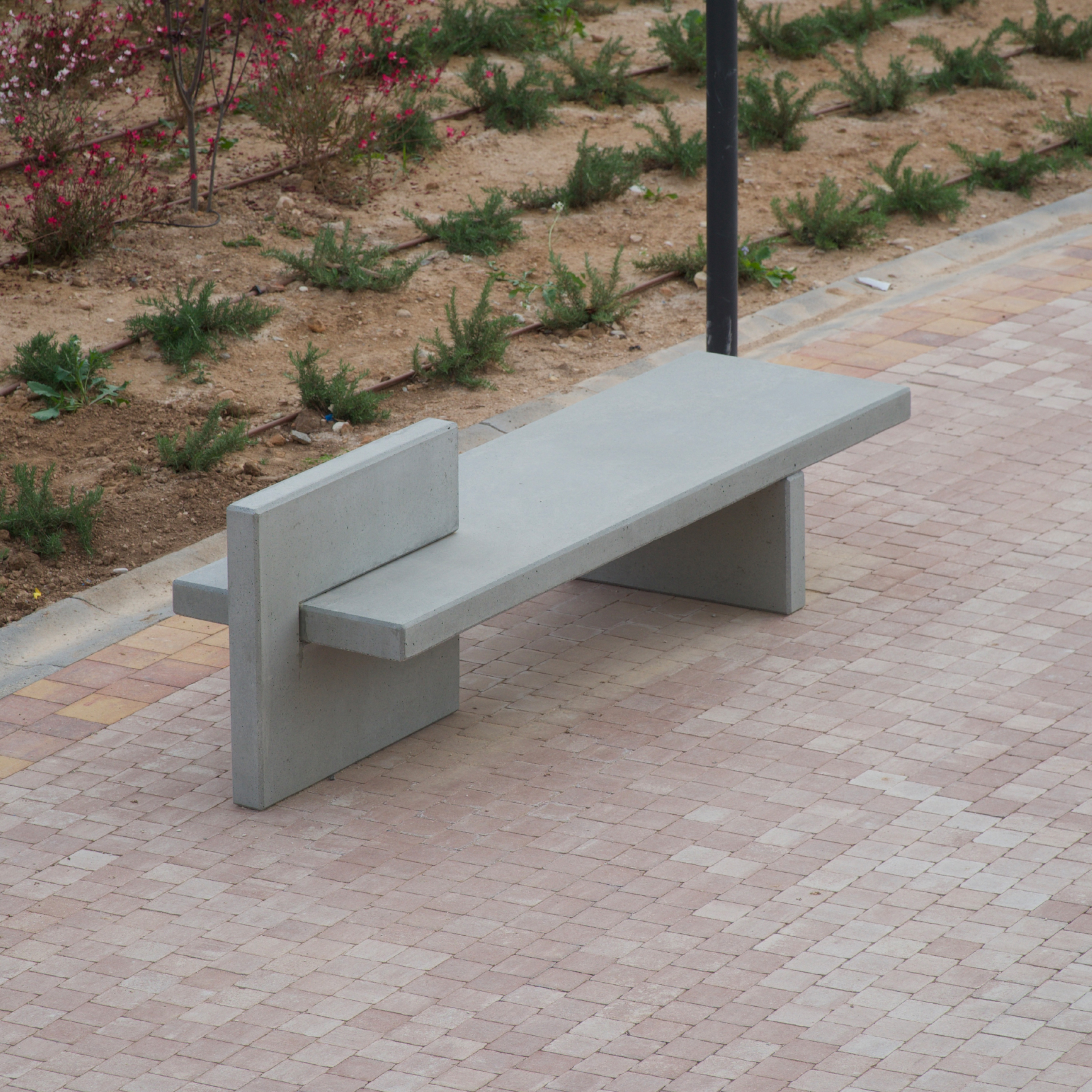 An elegant and minimalist bench with orthogonal planes that not only fulfils the function of a seat, but also provides aesthetic value when placed in the urban space.