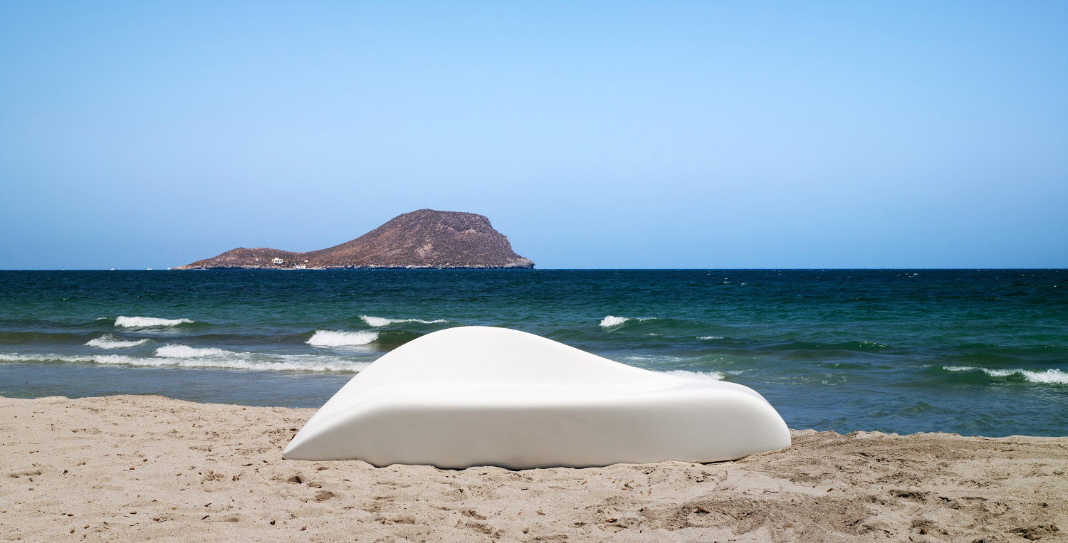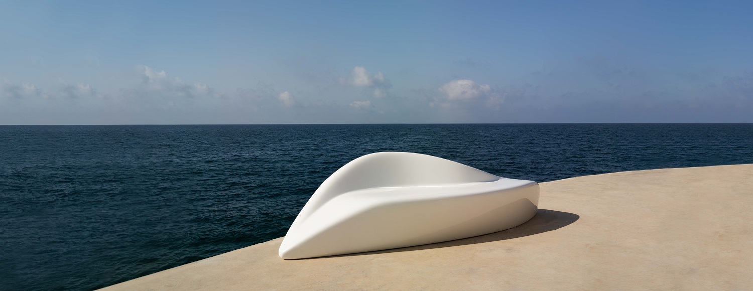 The purity of the lines and the roundness between planes of the MANGA Bench, reinforces the brightness and textures typical of fiberglass and concrete.