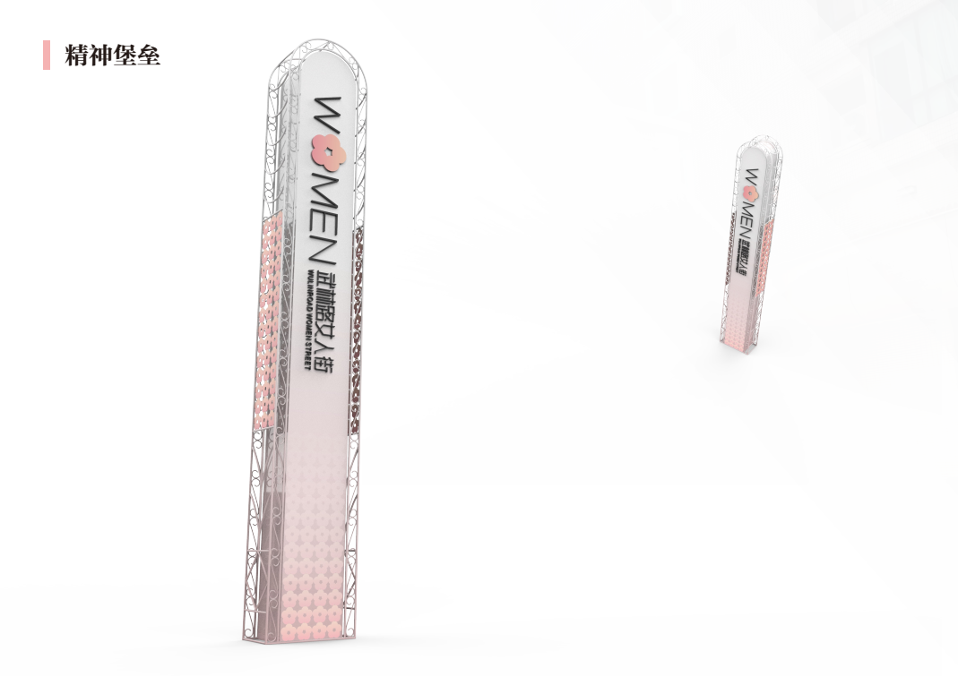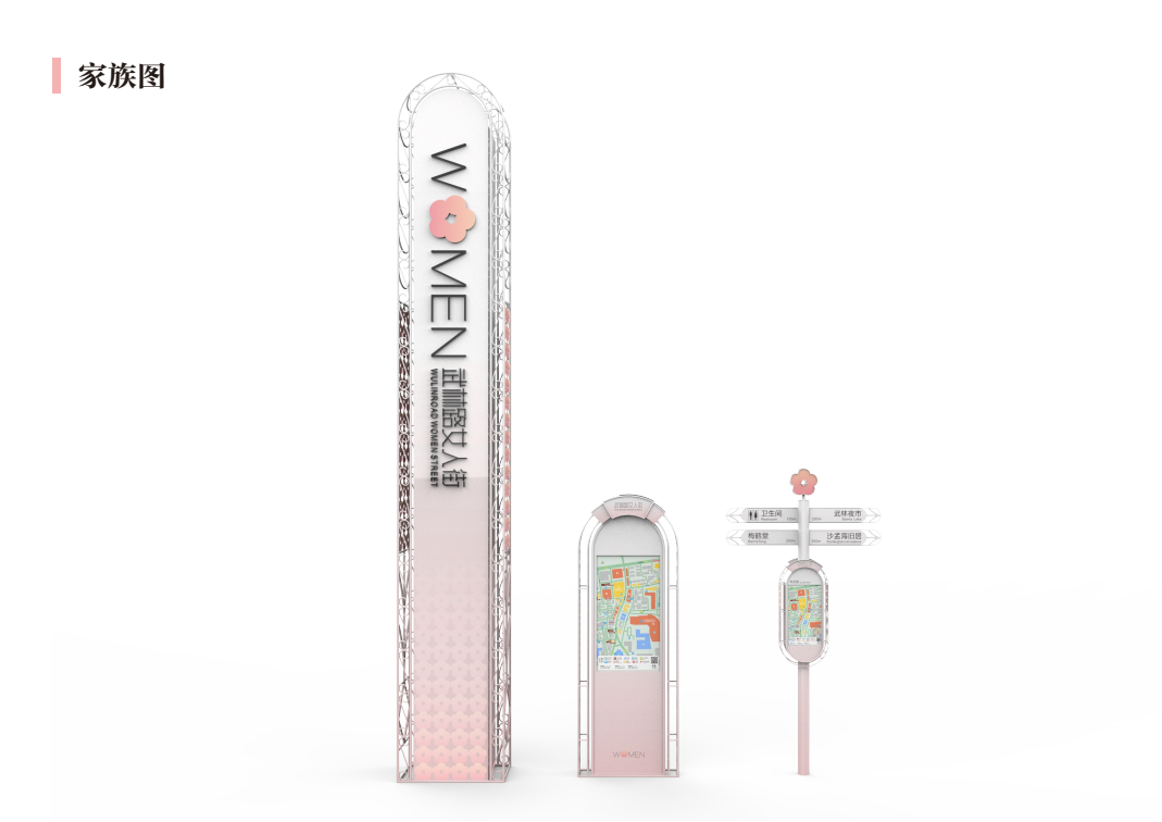The logo of this case continues the elements of many neighborhood renewals in the past history, echoing the facilities and installations in the block environment with European pattern lines, and at the same time boldly using colors to echo the unique personality of women with soft floral colors; At the same time, the brand logo of Ladies Market was turned into an element to strengthen the brand visual display of the block; Create a guide system that belongs to the women's street on Wulin Road with personality, visual characteristics and memory points;