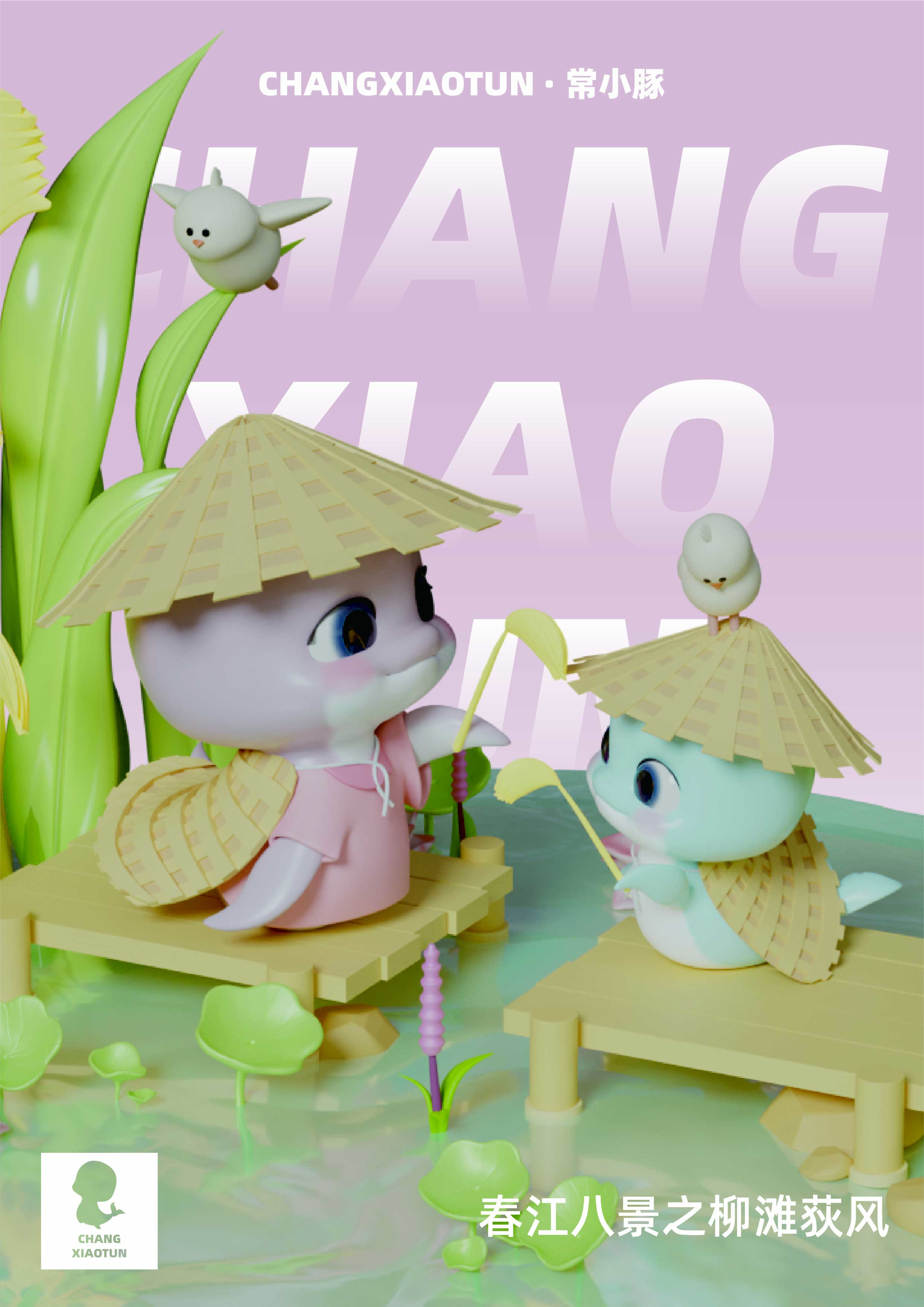 From the perspective of the finless porpoise as a species, we witness, participate in, and protect their version of the "Spring River Moonlit Night" through the long course of history. By refining the characteristics of the finless porpoise community, we develop a personified main IP image that deeply integrates with the theme of "Once Again, the Spring River Moonlit Night." The phrase "once again" symbolizes a look back at history from the present, a dialogue between now and the future.