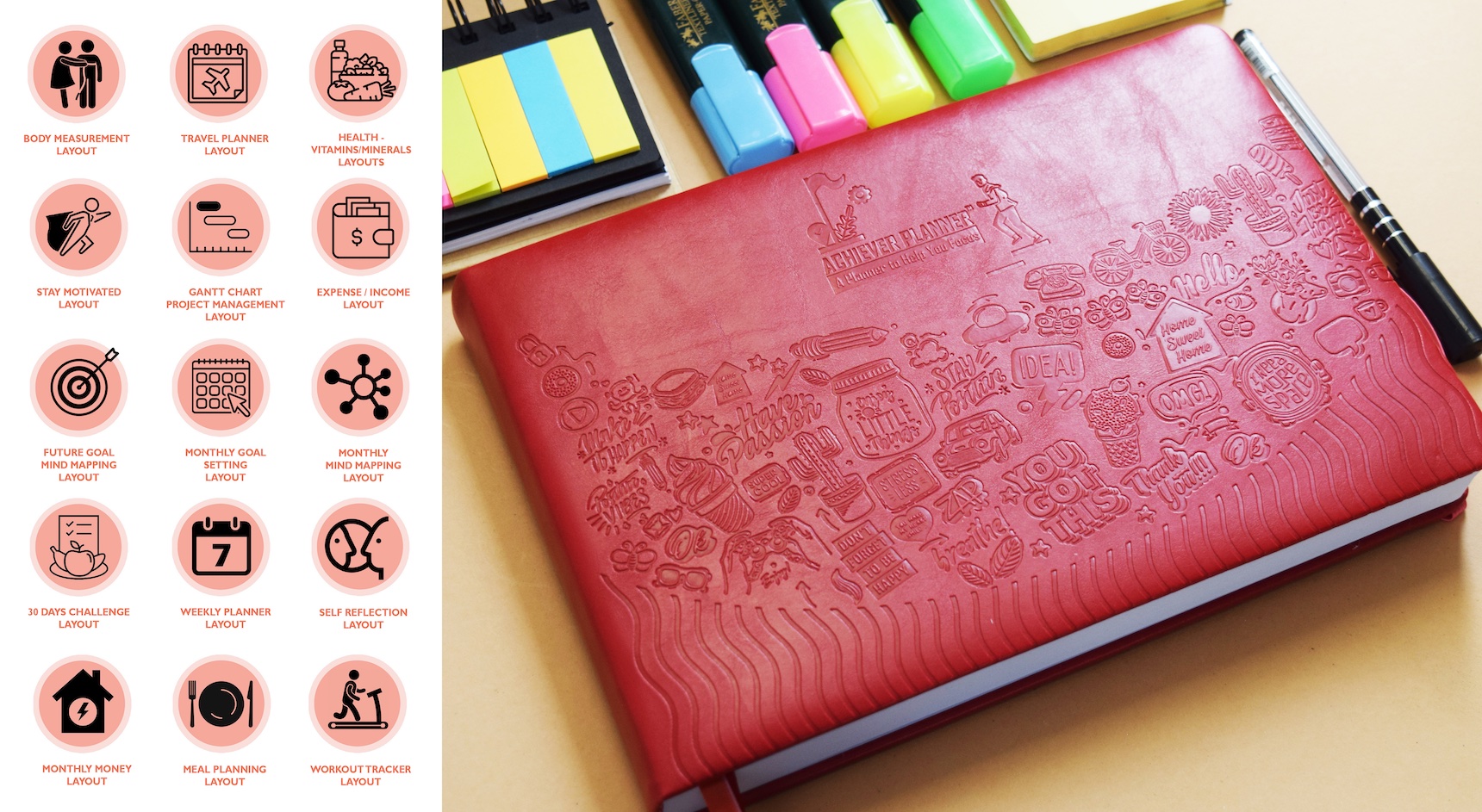 Achiever Planner includes 15 Creative Layouts which are listed below.