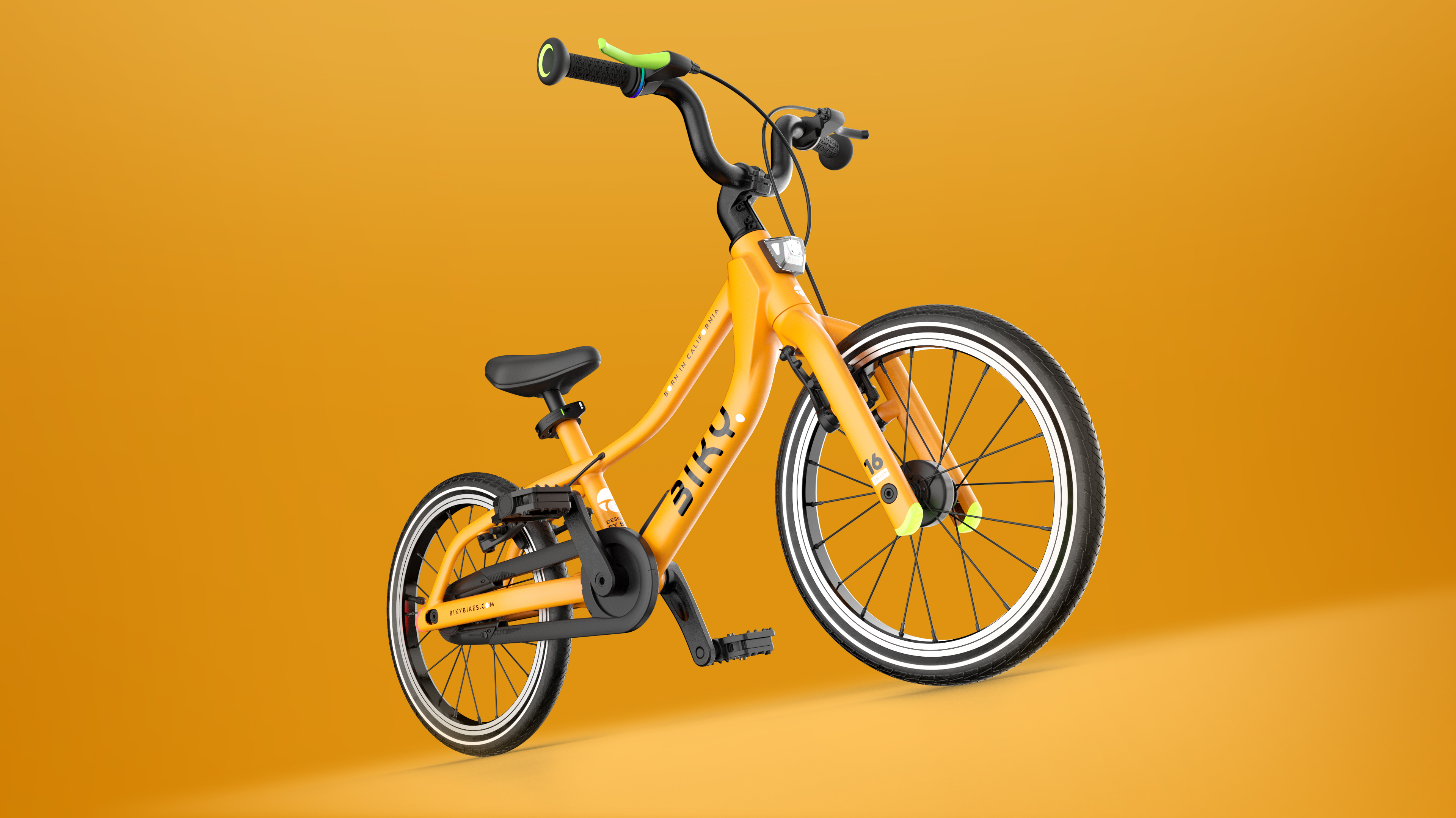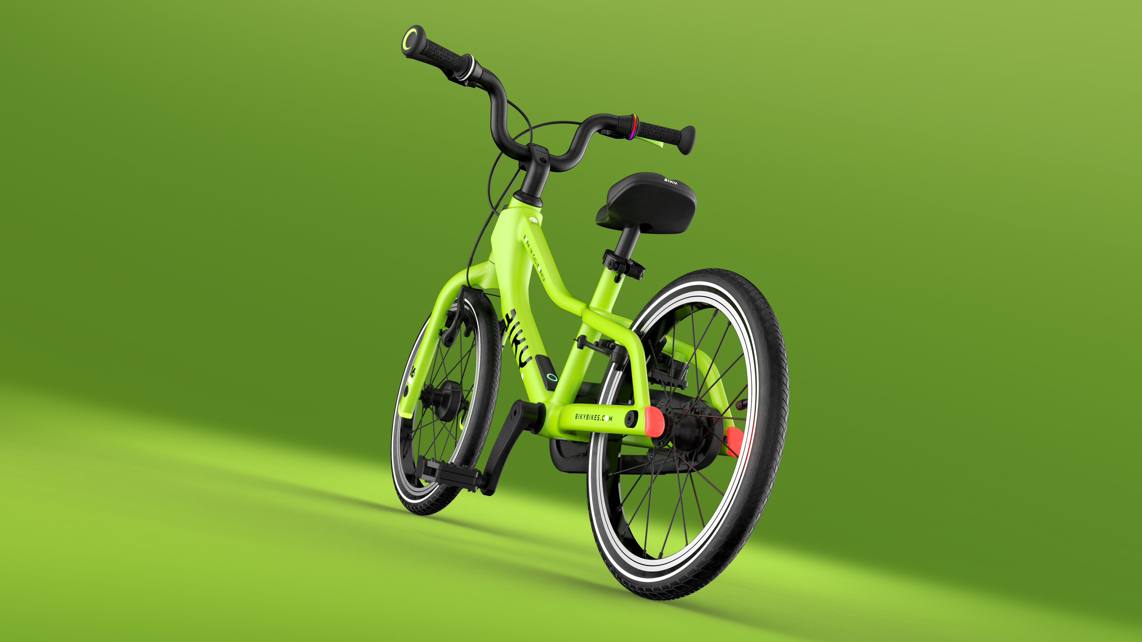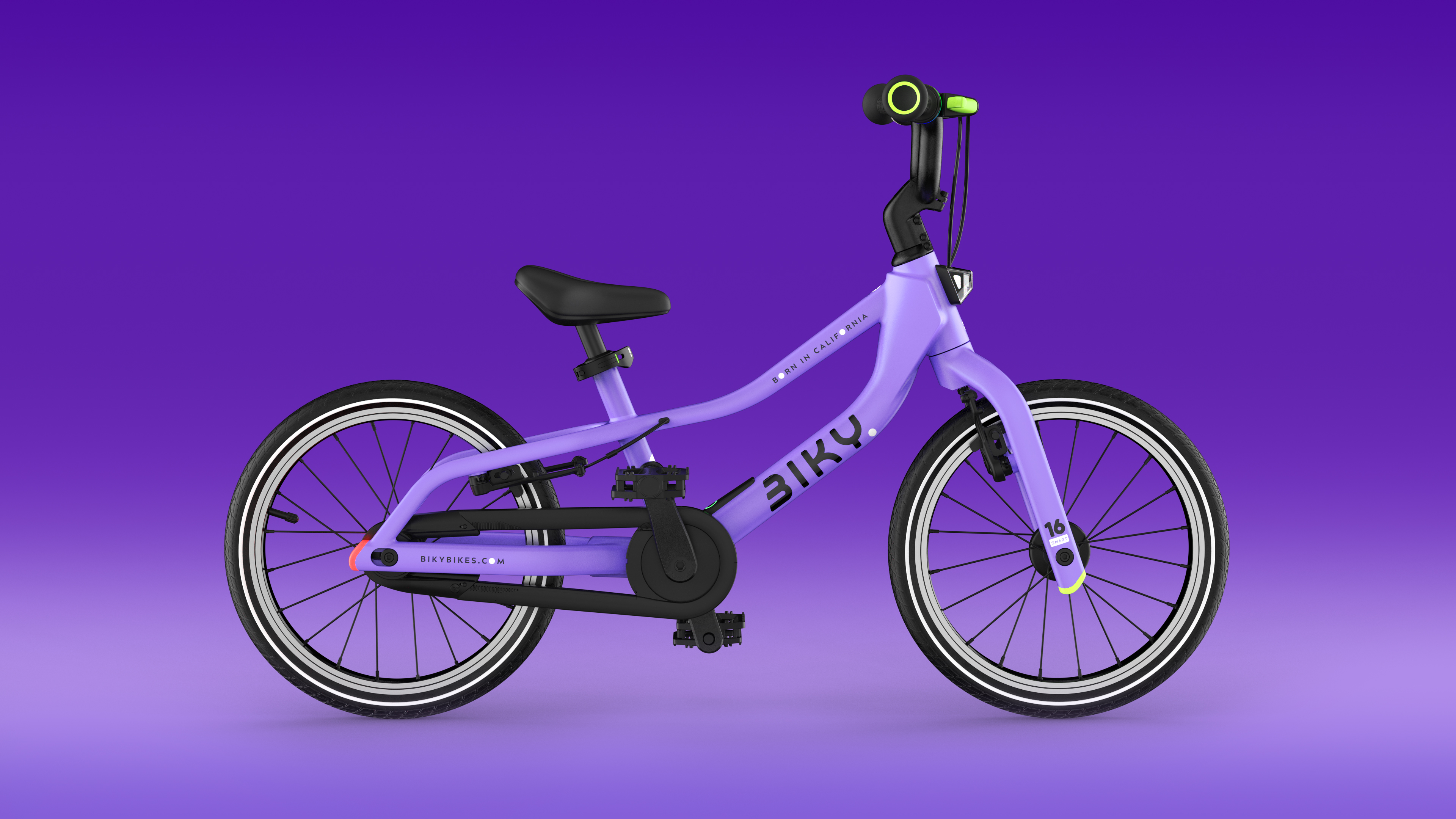 Biky Smart 16 is the first kids bike to combine lightness, comfort, and advanced technology for safe and exciting rides. Its futuristic frame design with hidden brakes, an inverted fork, and bright LED lights at the front, rear, and sides makes it stand out from the rest. Built-in GPS, safety zones, and fall detection provide parents with complete peace of mind, while dynamo charging and rubber-free tires make it eco-friendly. Apps with gamified features for kids and control functions for parents make Biky Smart 16 the perfect choice for a new generation of young explorers.