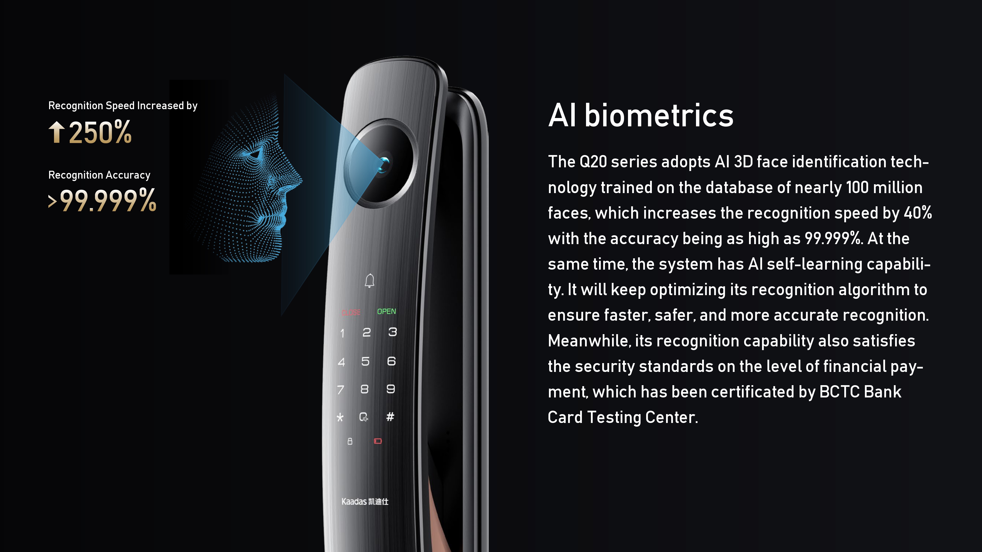 Kaadas smart lock Galaxy series Q20 is designed to provide convenient, safe and intelligent home protection solutions for its customers, given the growing demand for smart home and security.