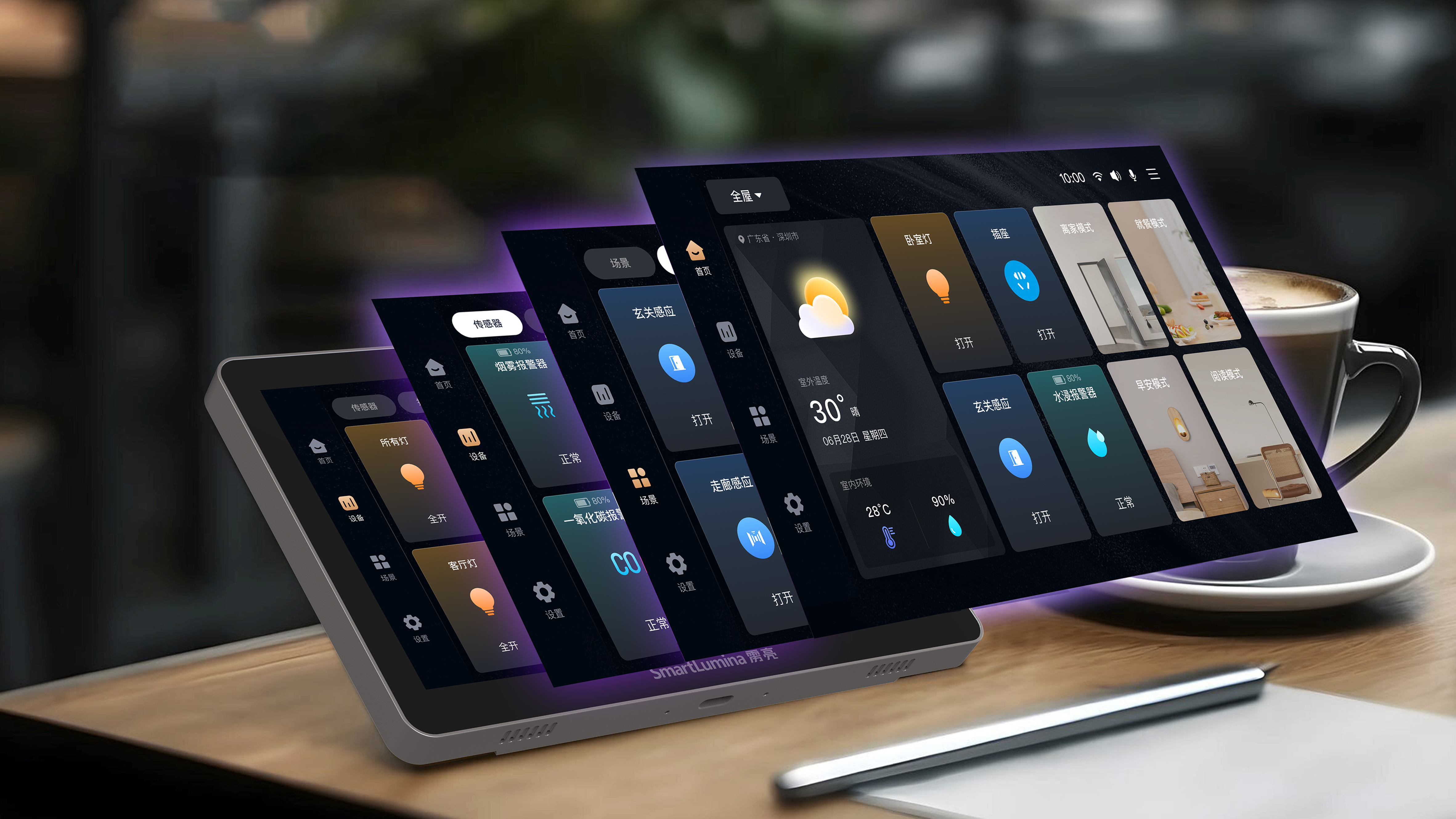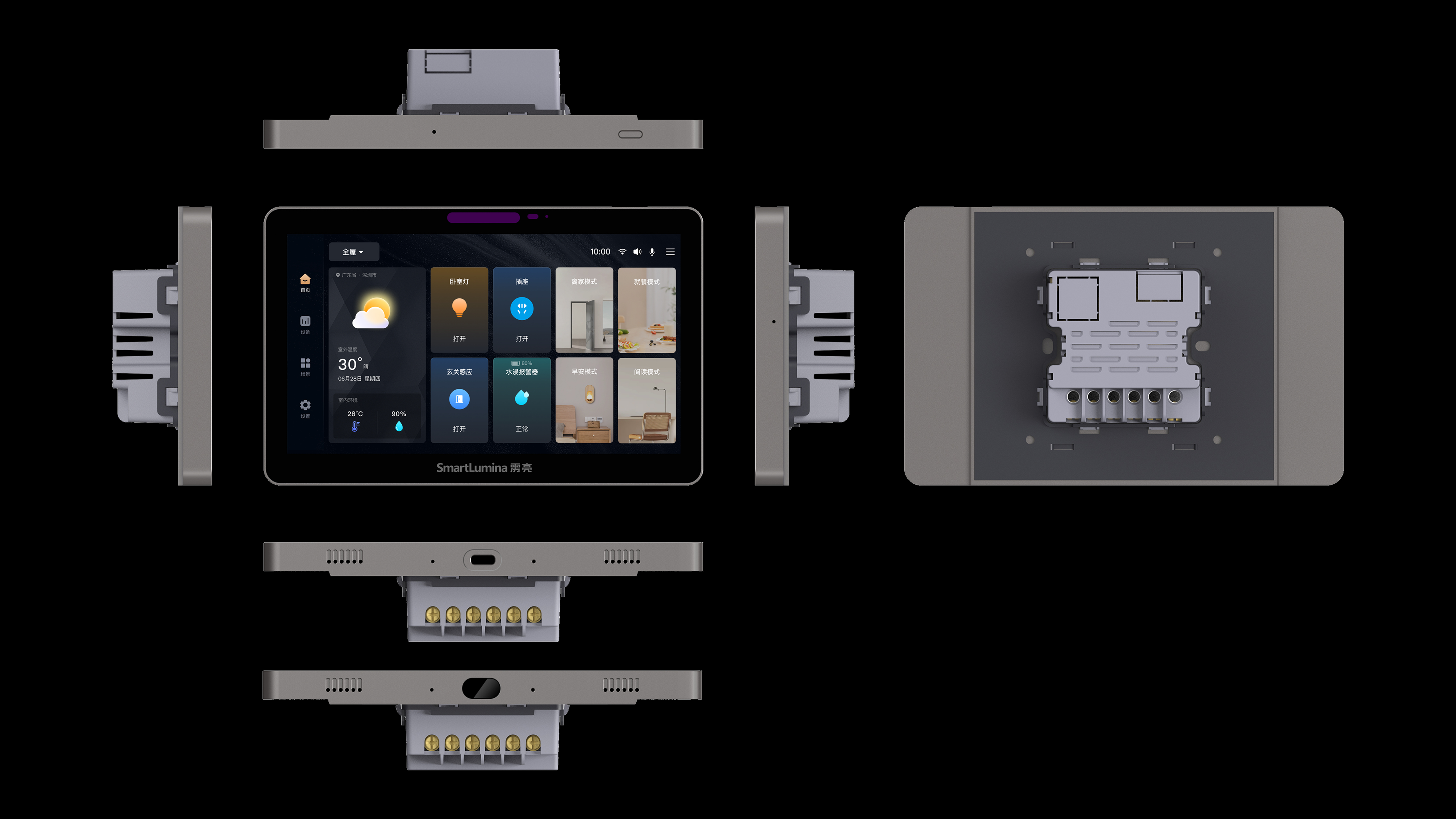 Built-in temperature, humidity, and light sensors enable automatic device adjustments, with a proximity sensor for automatic wake-up as users approach. Multi-screen functionality supports individualized control across multiple rooms, and a one-tap data migration feature simplifies upgrading to new control panels.