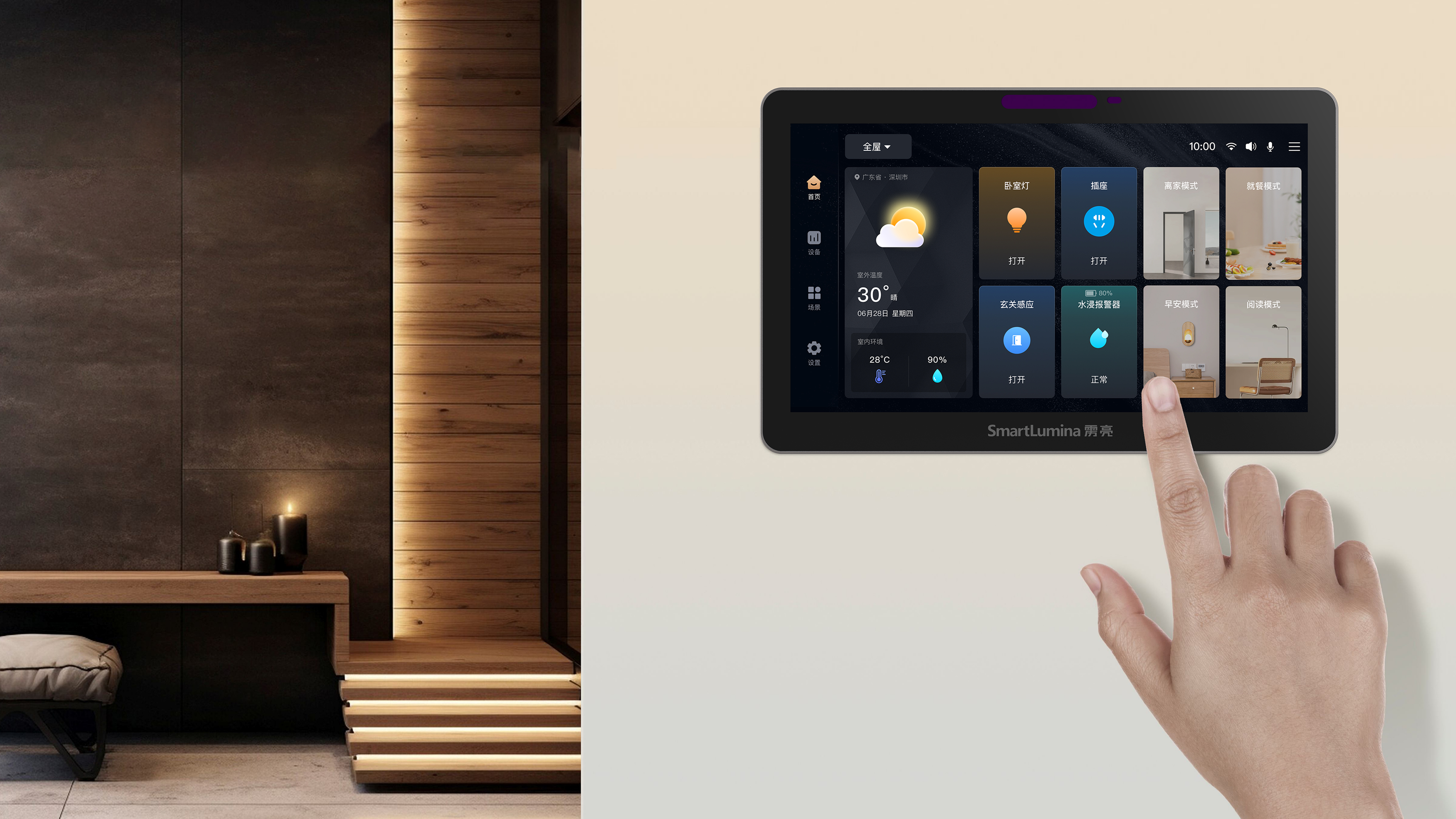Supporting a full range of communication protocols, the panel integrates control for all home smart devices with an infrared transceiver and offers multiple control modes, including the central screen control, app control, AIGC online voice control, offline voice control, ensuring operations to household needs.