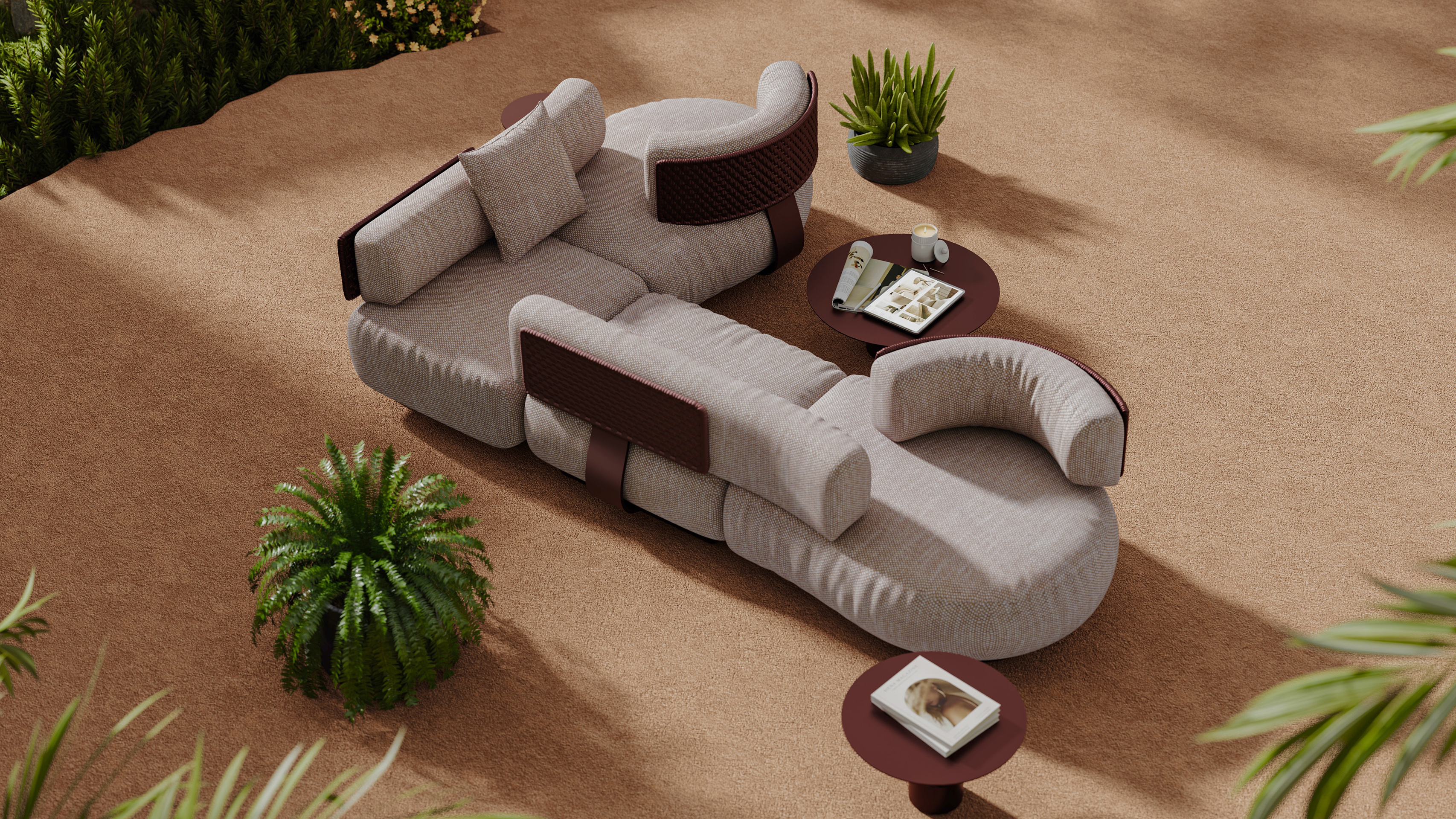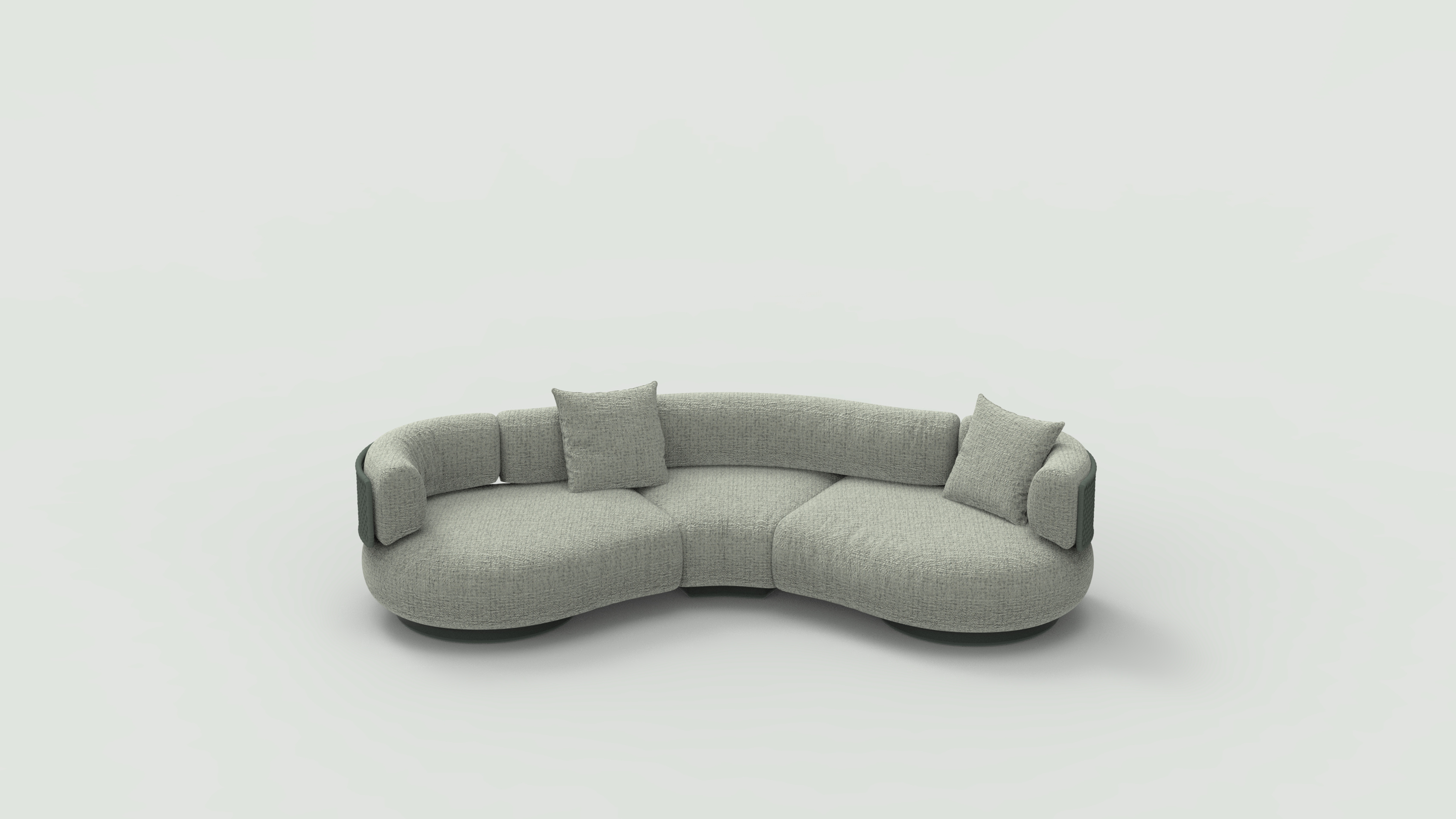 The design features soft curves overall, with arc-shaped sides like embracing arms, providing a sense of wrap-around comfort to those seated. The combination of plump shapes and soft materials offers an ultimate sensation of comfort. Made from eco-friendly materials such as weather-resistant bamboo, recycled ocean plastics, and high-performance fabrics, it is not only durable but also features UV protection, waterproofing, and anti-corrosion properties, ensuring the sofa's stability and aesthetics for long-term outdoor use.