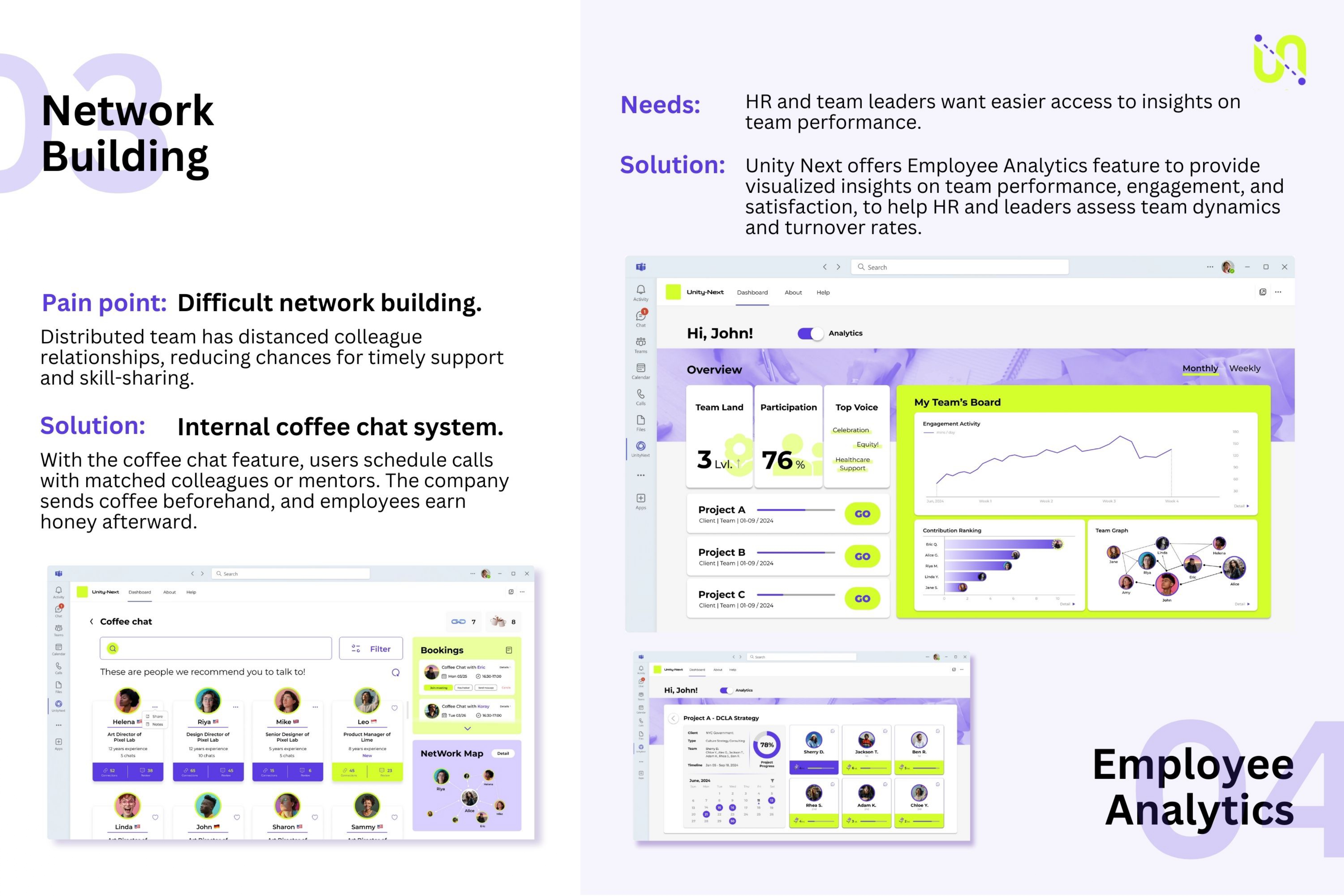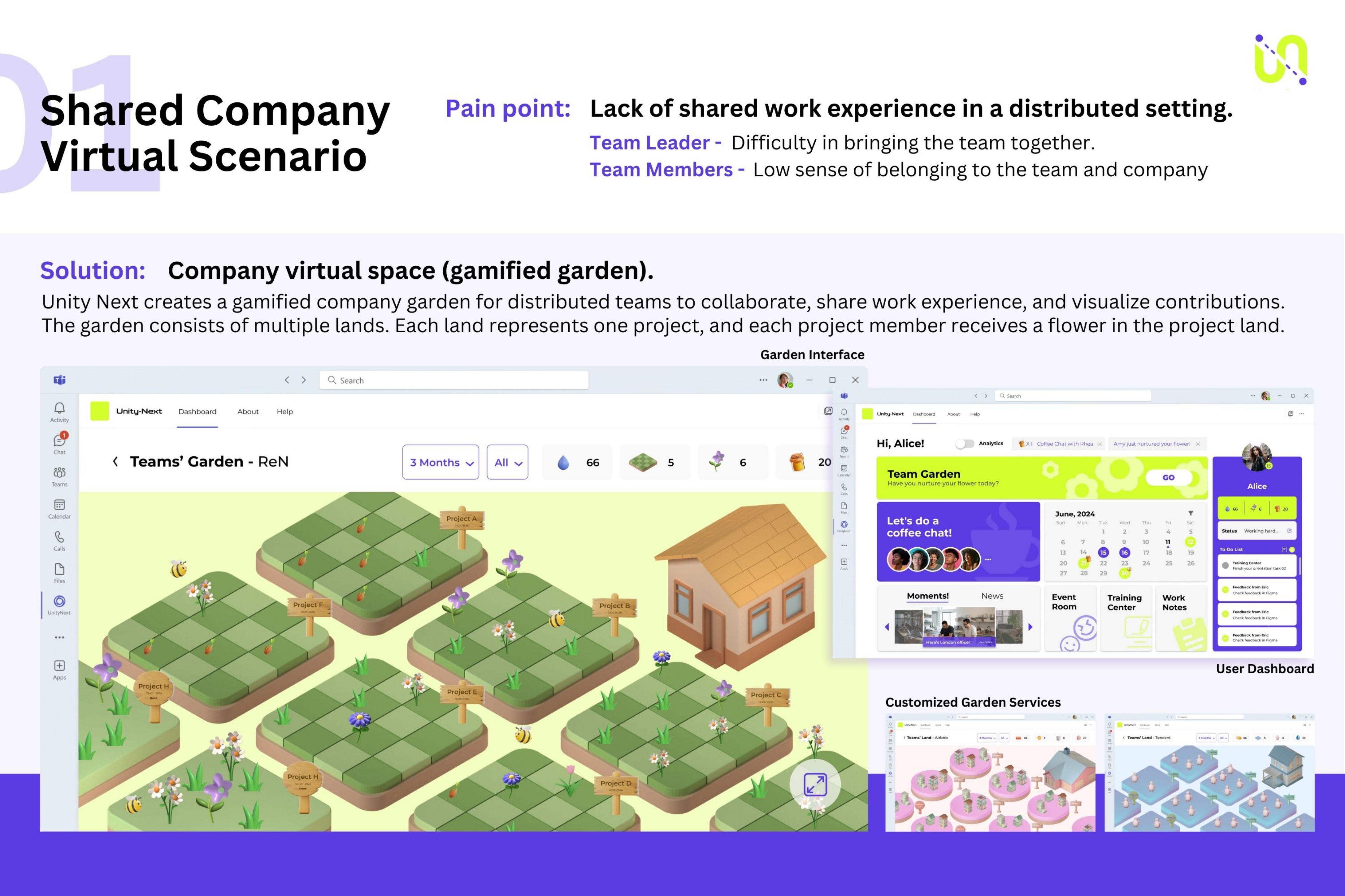 Unity Next is a SaaS tool designed to boost collaboration and culture for distributed teams. Using a gamified virtual garden and incentives, it motivates teams to engage, collaborate, and visualize contributions in an enjoyable way. Weekly and monthly analytics reports help managers assess and enhance performance. By fostering a stronger culture, Unity Next aids in reducing turnover, lowering talent management costs, and creating a more collaborative, proactive, and adaptable workforce.