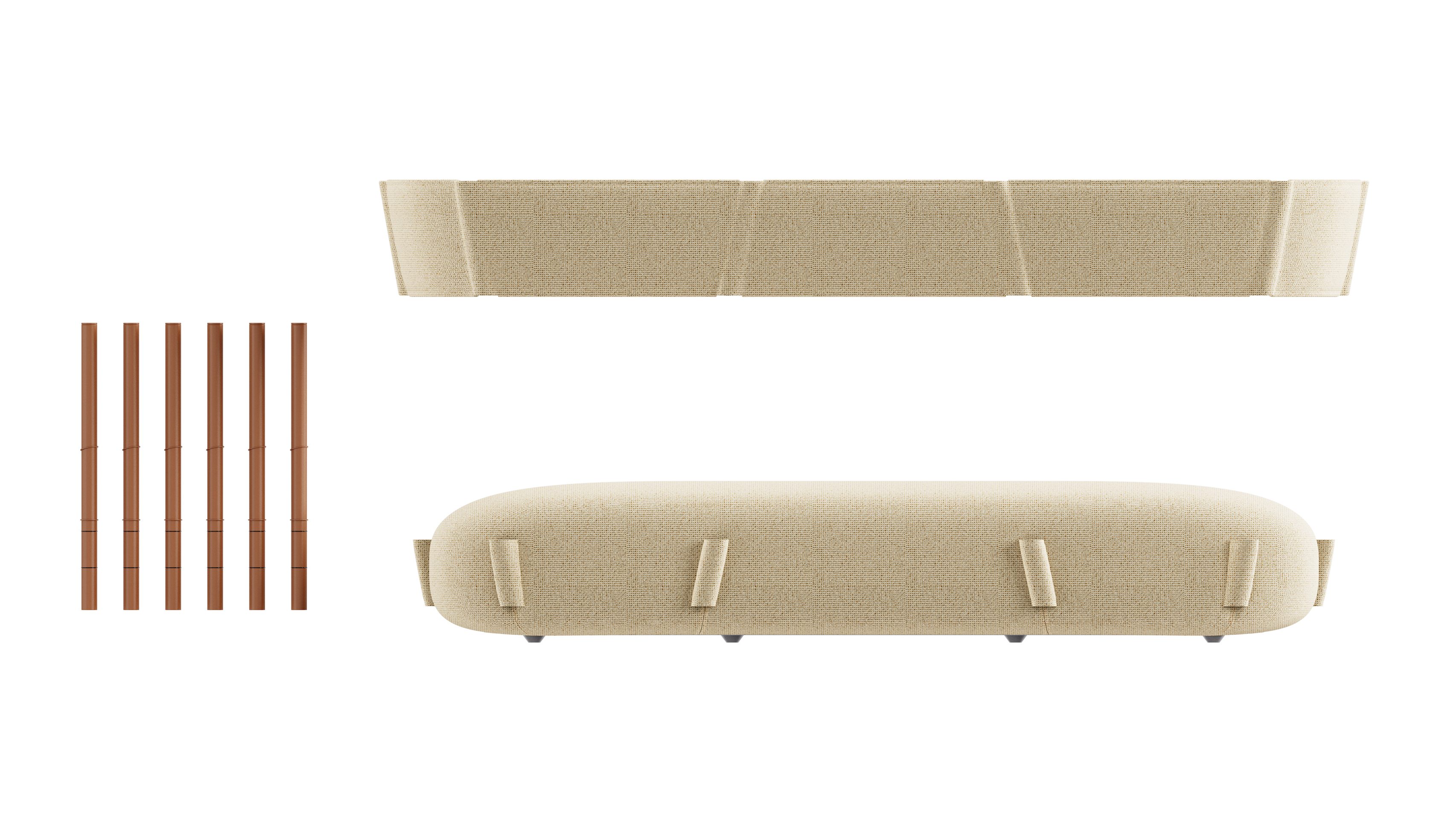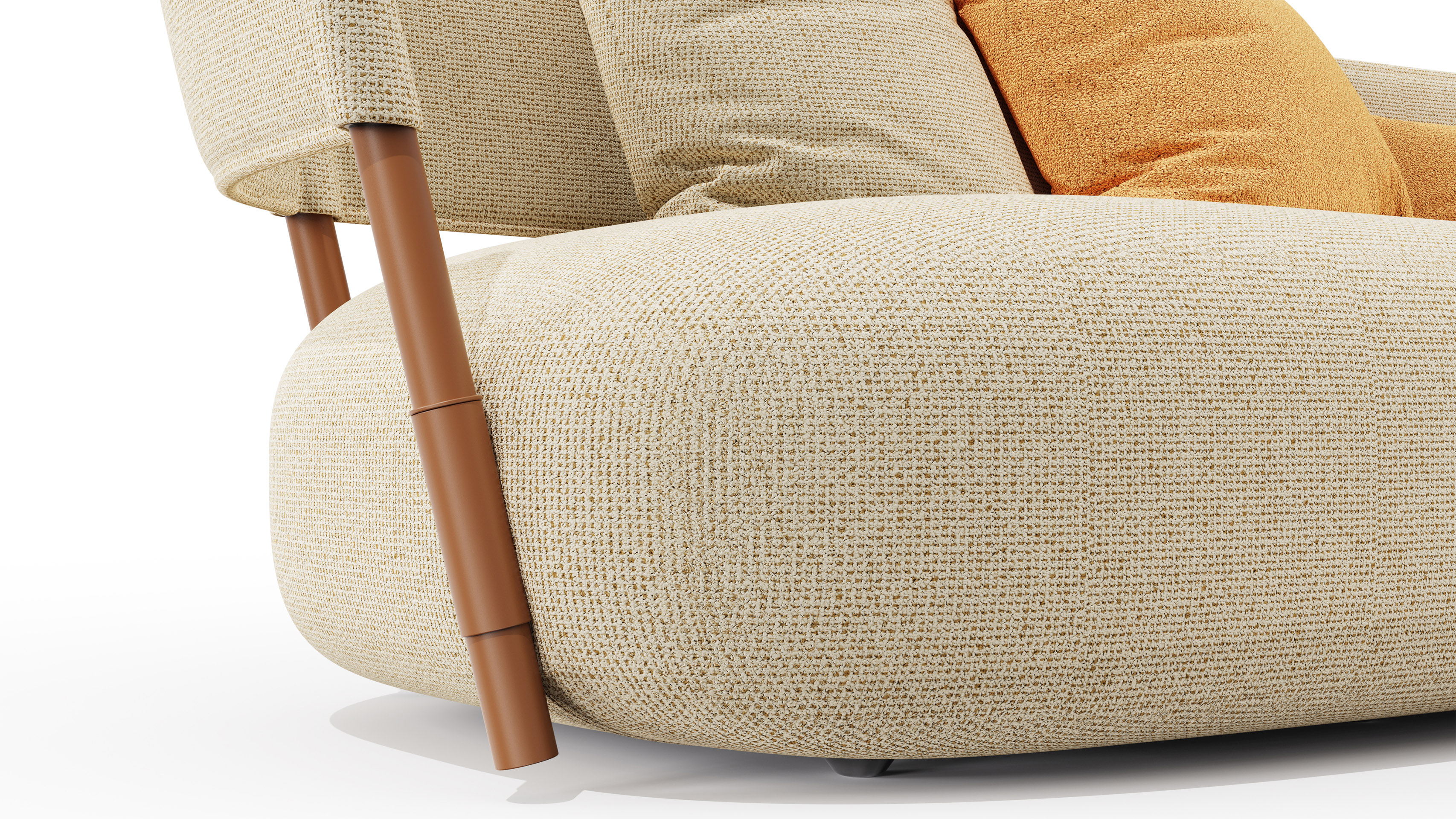 Without any redundant embellishments, this sofa well interprets modern spatial aesthetics. It uses renewable metal tubing and recyclable cotton and linen to be eco-friendly, combined with waterproof fabric, Velcro, and built-in quick-drying foam, improving the user experience and adapting to various home spaces.