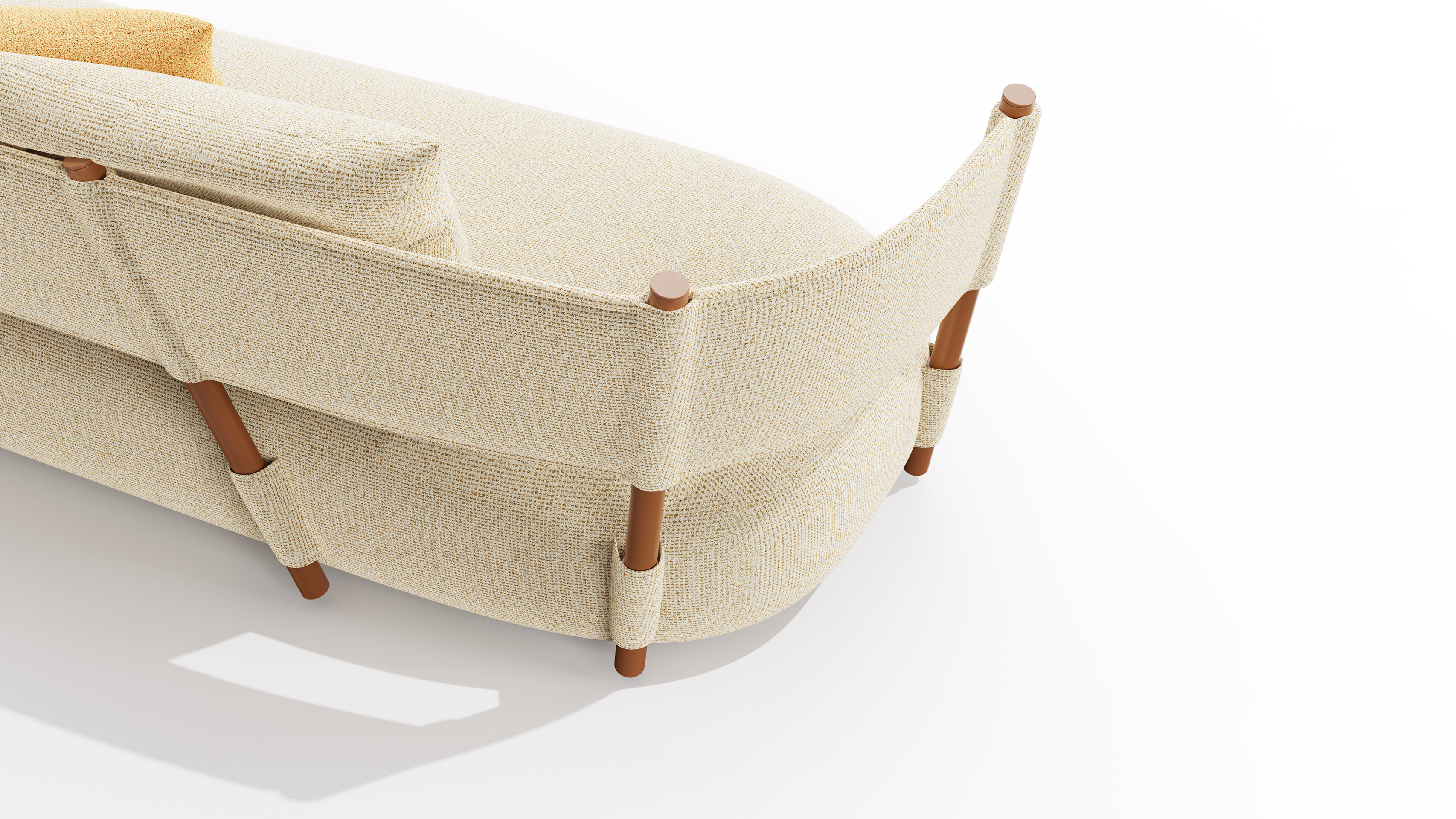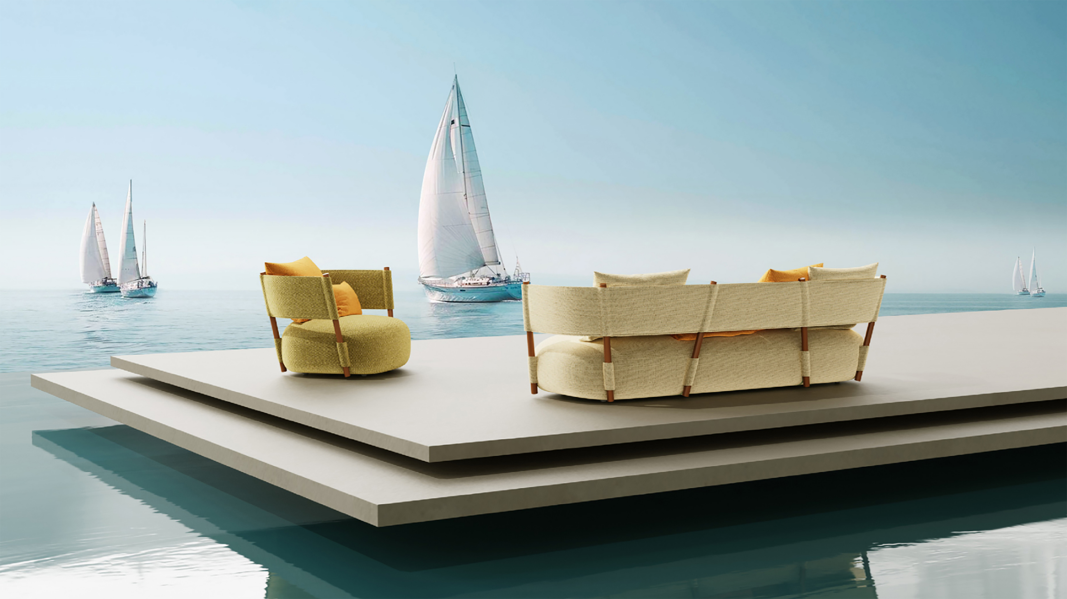 The Sail sofa is an innovative piece of furniture inspired by the fluttering and movement of sails on the ocean. Combining minimalist aesthetics and convenient installations, it creates an eye-pleasing and elegant home environment. It adopts natural cotton and linen materials that are biodegradable and recyclable, aligning with the concept of sustainable development. After repeated testing of metal connections, support, and ergonomics, this sofa boasts a minimalist, streamlined appearance and enables simpler assembly than conventional sofa products. Its unique backrest based on the principles of interactive mechanics offers a relaxing experience similar to a tranquil outdoor hammock. This design fits human's natural postures, blending aesthetics and functionality.