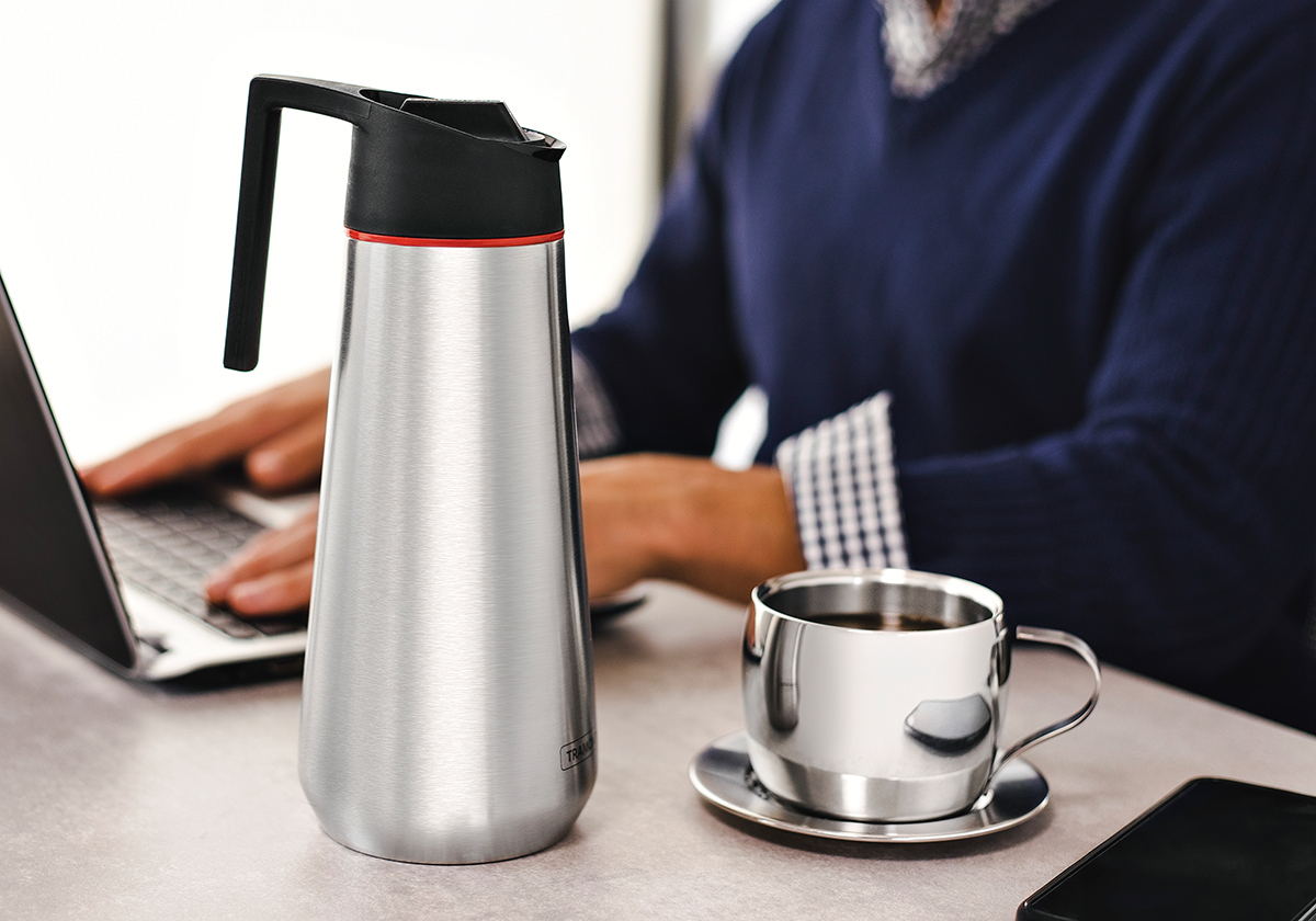 A few years ago, we started a line of stainless steel thermoses as a natural extension to our client's well-established Tea and Coffee portfolio. This development was a perfect symbiosis: we combined the expertise of a century-old manufacturer in the handling of stainless steel with the aim of creating pieces that combine tradition and innovation. The Exata Premium line quickly conquered the market, being recognized for its high quality and unique design.