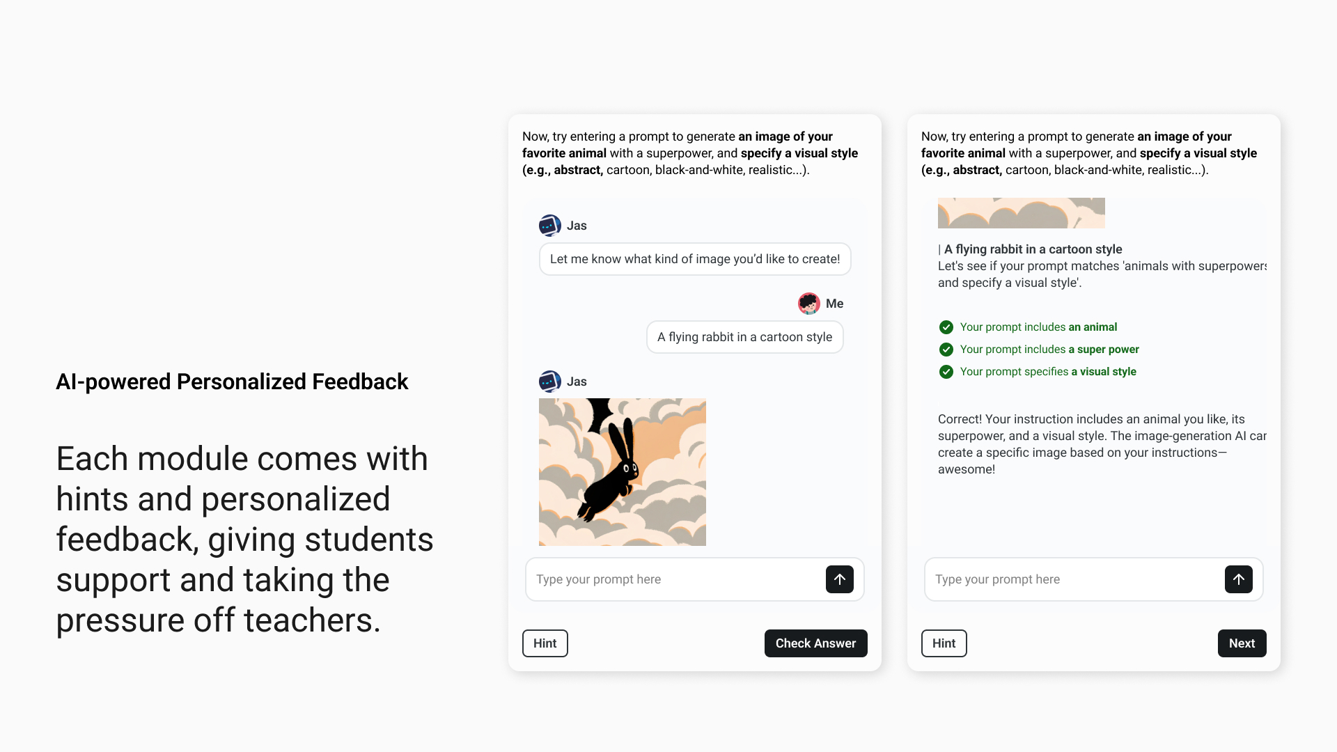 Unlike many K-12 AI education efforts that focus predominantly on teaching students to develop AI systems, ActiveAI is uniquely designed for “AI users.” It centers on understanding and interacting with AI tools rather than coding them. This user-centric approach, combined with active learning strategies, personalized immediate feedback , and intelligent hinting, sets ActiveAI apart from static, lecture-based resources. Students learn how AI models make predictions, understand the concept of randomness, and gain a foundational understanding of AI’s capabilities and limitations.