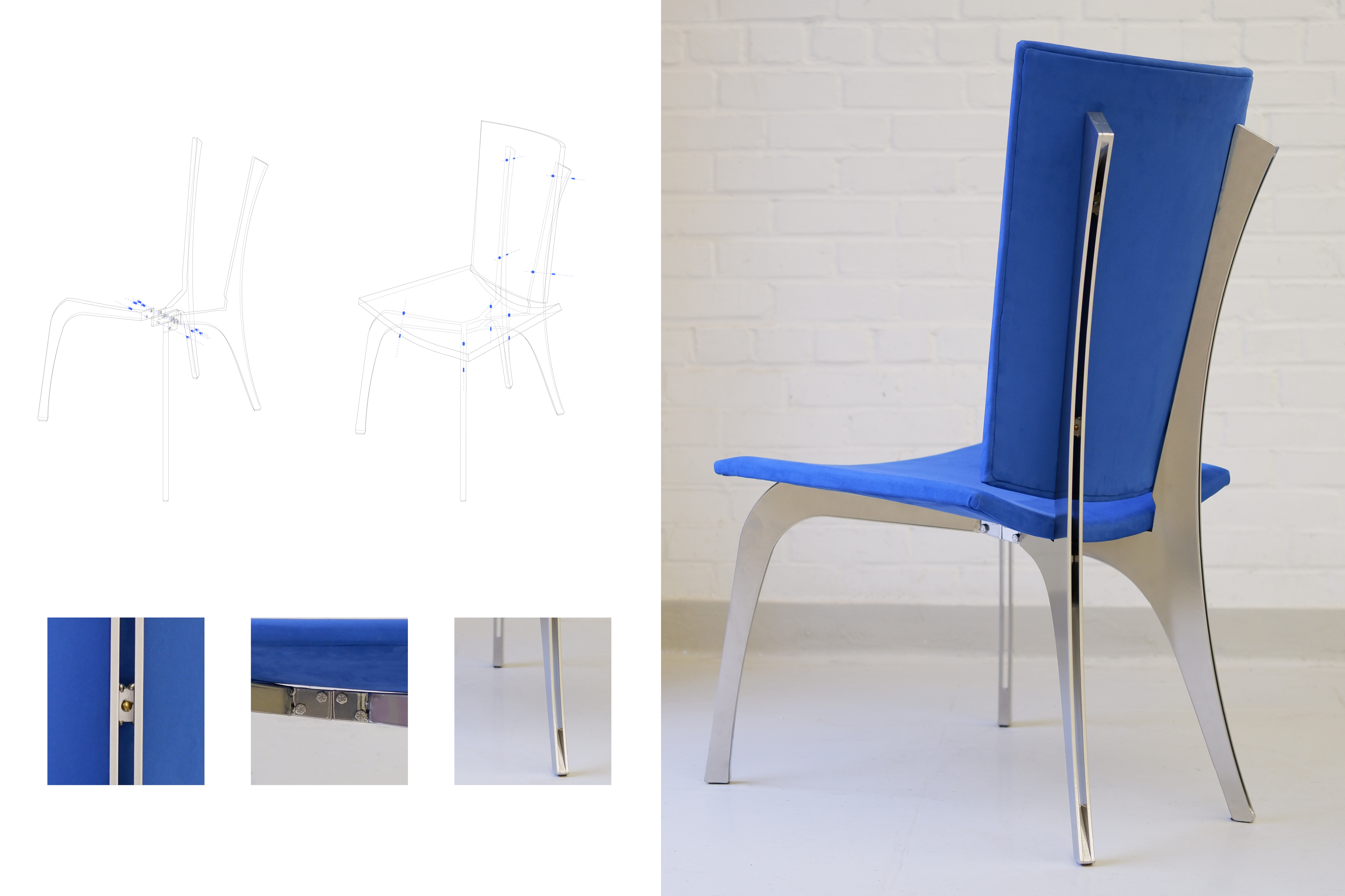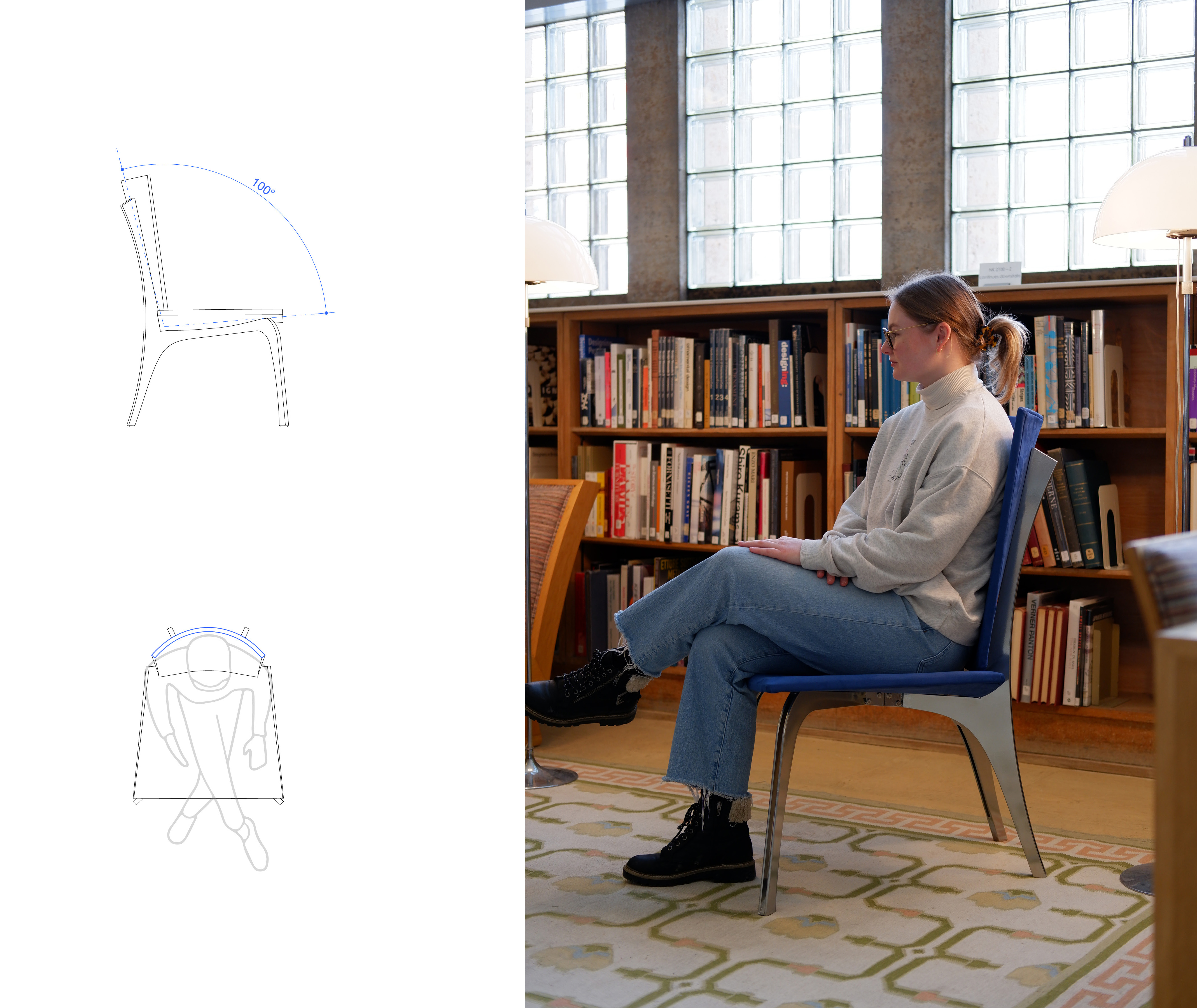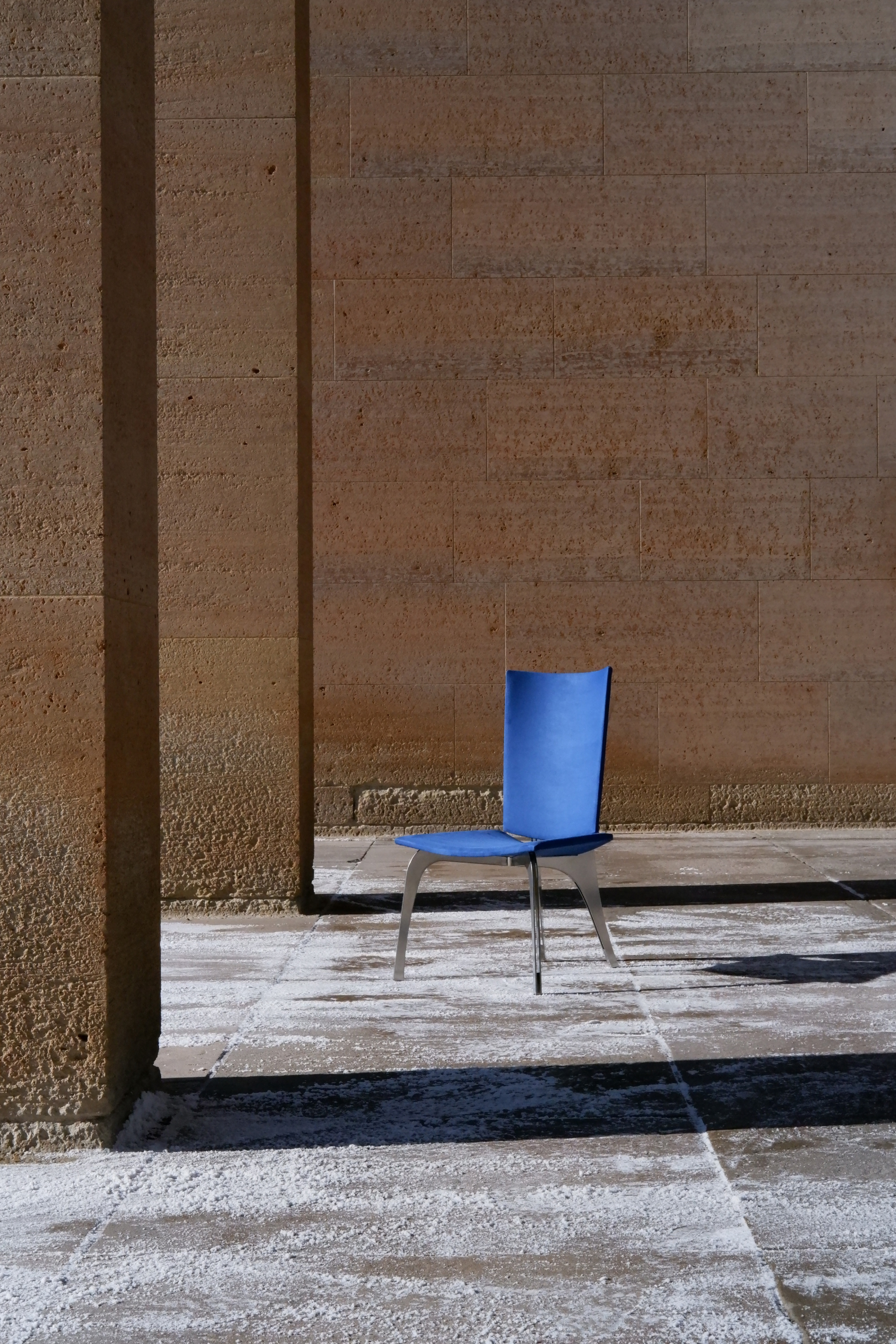 Crafted for longevity and versatility, the chair combines a brass-chrome powder-coated steel frame with 3/8-inch bending plywood, foam, and ultrasuede upholstery. Its robust construction includes furniture-grade screws and nuts to enhance stability, while its clean lines and timeless proportions adapt to various settings. Sustainability is integral, with most components designed for disassembly and recycling, reducing waste and improving transport efficiency. The Thinking Chair transitions seamlessly from public spaces to personal living rooms, offering a lasting, comfortable environment for thought and connection.