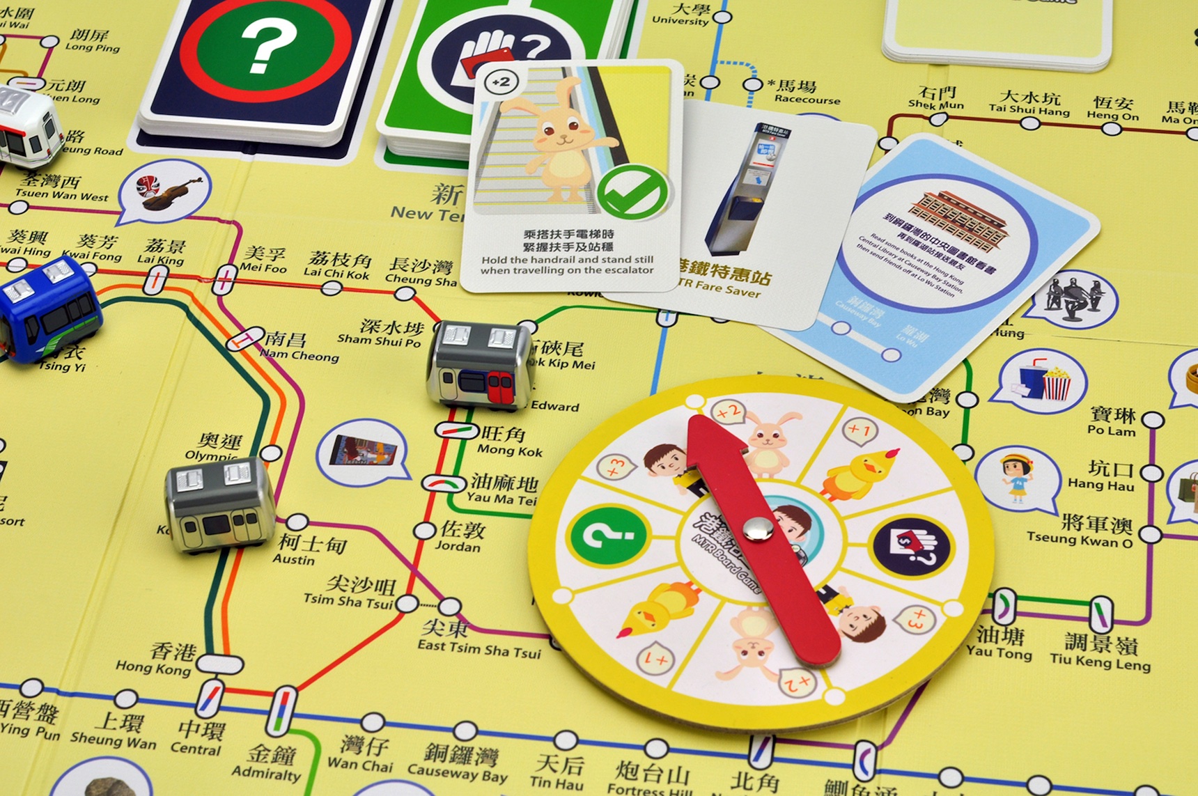 MTR train is most of the HK youngsters, kids daily transportation. Though the board game is an engagement, interactive and comfortable mode to let children understand the safety message and behaviour once they are using up the MTR. When they play the game, they learn transport with the different station, route and likewise discovers the safety message from the game scorecard. The board game also thought the reading pen , point it to voice out the MTR original sound for easy learning as well