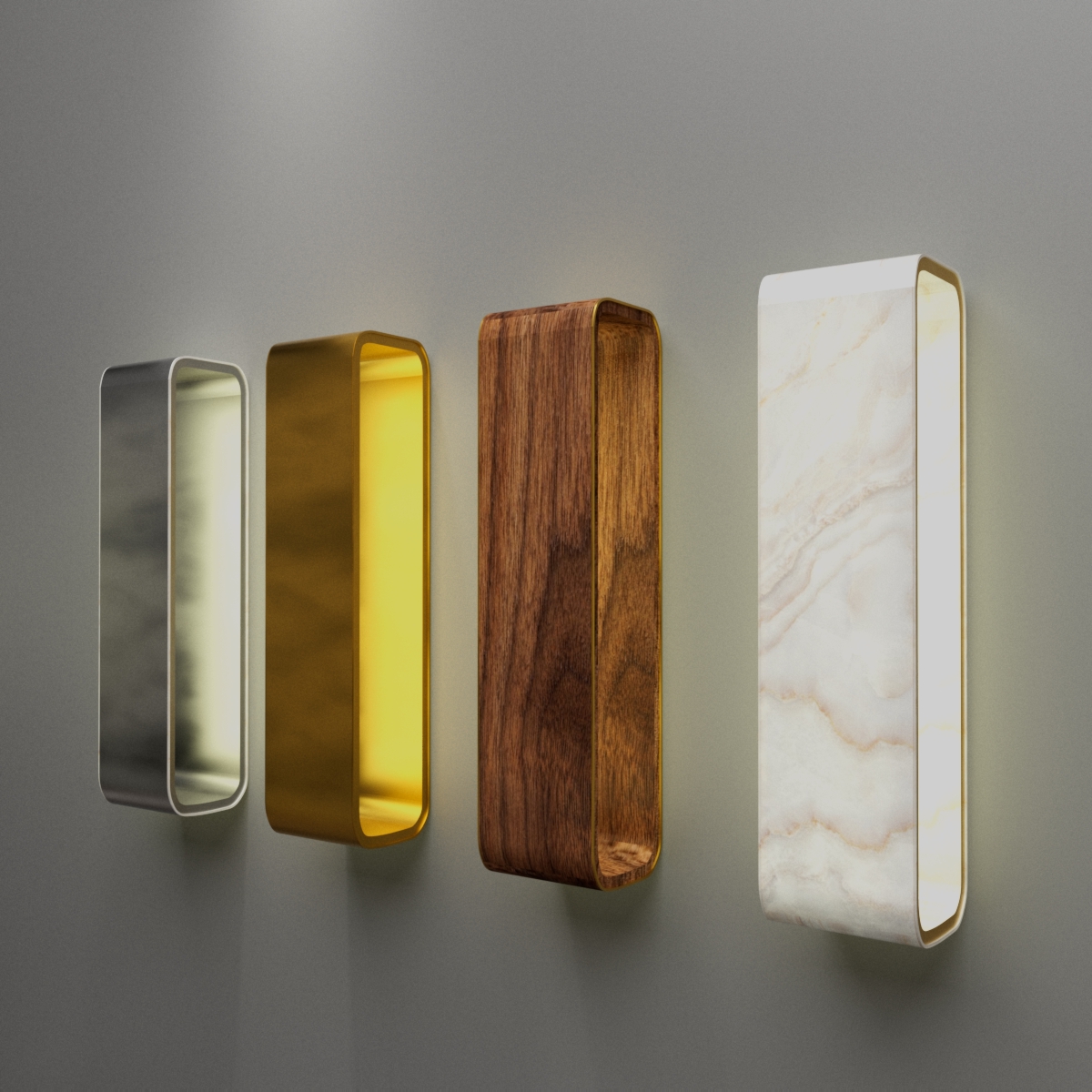 The aim of a continuous design is the perception of the material as a whole, with details appropriate to the nature of the materials in the product range. The light source and the wiring for lighting are hidden in the cavity within the shell of the product itself. The glass surface, intended for the diffusion of light, is hidden inside the shell and placed on the same level with the material, ensuring the continuity of the shape. Once the lighting is mounted on the wall, the surface on which it hangs has a clean geometric appearance. It brings a simple and functional approach to the conventional with a variety of material options.