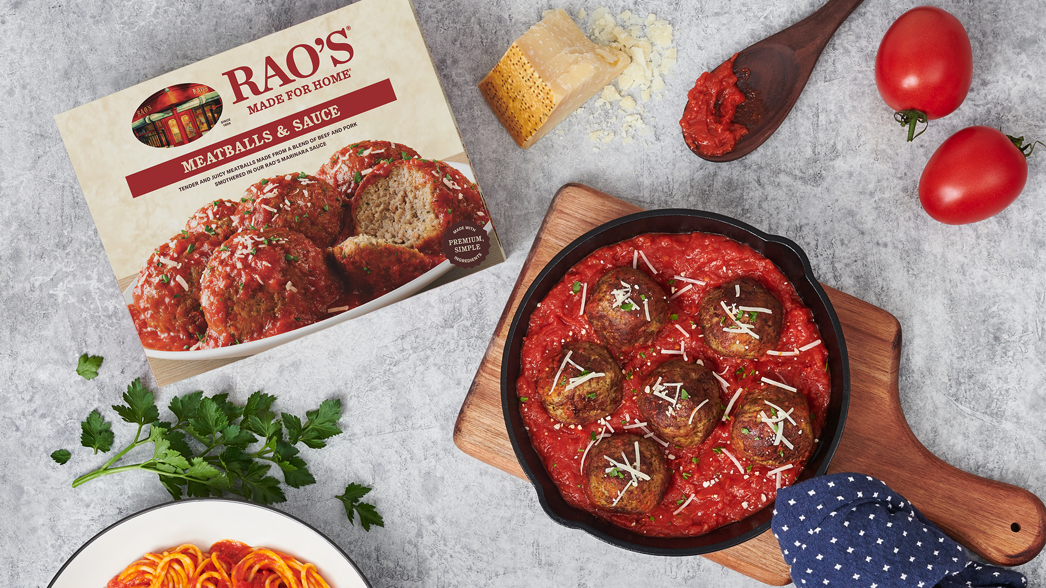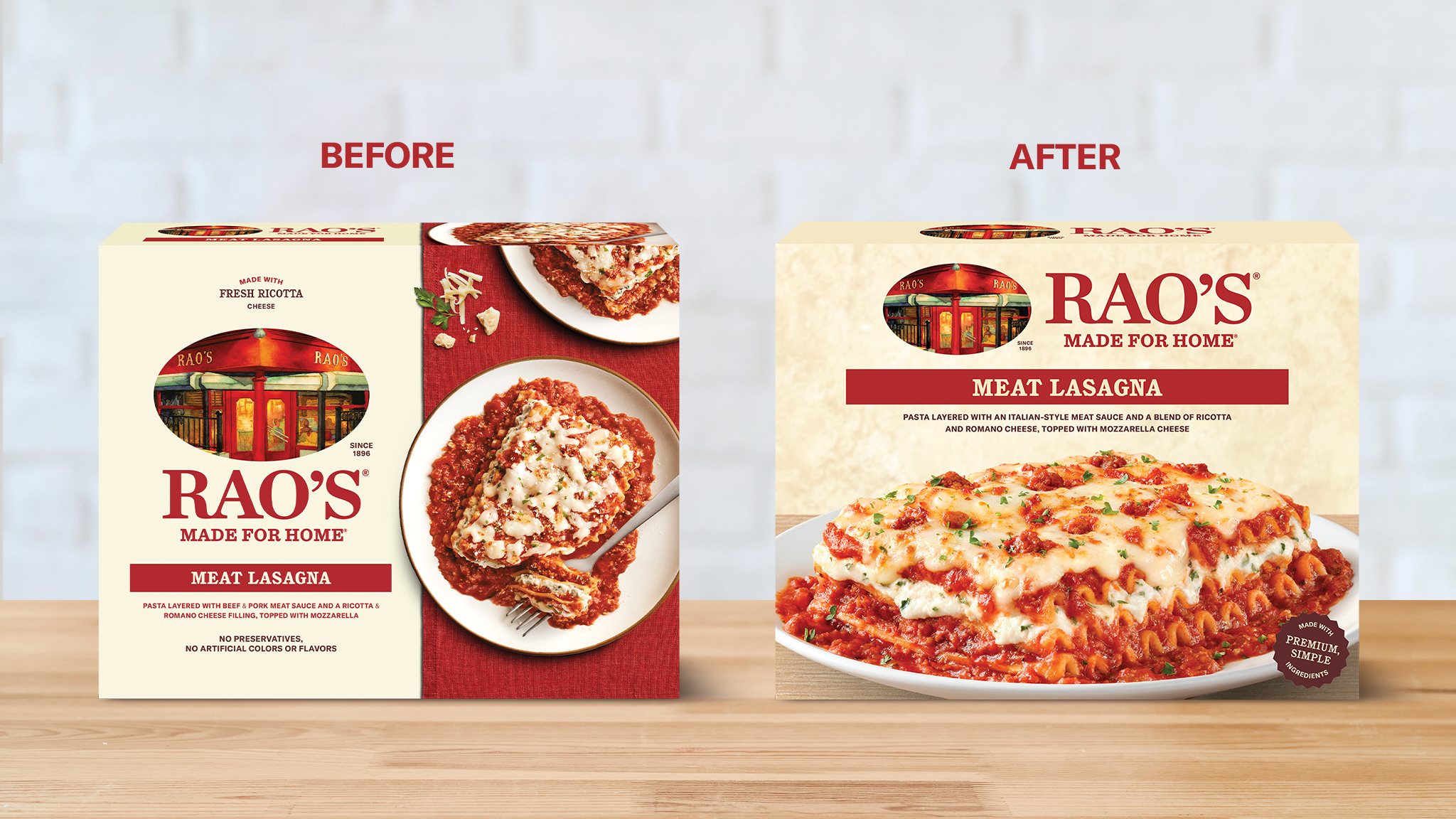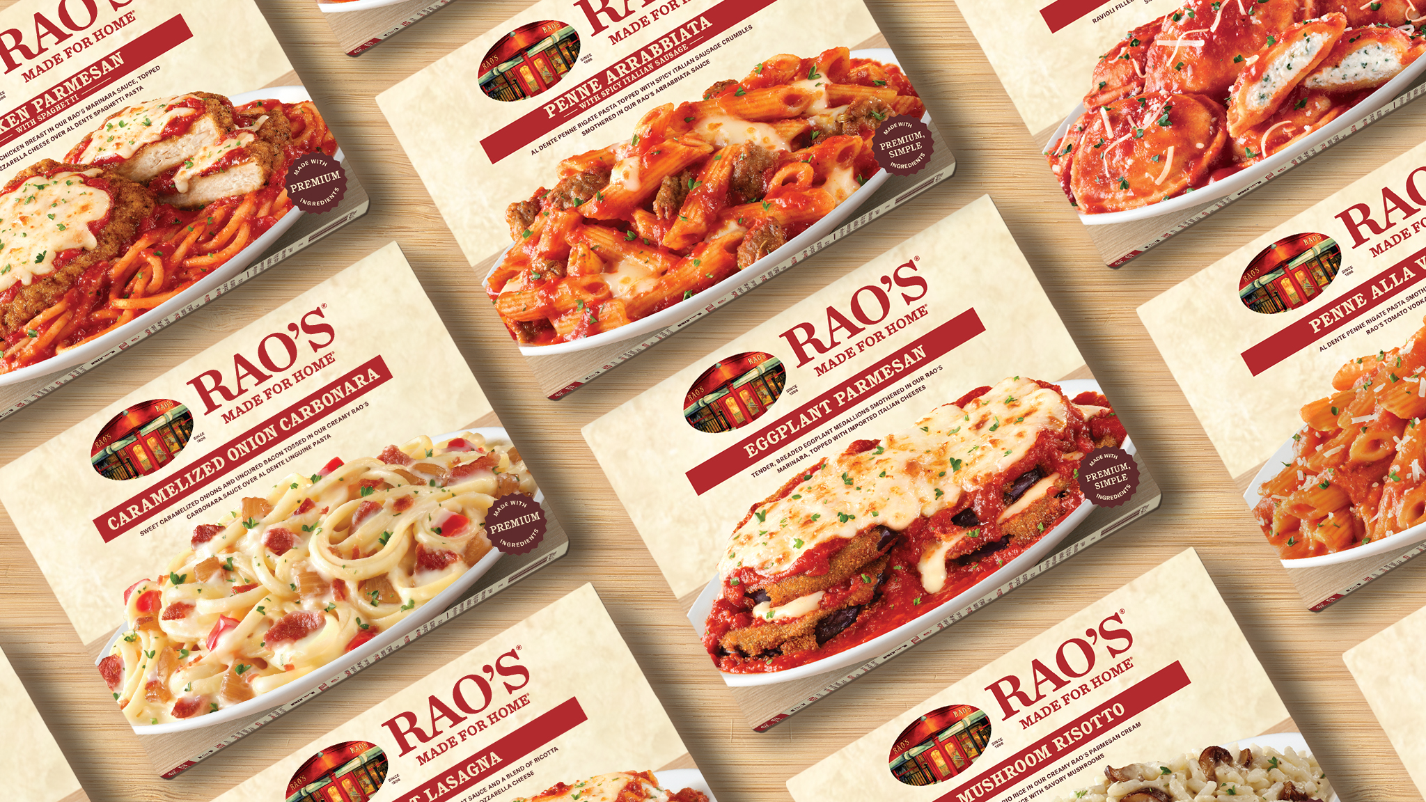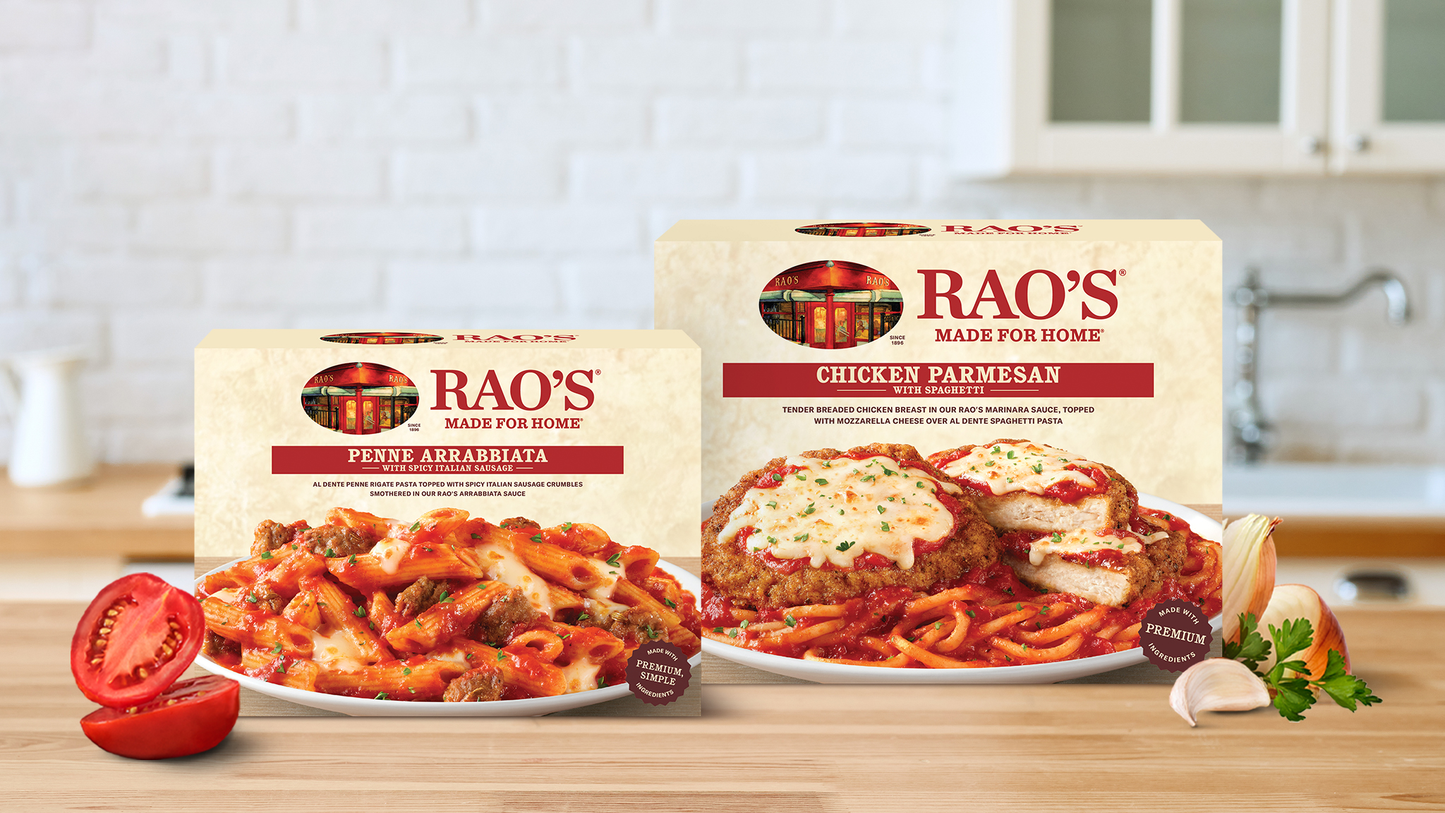To set the stage for our food photography, we designed a backdrop inspired by the warmth and rustic charm of Tuscany. Rich, kitchen-inspired textures bring authenticity, while Rao’s Made for Home signature cream color reinforces brand recognition and deepens the connection to its Italian-inspired recipes. The background flows seamlessly across the primary display panel, providing a cohesive yet neutral canvas that lets the food and brand elements stand out. The result? A powerful brand-blocking effect that links every box on the shelf, amplifying recognition and commanding attention in the freezer aisle.