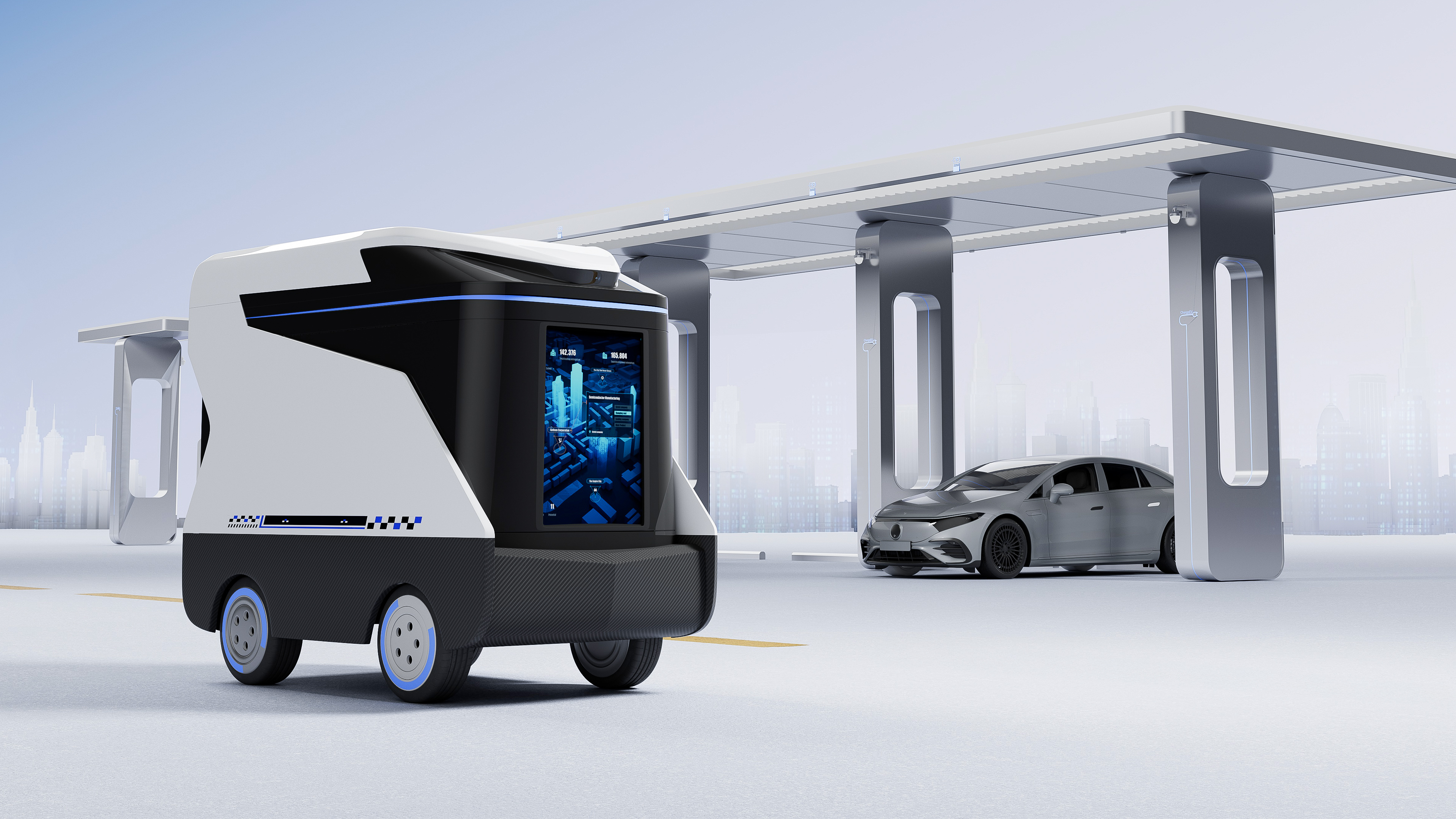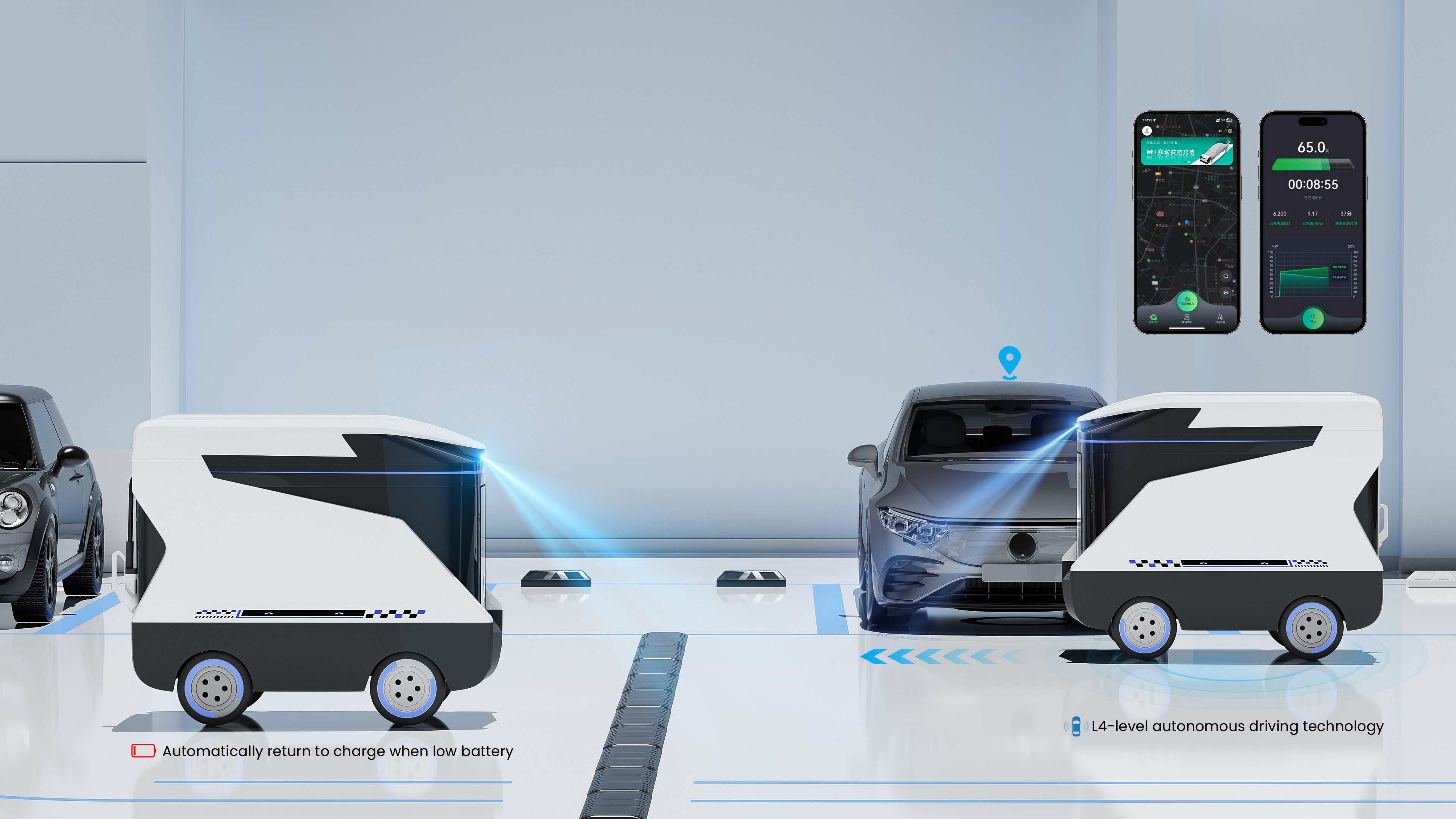 RYC New-Generation Mobile Energy Storage & Charging Vehicle is a mobile charging vehicle with battery energy storage. It can be flexibly configured to use low-peak electricity at night to charge the mobile charging vehicle and charge new energy vehicles during the day. The charging power can reach 120KW, and it also has L4 level autonomous driving function. It mainly solves the problem of insufficient charging piles in scenes such as highways.