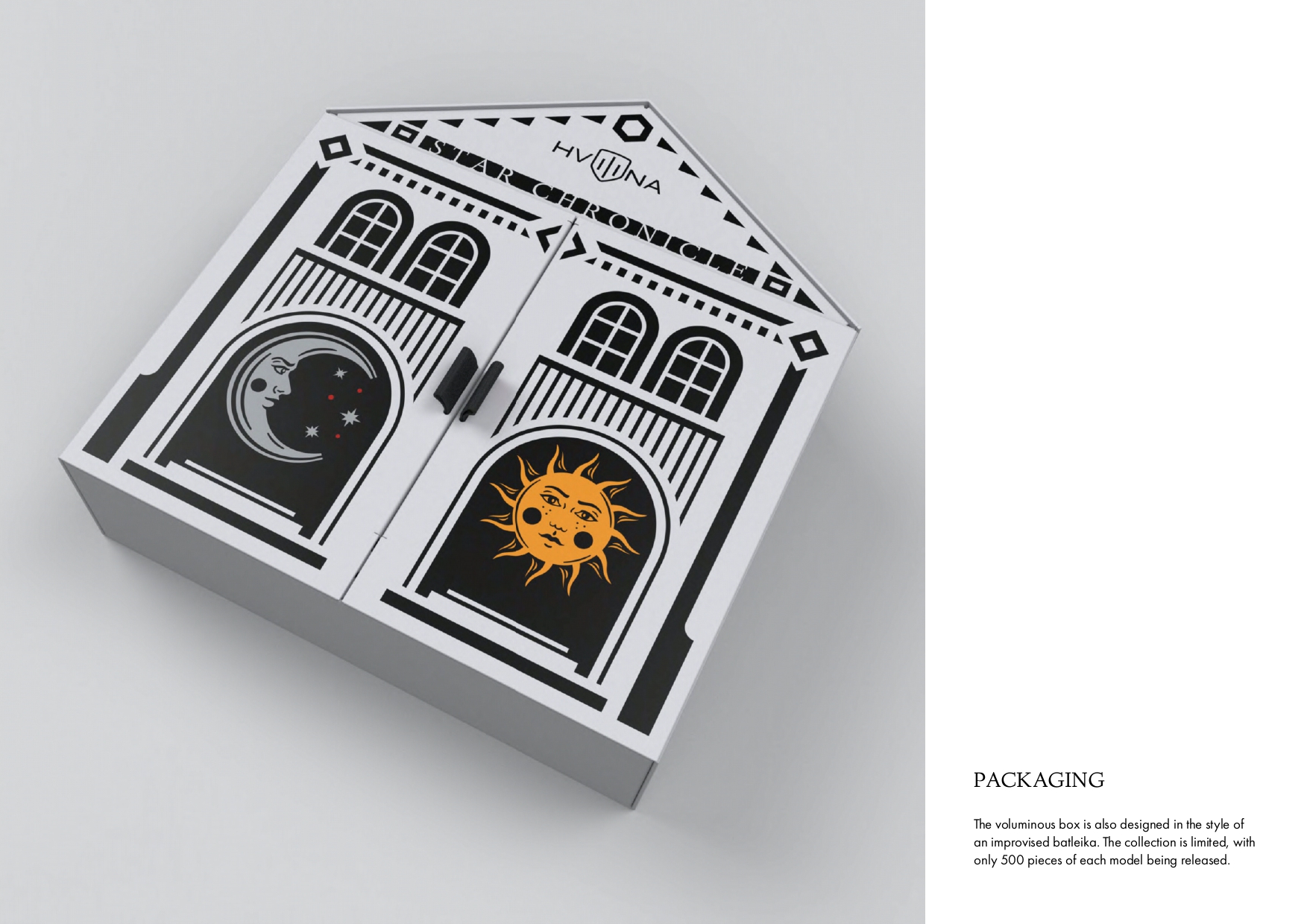 The voluminous box is also designed in the style of an improvised batleika. The collection is limited, with only 500 pieces of each model produced.