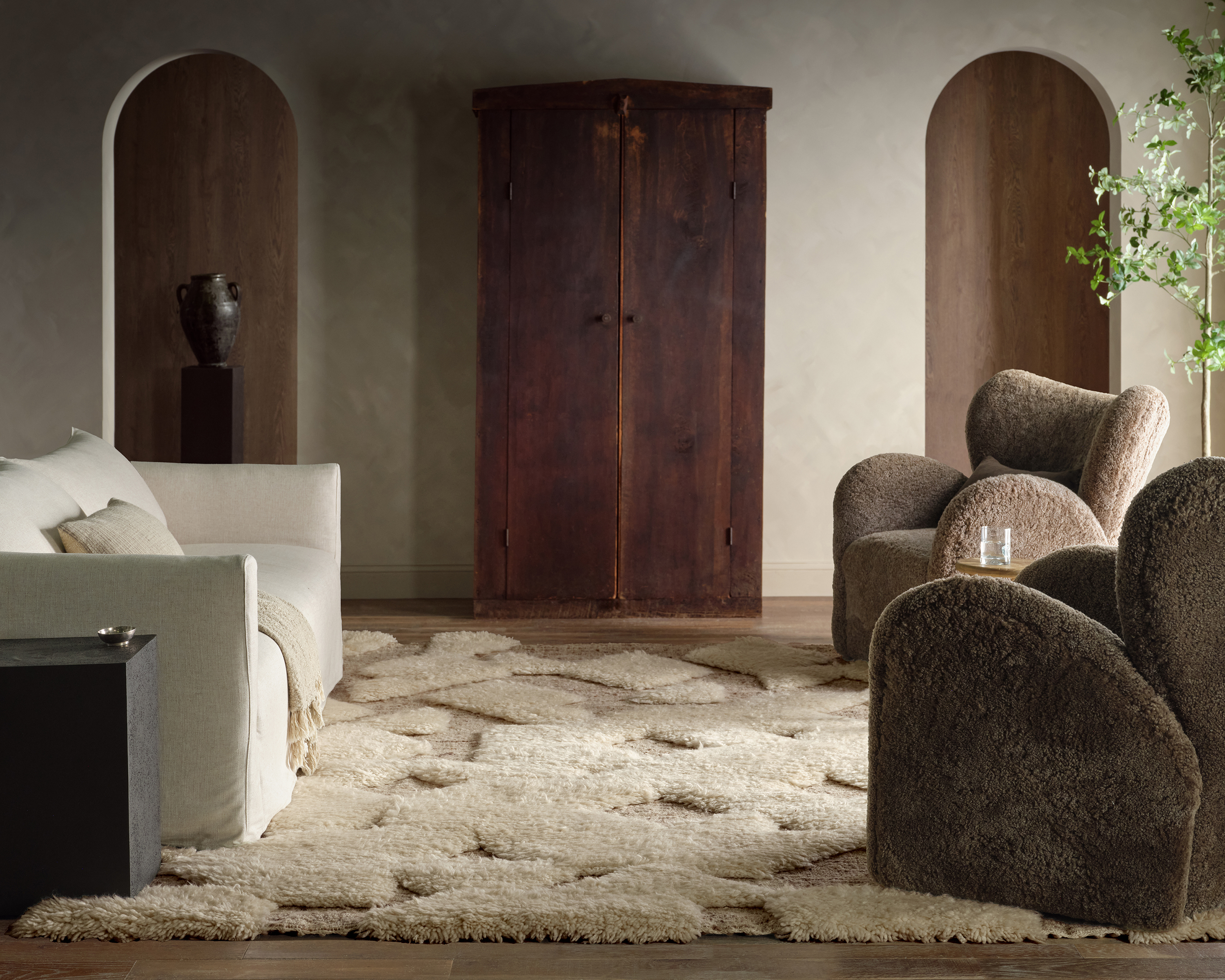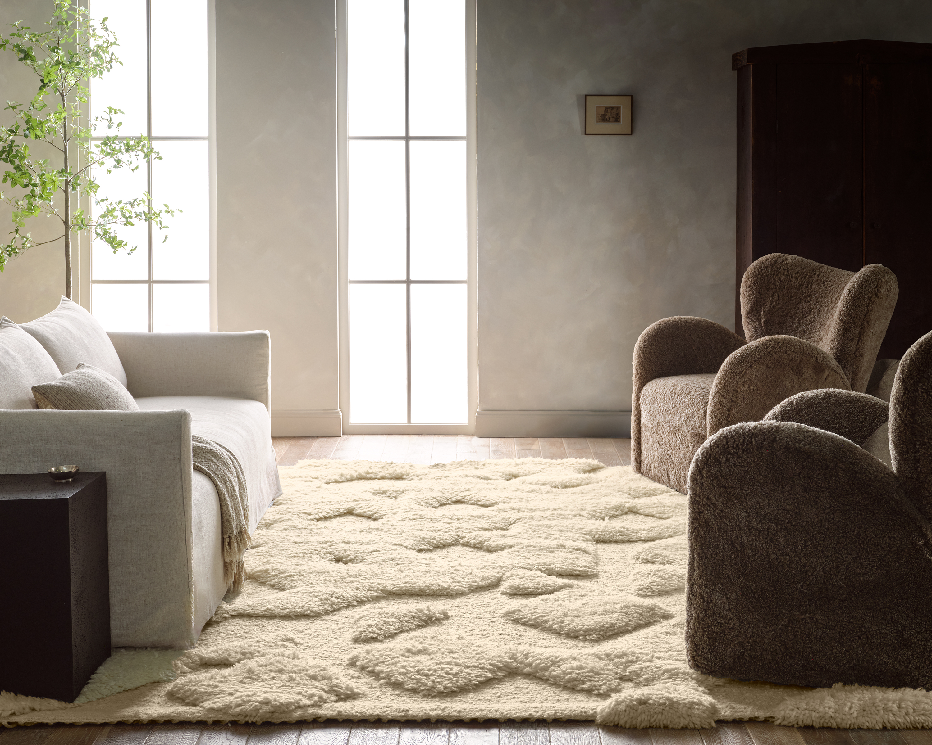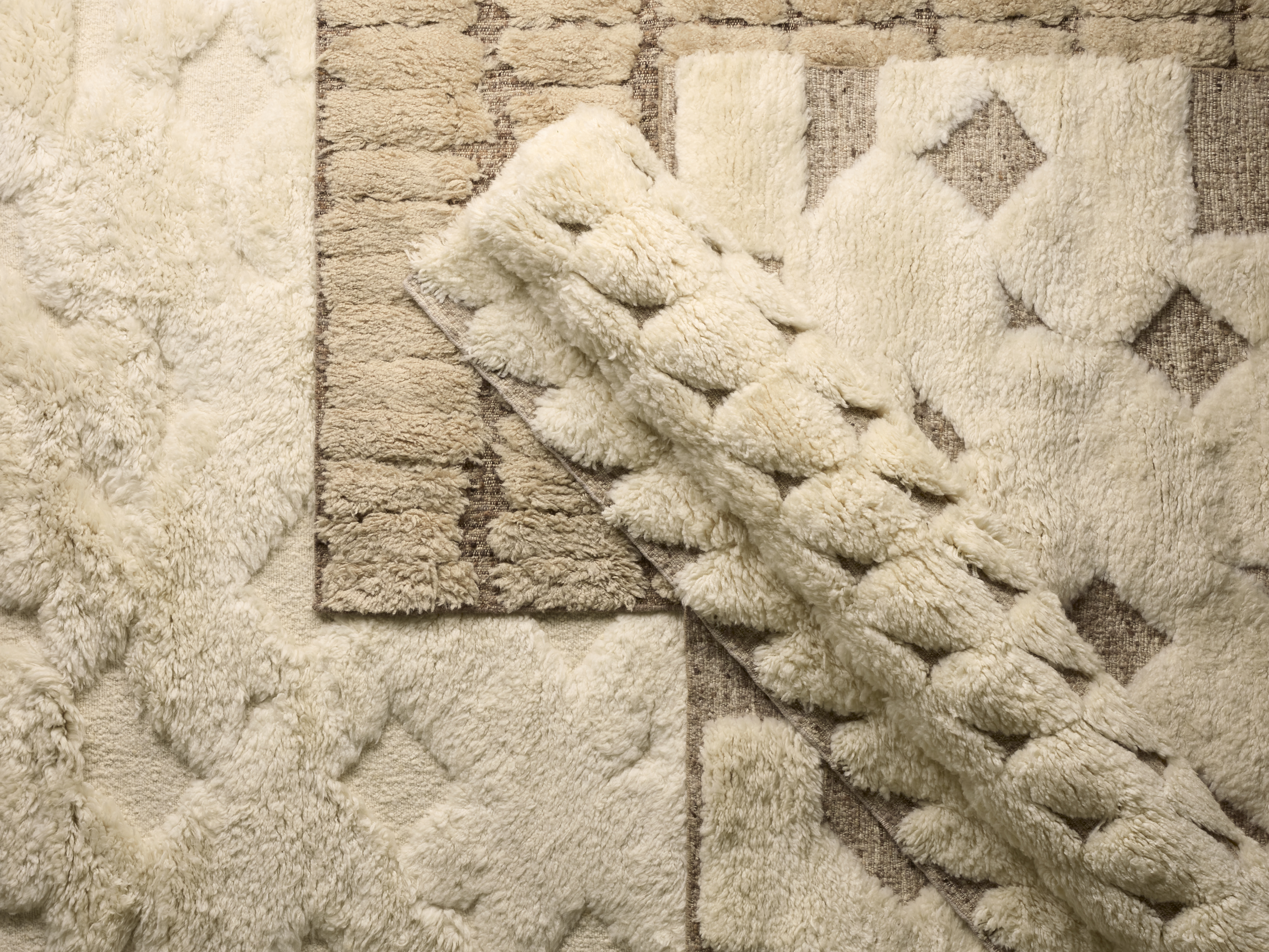 The collection’s neutral, organic color palette and high/low textural interplay pay homage to Egypt’s rich history—from the timeless grandeur of its architecture to the intricate craftsmanship found in ancient landscapes and artifacts. The result is a collection that balances old-world influence with modern sensibility, creating rugs that feel both grounded and luxurious.
