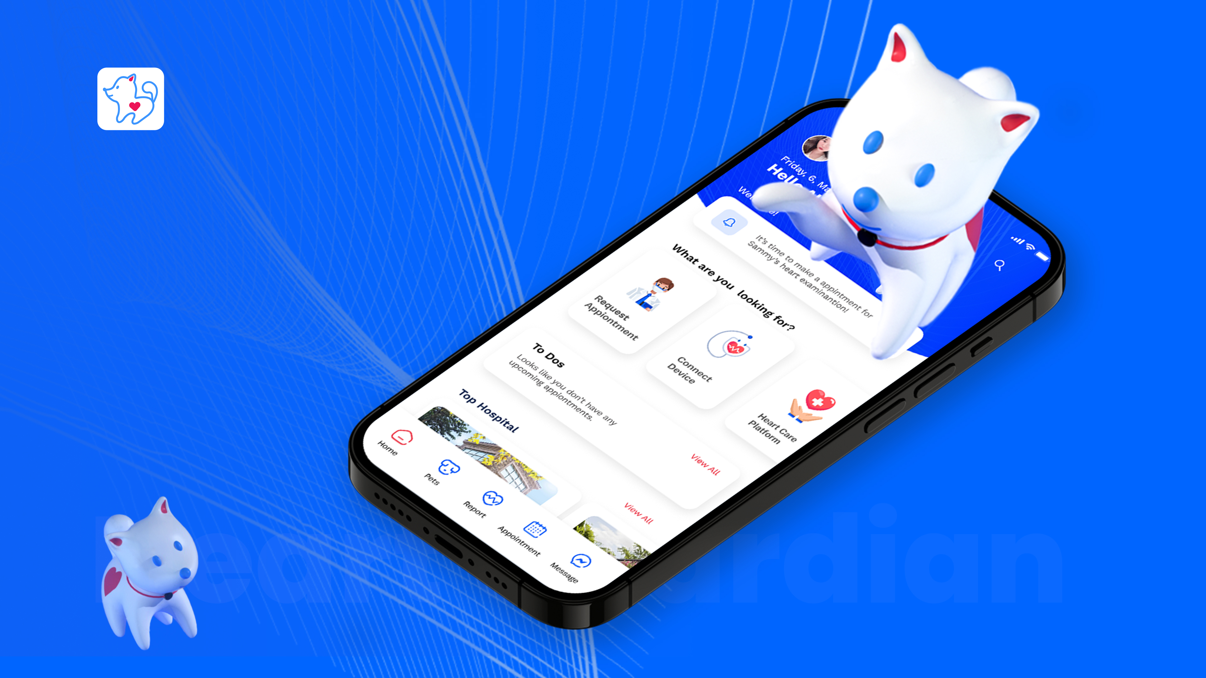 Heart Guardian integrates diverse functions, aiming to safeguard pet health through technology. Real-time heart tracking allows for constant awareness of pets' health status. Combined with health records and AI data analysis, personalized health diaries are generated to provide more precise health management. Meanwhile, Heart Guardian establishes an electronic medical record platform to facilitate the sharing of pet medical records for faster targeted treatments. The innovative doctor linking automatically selects the most suitable hospitals to ensure timely treatment and optimize the allocation of medical resources. Additionally, the intelligent phone assistant allows communication with pets and includes positioning and photography, providing comprehensive health protection.
