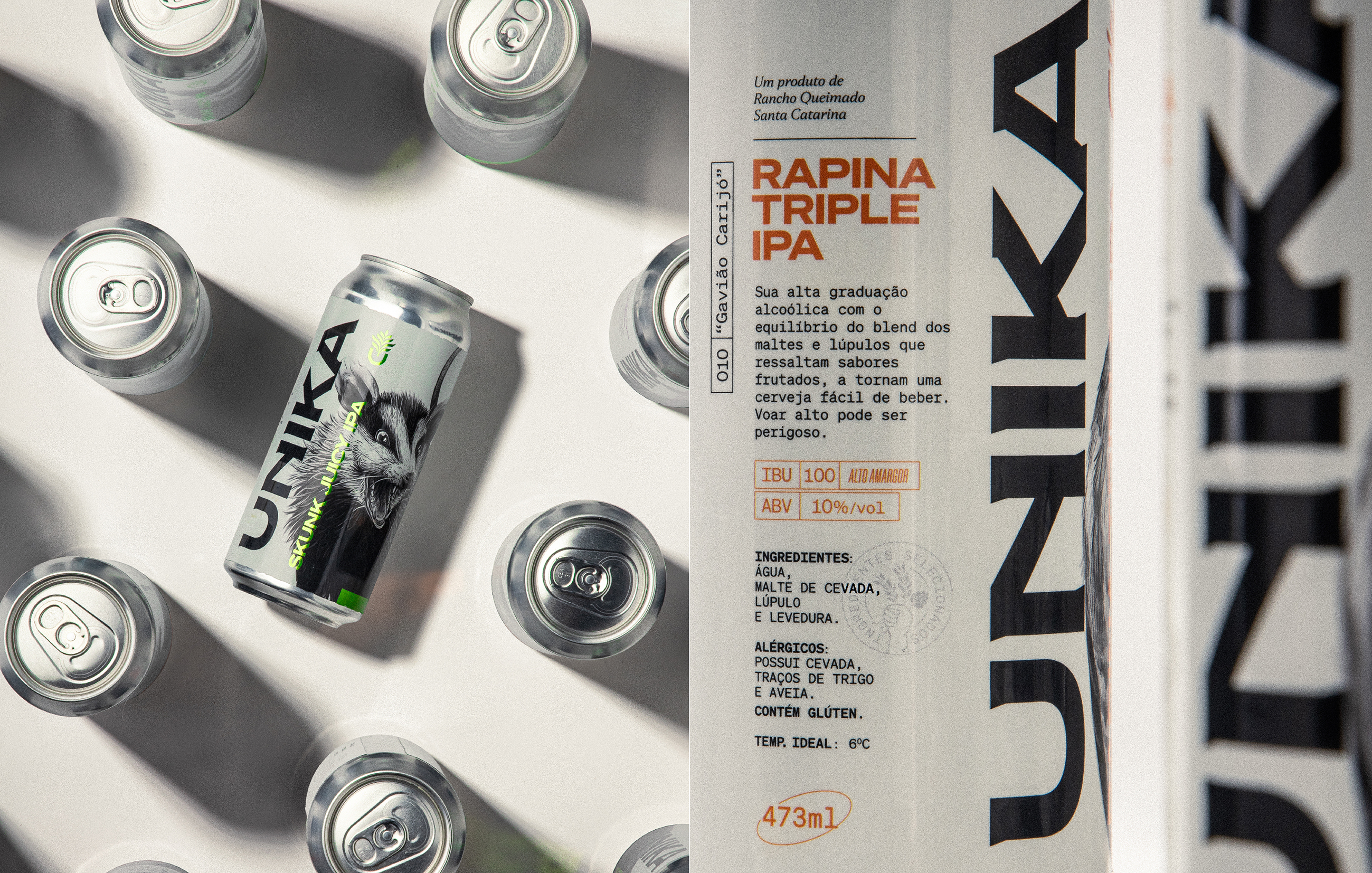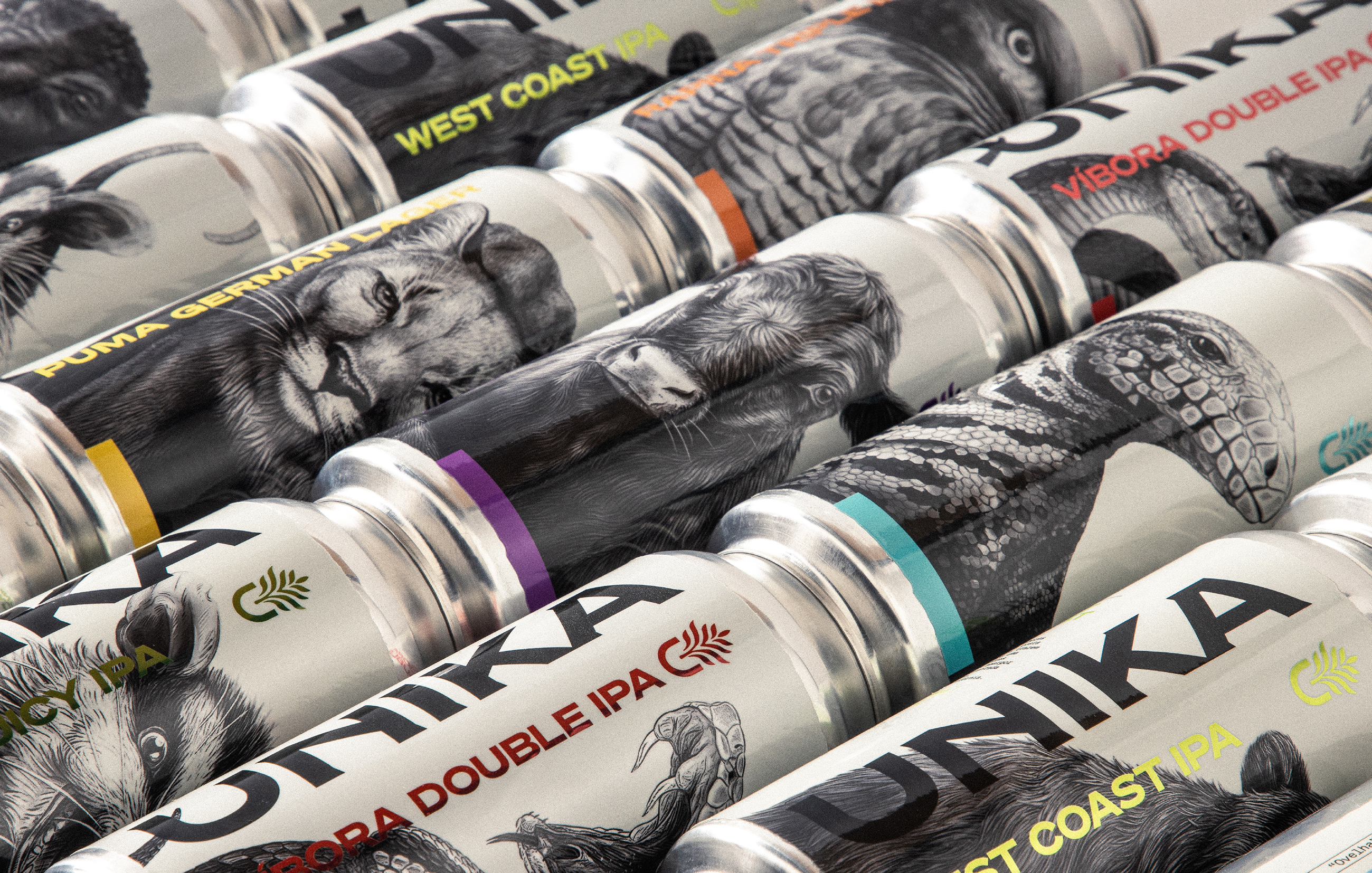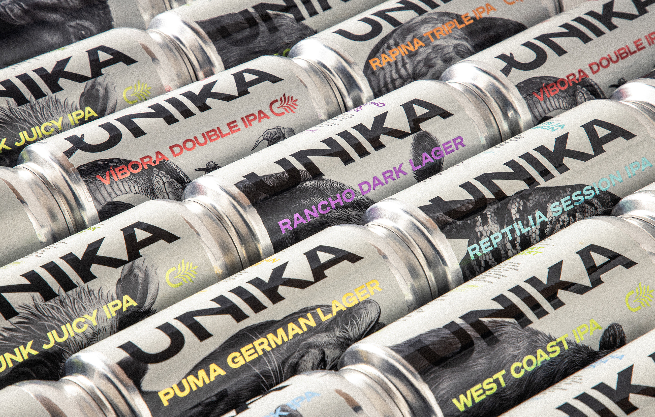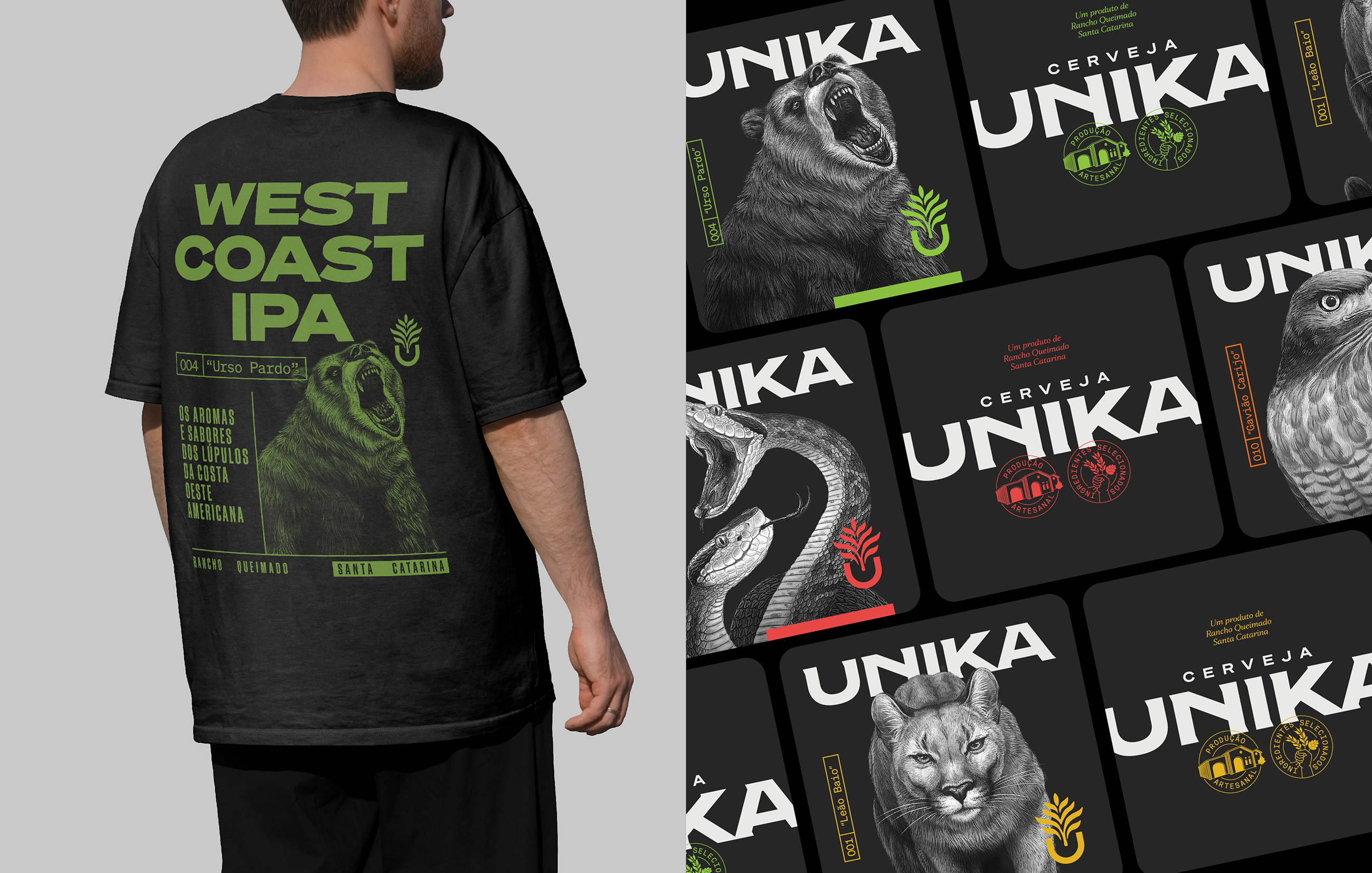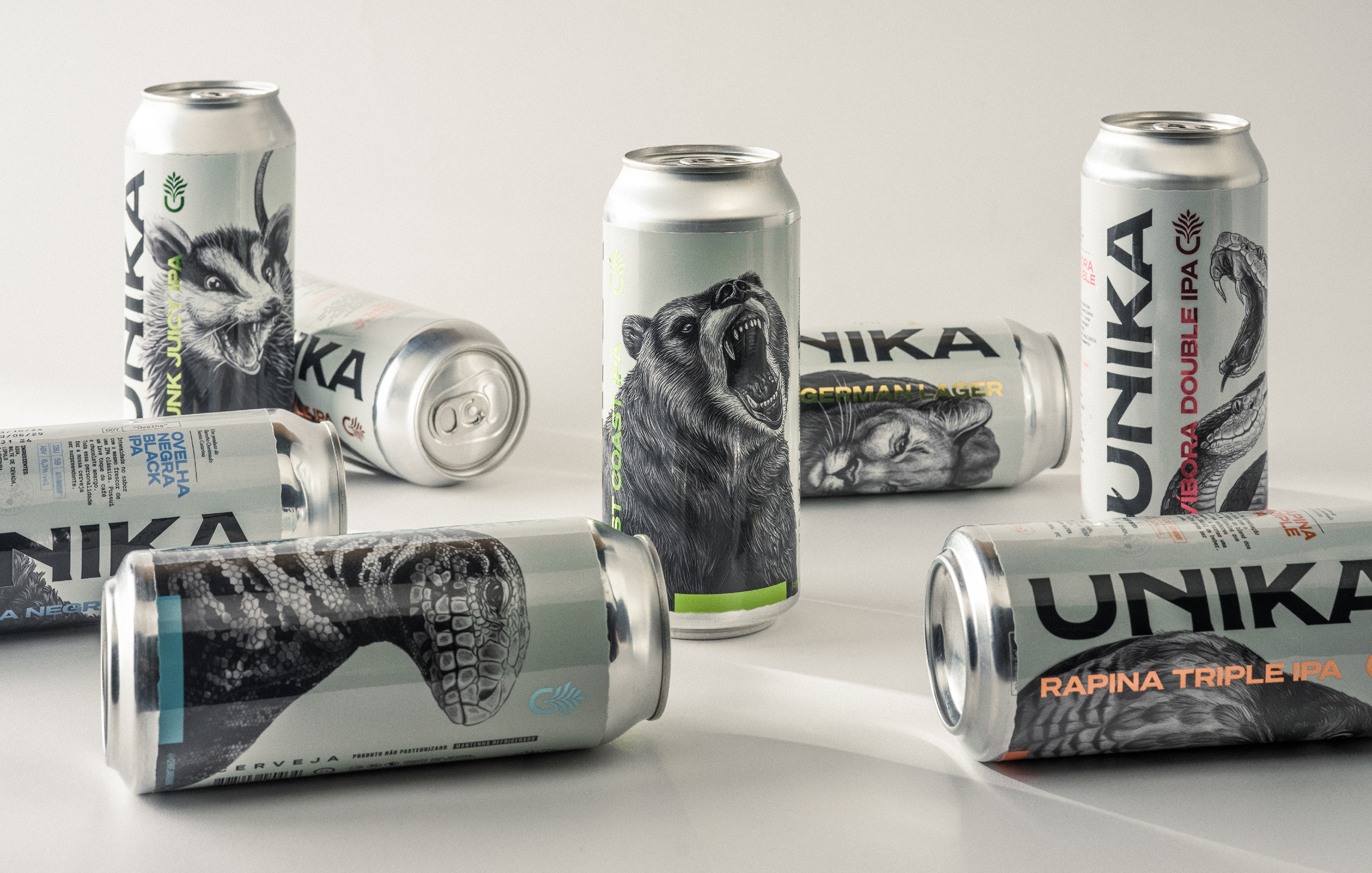 Unika, founded in 2016, produces craft beers from a factory nestled in the picturesque Brazilian mountains, surrounded by native vegetation and animals. Over the years, Unika has consistently invested in quality and maintained lean production. This philosophy, combined with creativity and the use of local ingredients, has led Unika to become one of the most awarded craft breweries in Brazil. There is a mystique behind the Unika brand. It is admired and respected by craft beer lovers for its quality, its origins and its deep reverence for the fauna and flora of Serra Catarinense. This mystique was our starting point for the redesign. We created a persona for the brand, a craftsman who lives in the mountains, who is constantly searching for the perfect form and who is inspired by the natural aspects of his surroundings. Our goal was for the brand and packaging to have a rustic and handmade look, but at the same time, sculpted with great care and attention to detail. A well-defined concept made decision-making much easier. When implementing the brand and packaging, the artisan's way of thinking from the mountains dictated the development of the visual language, the choice of paper, typography, color palette, finishes and layout. It also dictated the shape of the logo and the style of the illustrations. Our goal was to maintain the mystique of the Unika brand and enhance the characteristics that make its beers unique. Despite being a small brewery, Unika has many fans in Santa Catarina. Its loyal audience is proud of the brand and its award-winning products and feels part of its history. We knew it would be a challenge to please this audience with the change we proposed. However, the reception to the redesign was very positive. We believe that the project was successful in paying homage to the DNA of the Unika brand, professionalizing its visual identity, and bringing new energy to the brewery and the market.