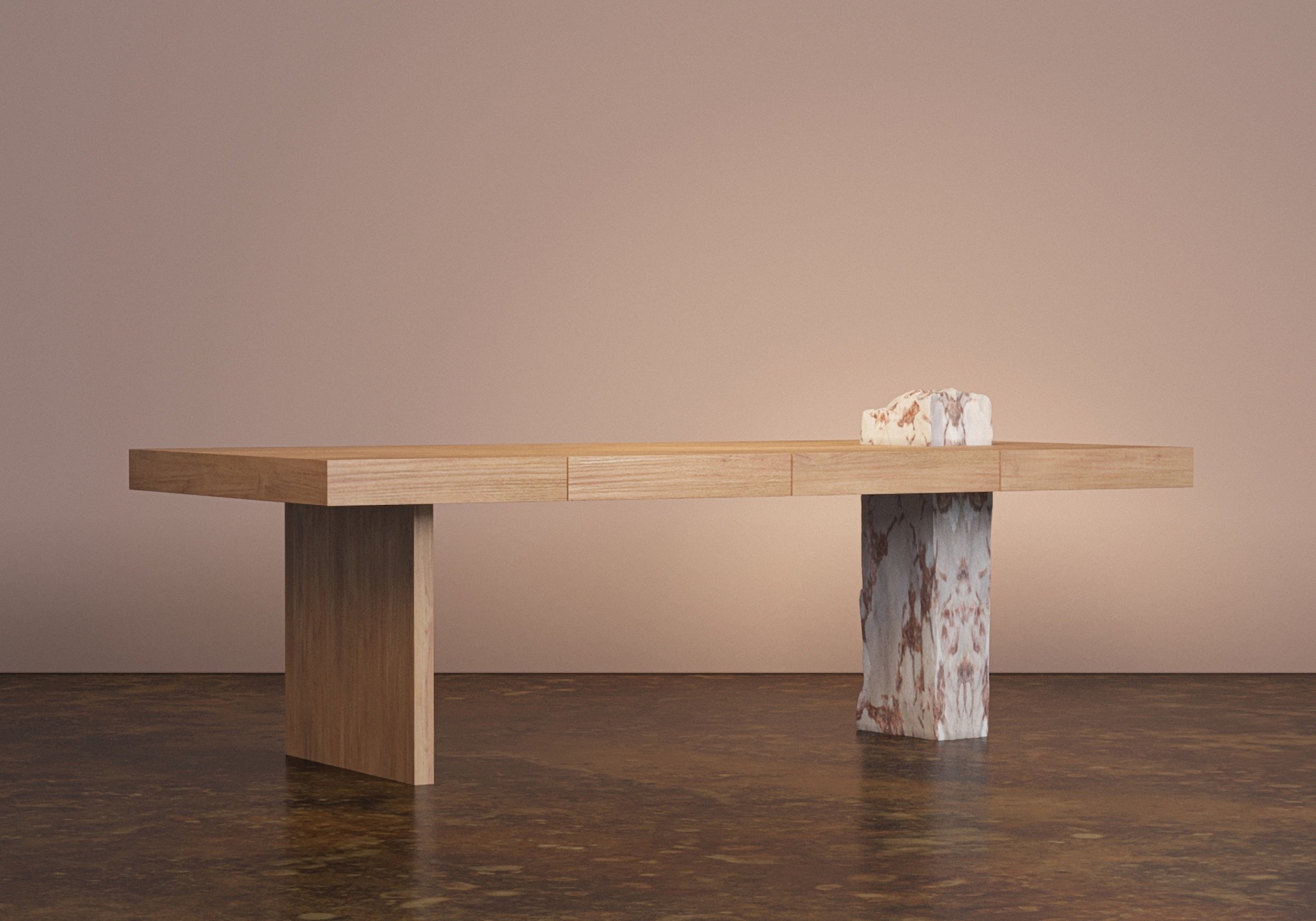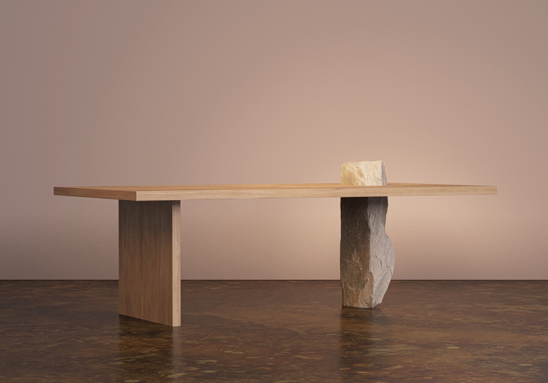 Her purpose is to bring nature into any area in order to transmit a harmonious and positive environment. These sharp constructions combine various types of marbles found in Portugal quarries with natural white oak, black walnut and weathered teak wood.