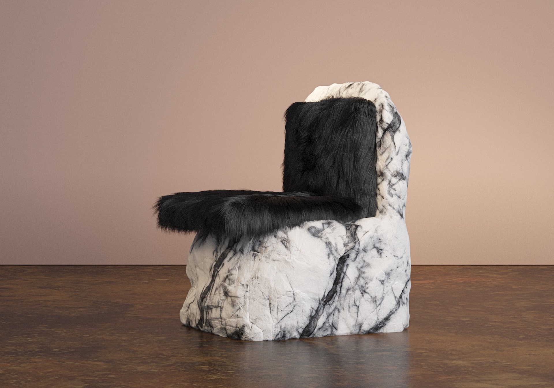 ATUS line is composed by nine custom made pieces which include: a round table, a coffee table, a desk, an end table, a rectangular dining table, a bench / coffee table, a chaise lounge, a high chair and a chair with faux fur. These are all one of a kind pieces due to the uniqueness of each marble.