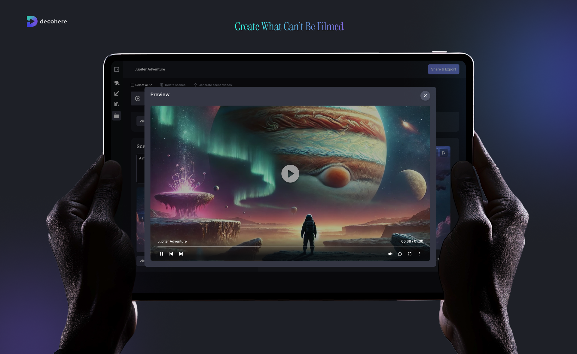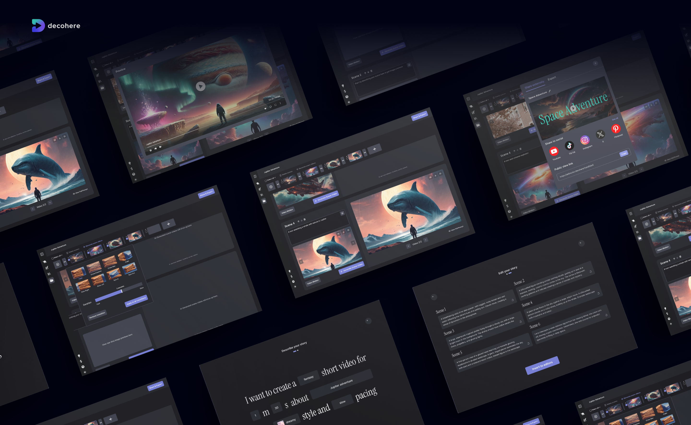The core challenge of this product was balancing a seamless generate-and-edit experience with user control, especially for novice creators. We refined interaction patterns, minimized editing friction, and improved granularity of AI-generated outputs. This led to a multi-level editing system, enabling users to seamlessly navigate through project management, scene structuring, script refinement, and detailed scene-by-scene adjustments. Users can preview images, regenerate individual scenes, move effortlessly between scenes, and merge them into a cohesive video—all within a streamlined workflow.