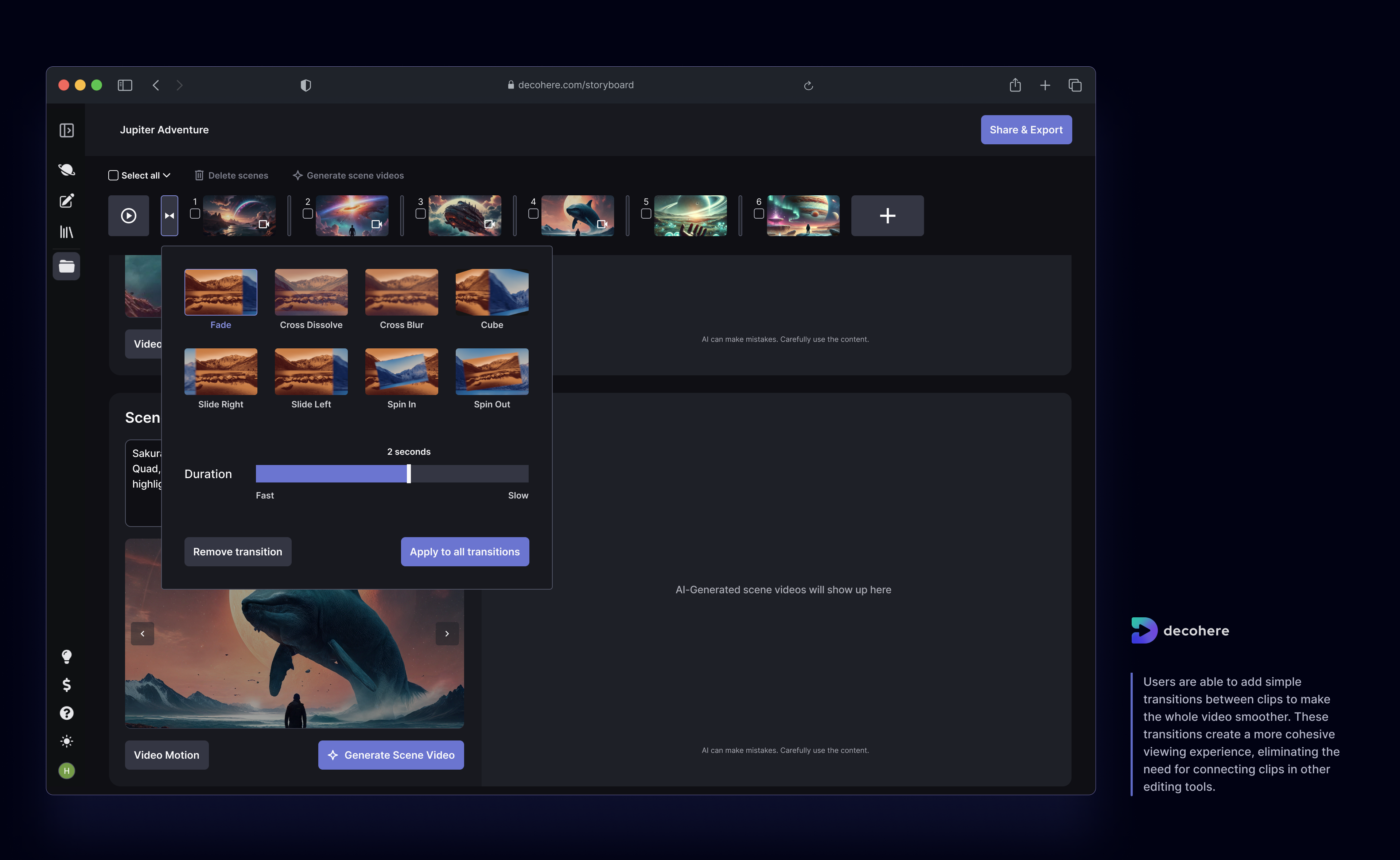 Furthermore, the addition of Transitions enables users to create seamless, professional-quality videos by ensuring smooth flow between scenes. This feature enhances coherence, making the final output feel polished and visually engaging.