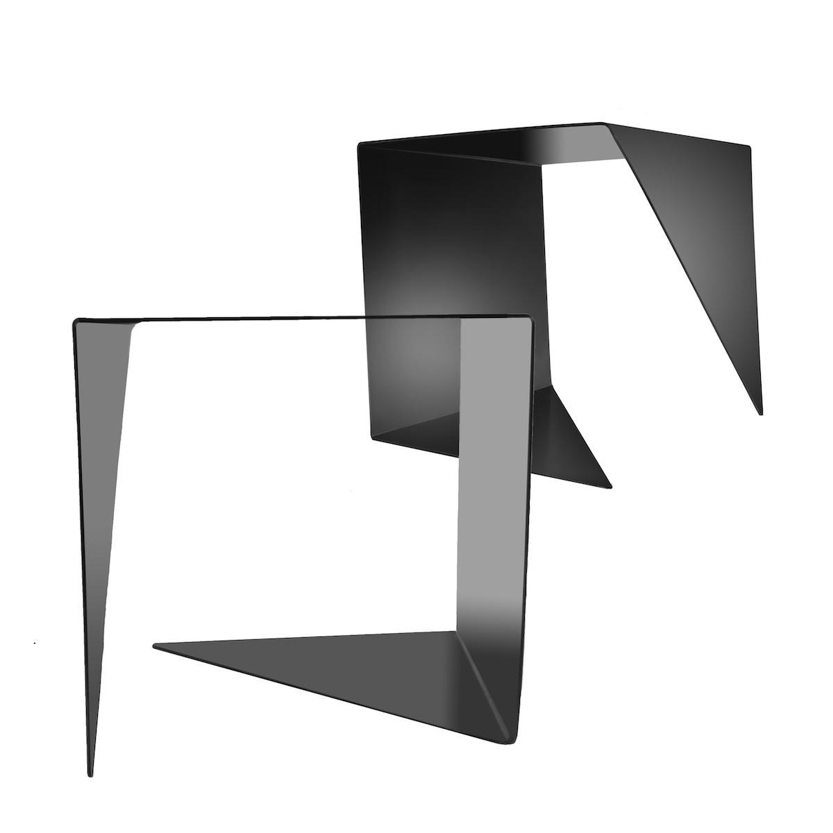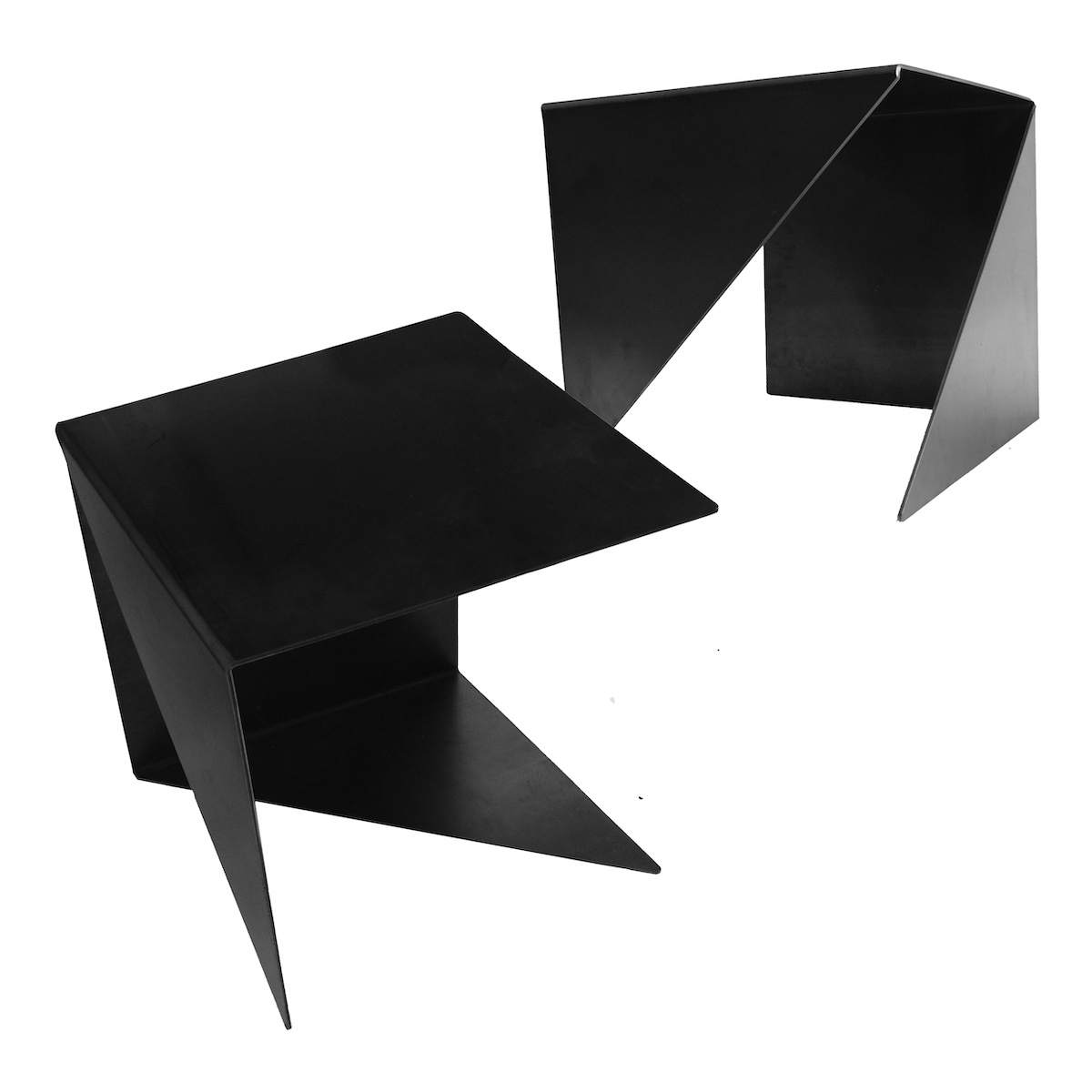 This TS Series of side tables is a collection of modern origami-inspired folded steel tables. The tables are based on using a series squares and triangles in various configurations. The use of these two basic geometric forms creates a cohesive yet distinctive group of tables. They can be arranged singularly or in groups to form a larger coffee table.