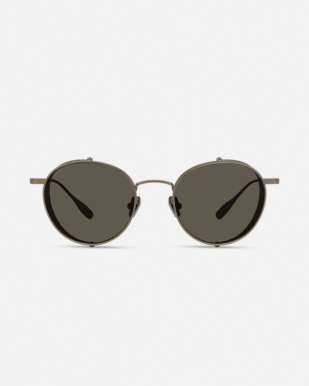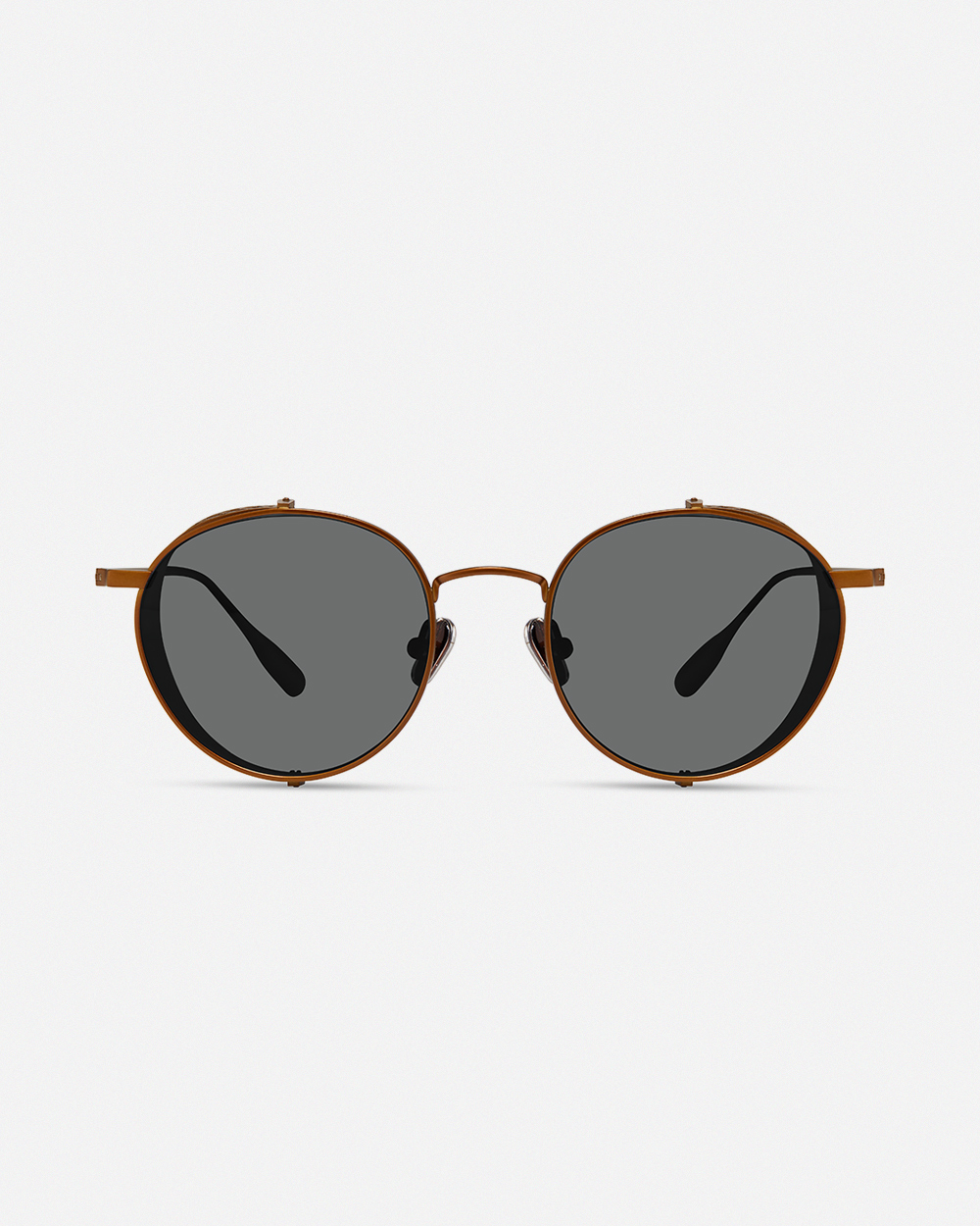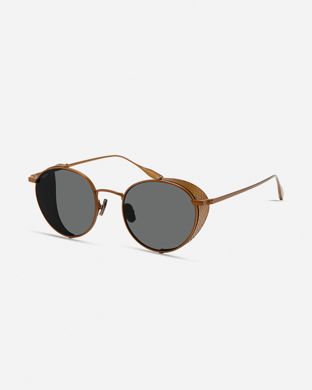 These premium titanium sunglasses boast a minimalist yet rugged design, combining durability with lightweight comfort. The rounded lenses offer a sophisticated look while providing excellent UV protection. The finely textured side shields add a touch of vintage mountaineering inspiration, reducing glare and enhancing peripheral protection. The bridge structure ensures stability, while the slim, curved temples provide a secure and comfortable fit. Adjustable nose pads further enhance wearability, making these sunglasses a perfect fusion of style, function, and high-end craftsmanship.
