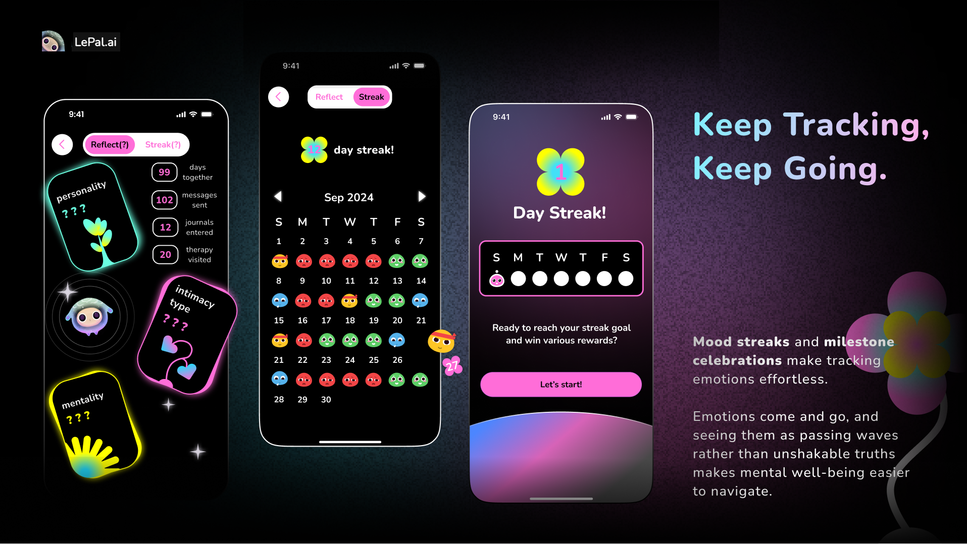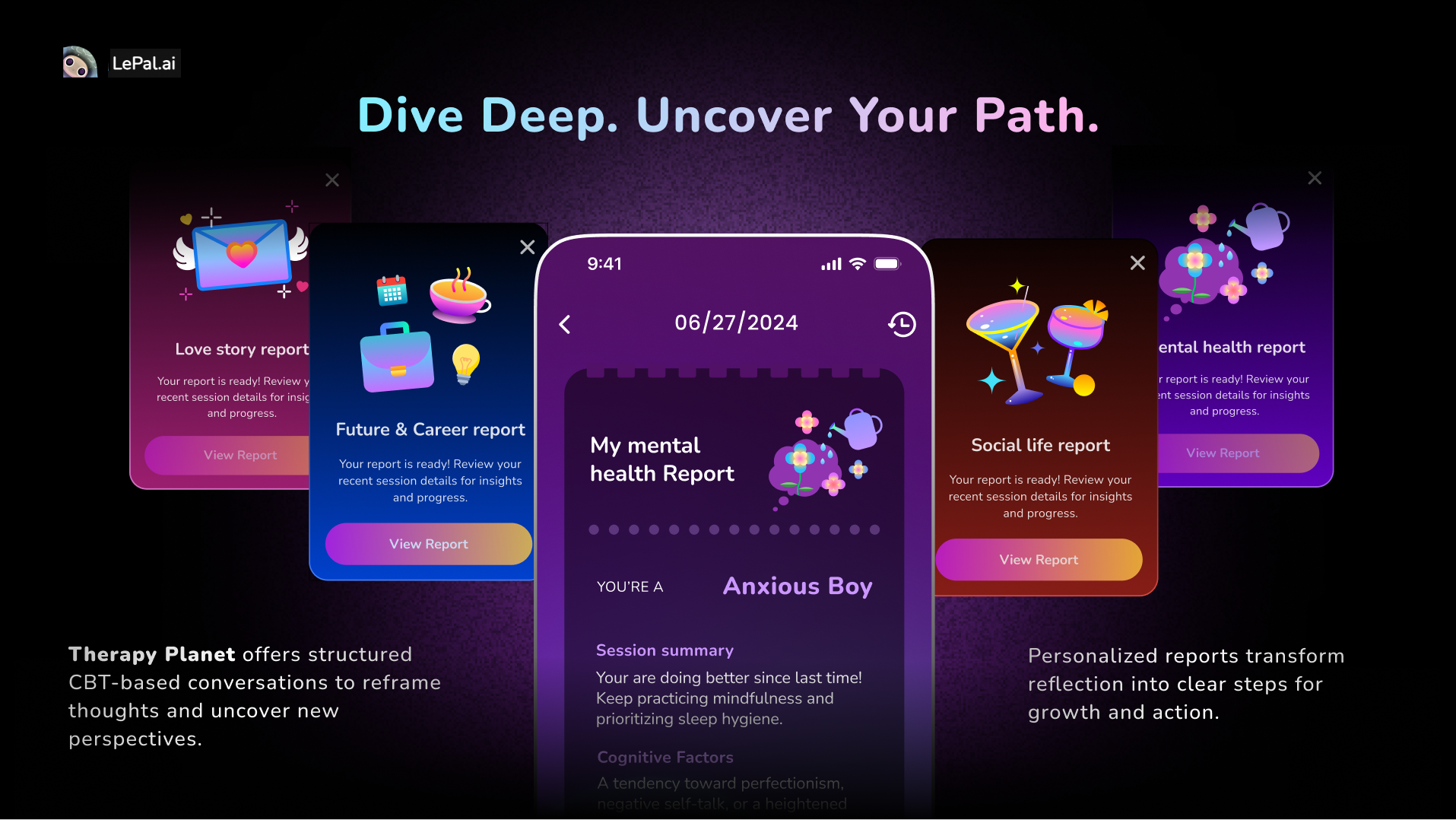 Lepal.ai transforms mental health care from a passive necessity into an engaging, interactive lifestyle, empowering individuals to embrace emotions, navigate challenges with resilience, and build self-care habits with confidence.