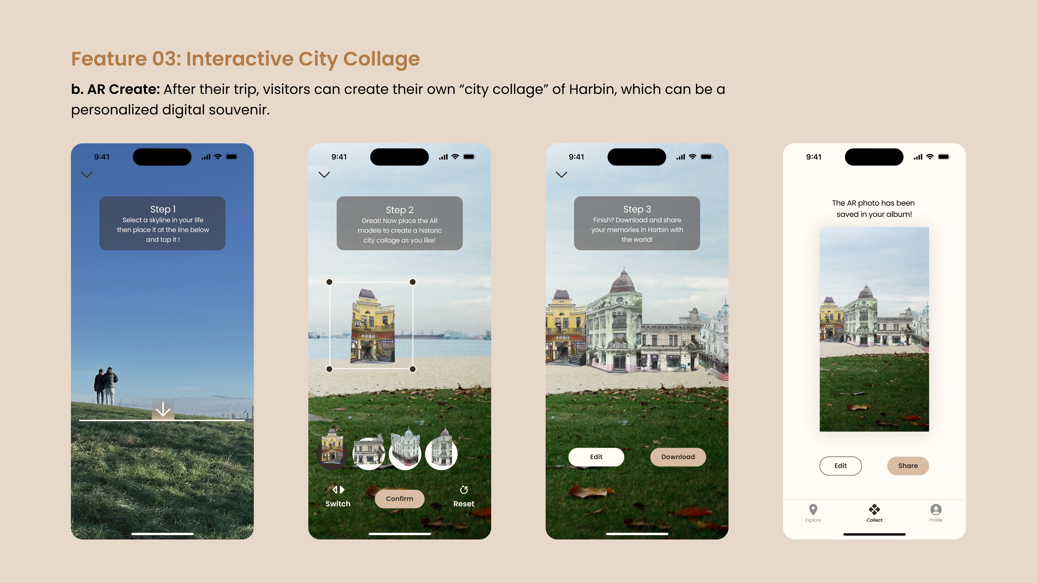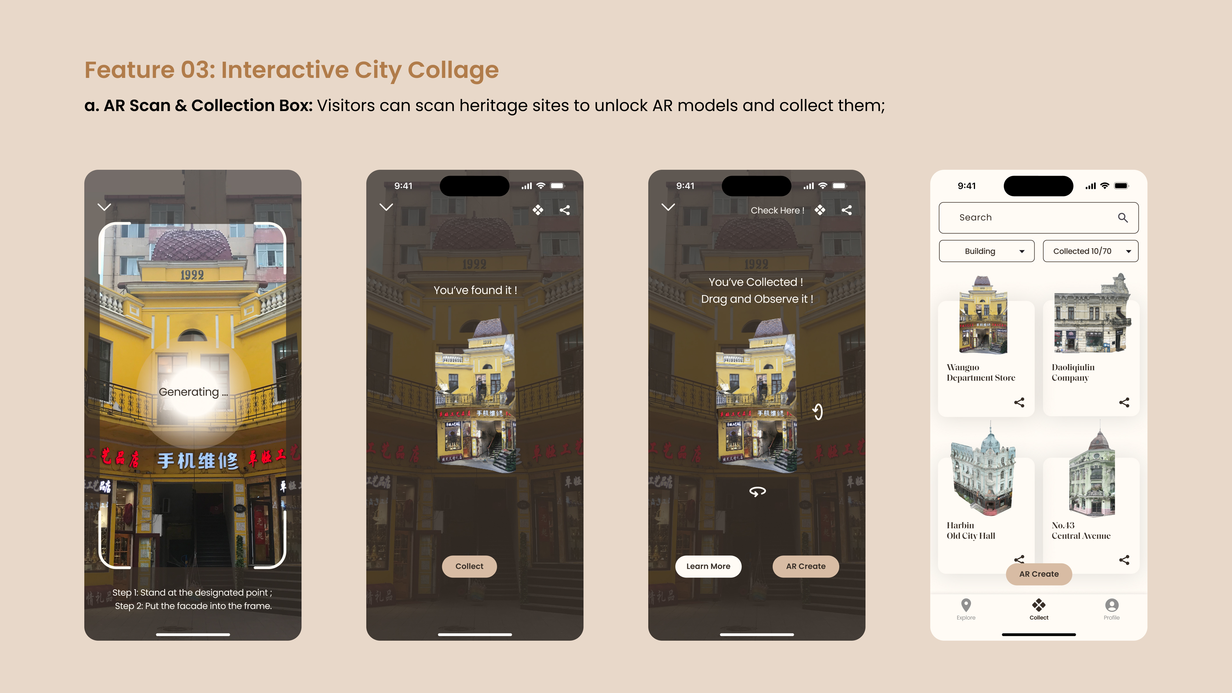 Harbin ARcollage is a mobile app that bridges this gap through an interactive digital experience with three key features: