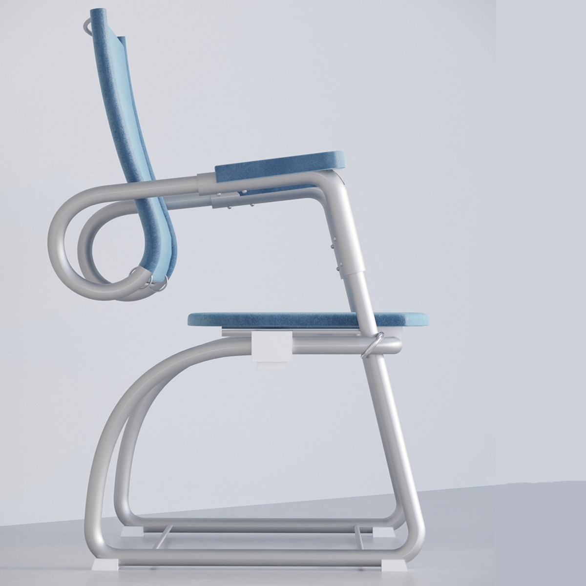The spiral transition of the armrest to backrest and the unconventional (a subject of patent) feedering and dumping solutions (Comma 2- a rubber behind the legs, Comma 1 - a sliding elastic band under the seat and rubber buffers in front) together with the comfort level are supposed to make both chairs unique and recognisable.
